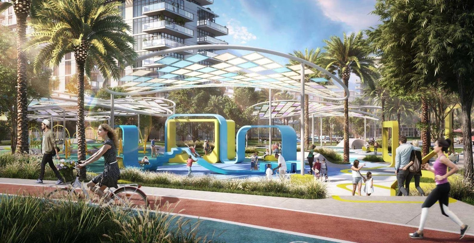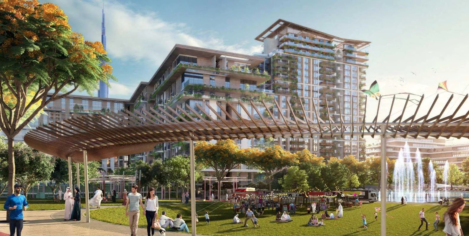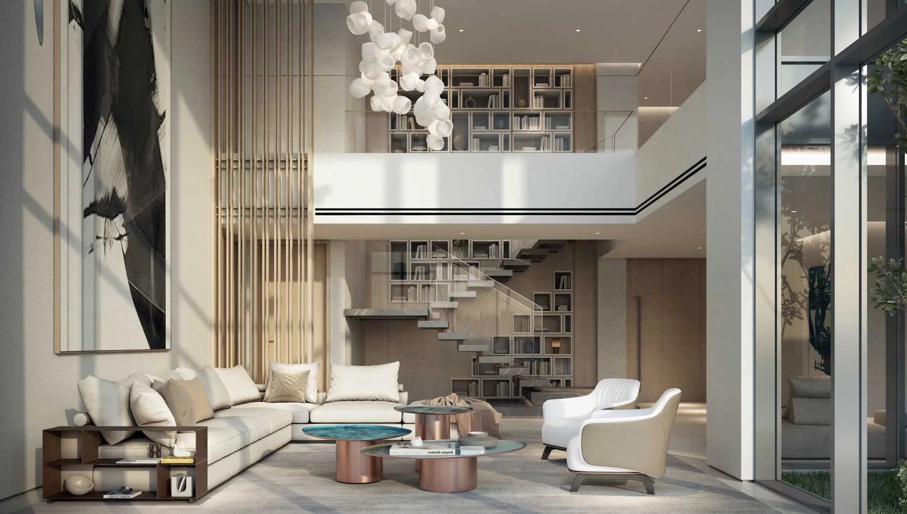 Finishing and materials: Contemporary living enhanced by superior finishes with corner panoramic views. Bedrooms with full height glass panels overlooking the park. Spacious bathrooms with variety of fixtures and high-end materials selection.