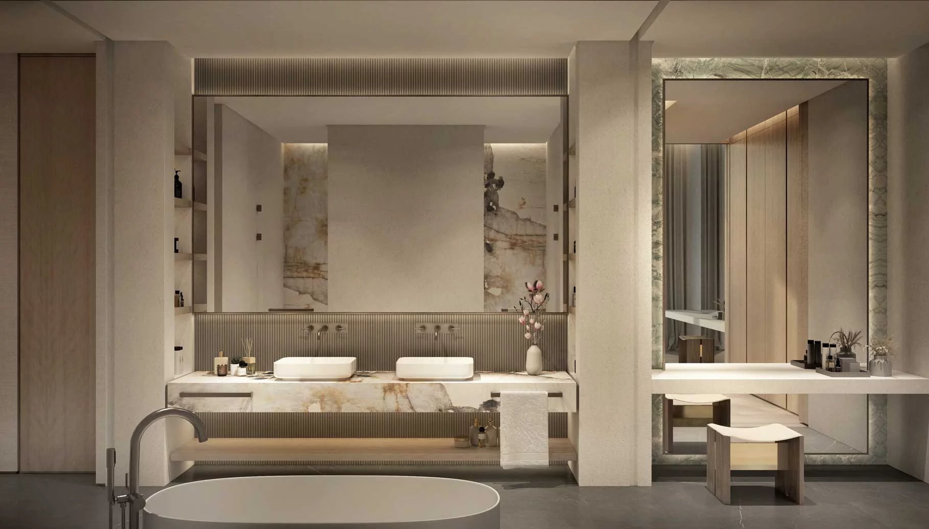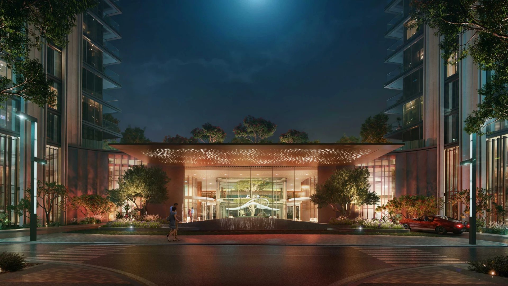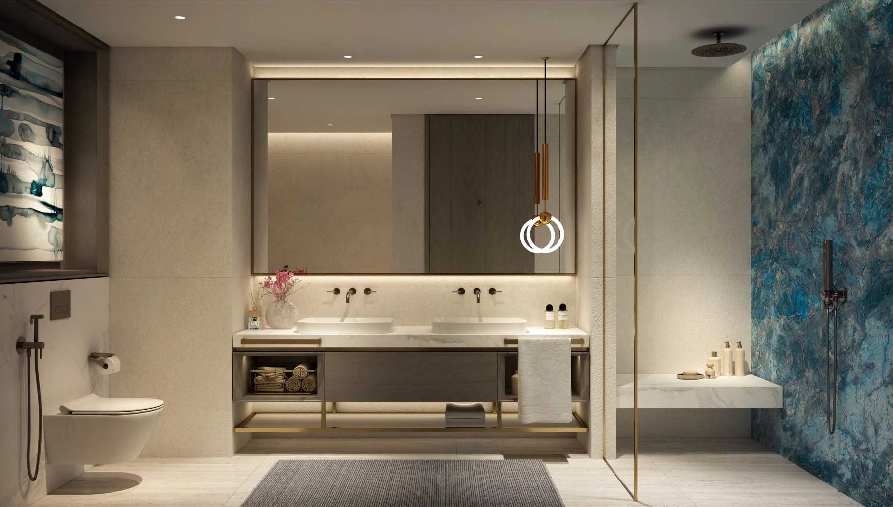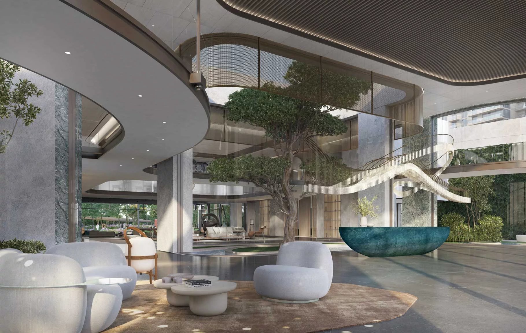 Finishing and materials: Contemporary living enhanced by superior finishes with corner panoramic views. Bedrooms with full height glass panels overlooking the park. Spacious bathrooms with variety of fixtures and high-end materials selection.