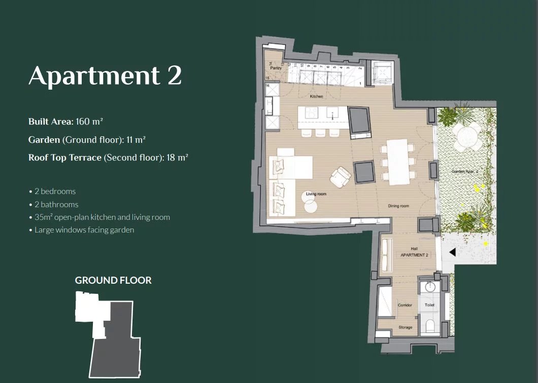 Learn moreThis fabulous new project in construction at present will be transformed into a stunning 5-unit residence built around a private garden. This elegant complex is an integral part of the Old Town and offers a true lush oasis of peace, summer shade, and tranquility (in winter the large old deciduous trees lose their leaves and let the sunshine through). The units vary from garden apartments, duplexes, and triplex, from 81m2 to 190m2, and 1, 2, and 3 bedrooms. Both the ground floor and top floor units come complete with exterior areas, ideal for recreation or sheer relaxation. The project focuses on restoring the building to its original glory with all the benefits of modern-day living such as beamed ceilings, floor-to-ceiling windows, underfloor heating, fully fitted kitchens with Siemens appliances central a/c, and home automation system, and using noble materials such as natural Binissalem stone and oak flooring.
