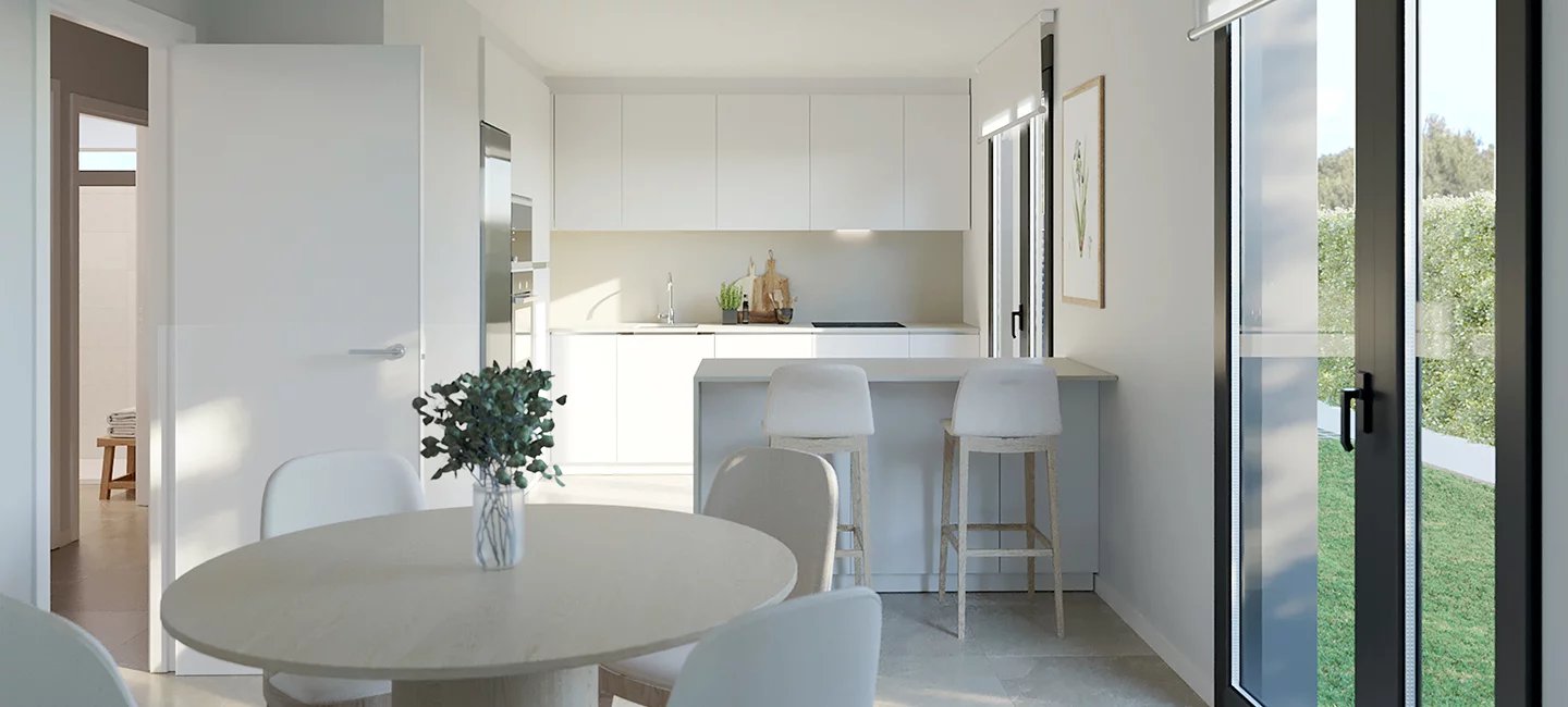 The utmost attention is paid to every detail in your new house to combine maximum functionality with the most exquisite design. Interior and exterior establish a “dialogue” in which natural light and integration of the green sites into the main rooms are major features. The privacy afforded by the houses in Eneida is maximised through the private pool installed in your own garden. All the dwellings come with a spacious open-plan lounge-dining room with a footage of up to 30 m². A fully furnished and fitted kitchen, three full bathrooms (one en suite). 3 or 4 bedrooms, according to your requirements. Master bedroom with walk-in closet. Spacious private garden of over 200 m², private swimming pool, two parking spots.