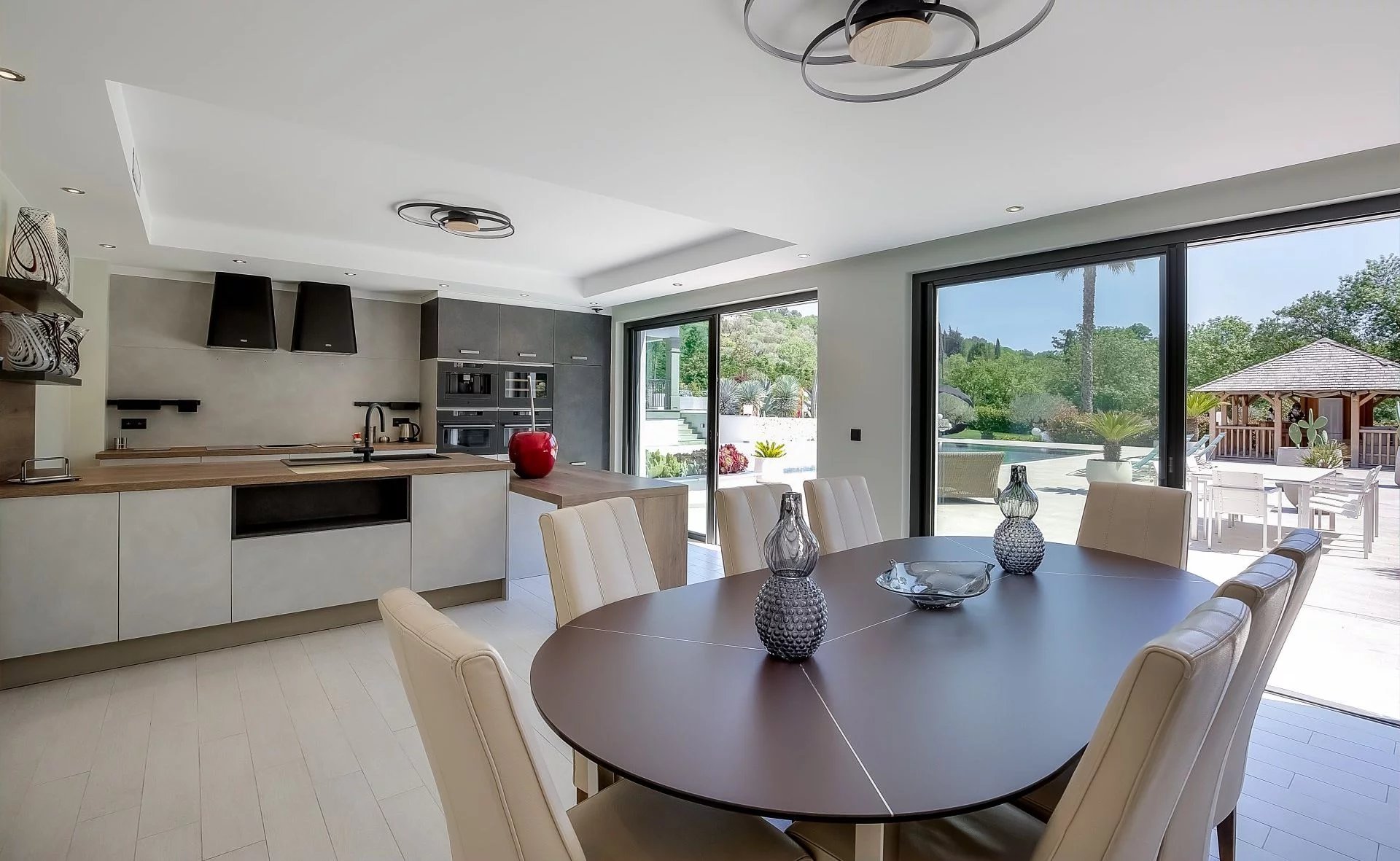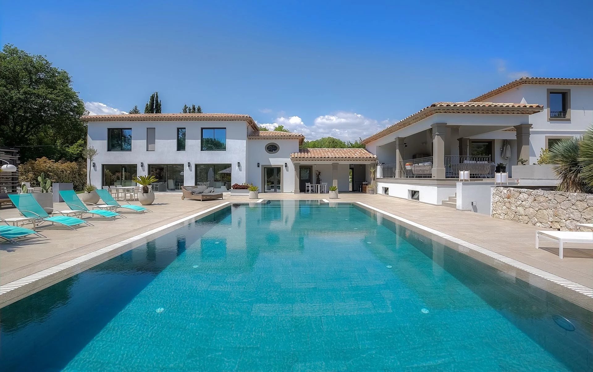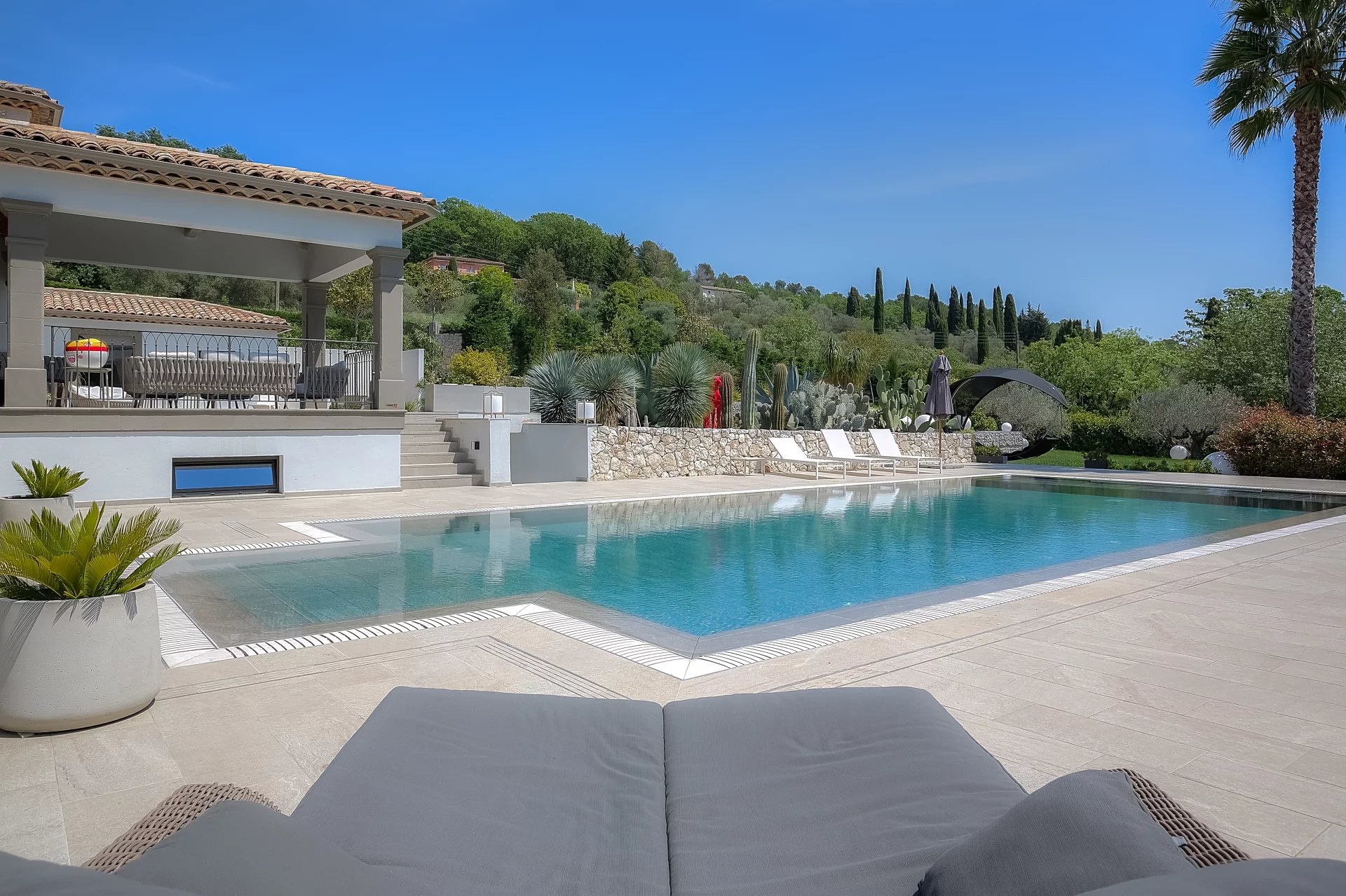 Both the interior and exterior of the villa have been completely renovated, and an extension was built in 2020, respecting the style and high-end finishes. The style is resolutely modern, with particular attention to detail, interior decoration, and comfort.