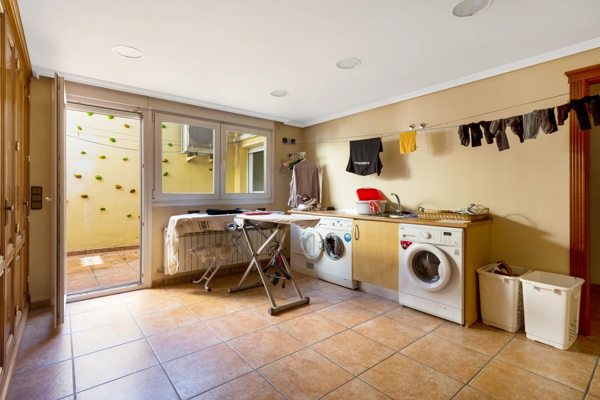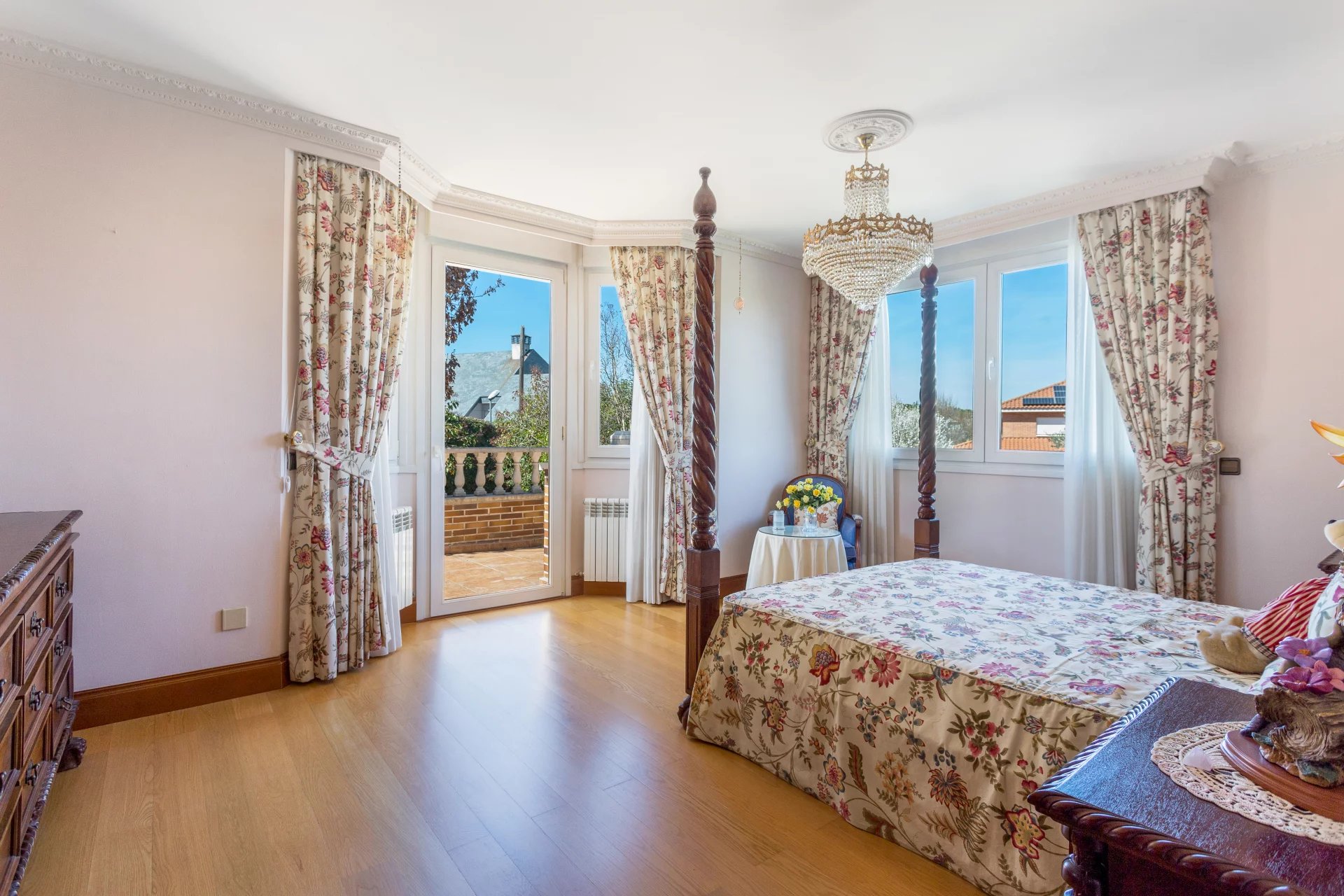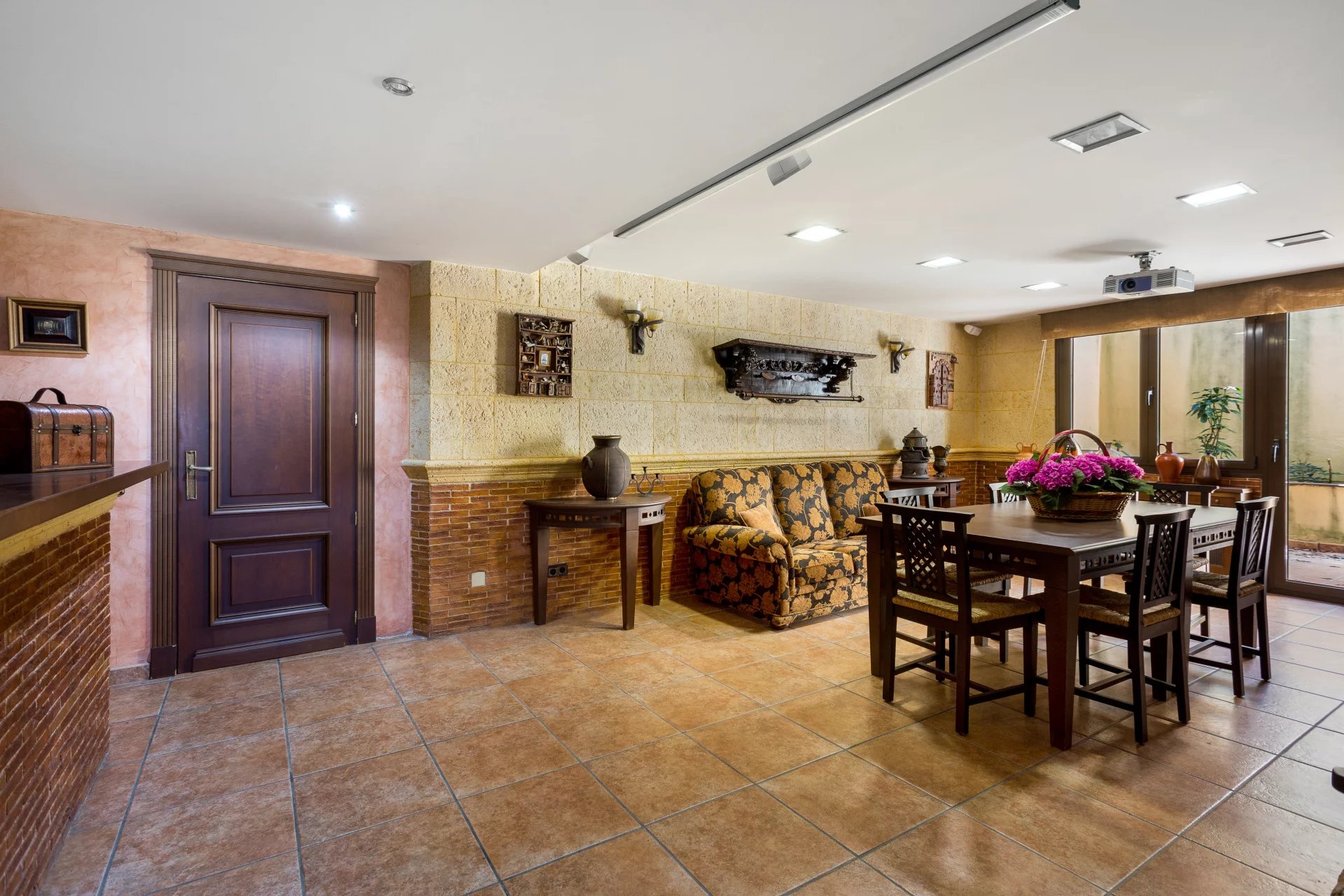 The access floor has a separate flat with living room, kitchen, bedroom and bathroom. Furthermore, on this floor there is a lounge with bar, wine cellar, office, guest bedroom with bathroom en suite, laundry room with patio, gym, storage room, and utility room (air conditioning and purifier). Covered parking for four cars in parallel and capacity for another four outside. This makes a total of 8 bedrooms and 7 bathrooms: 4 en suite and 1 toilet.