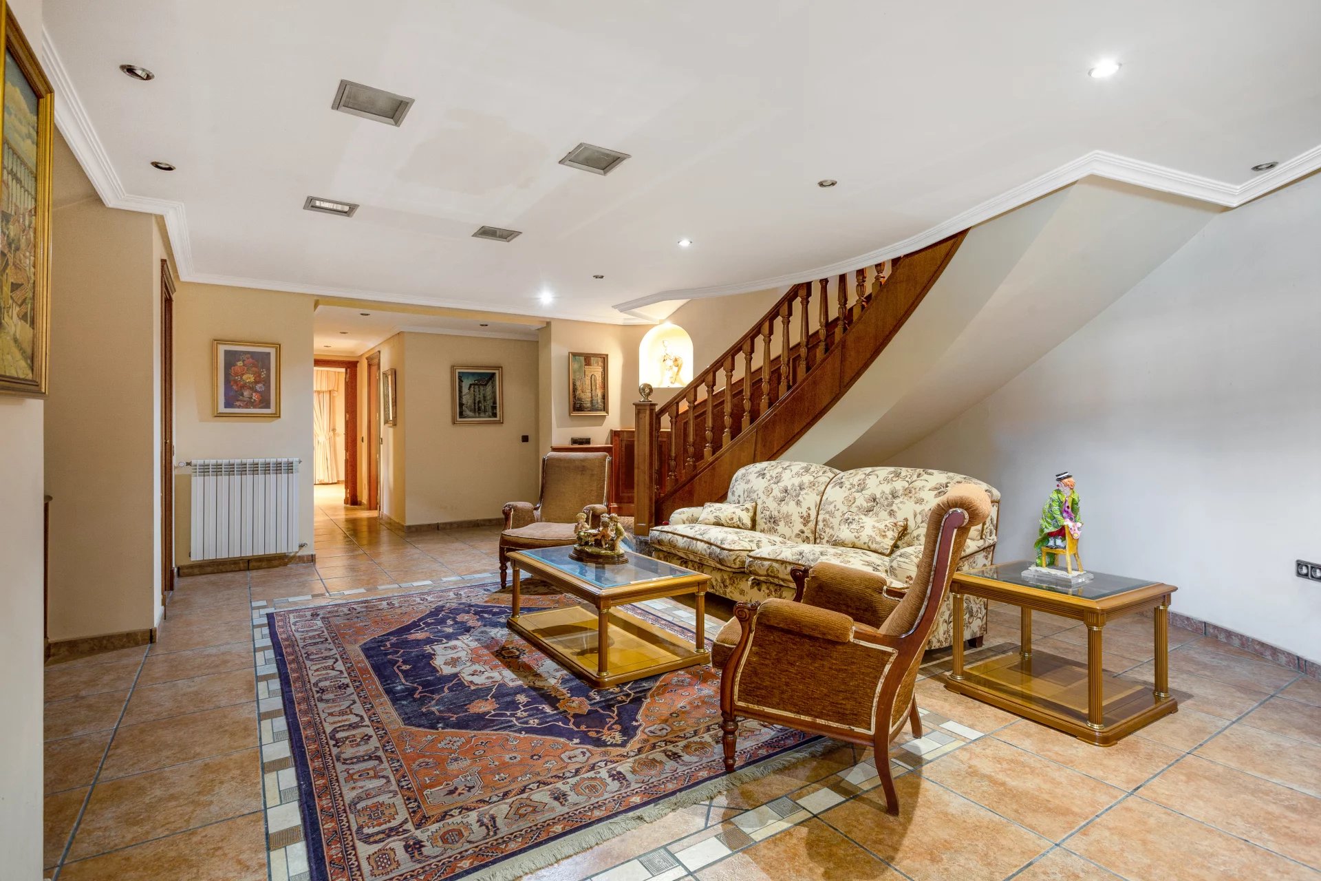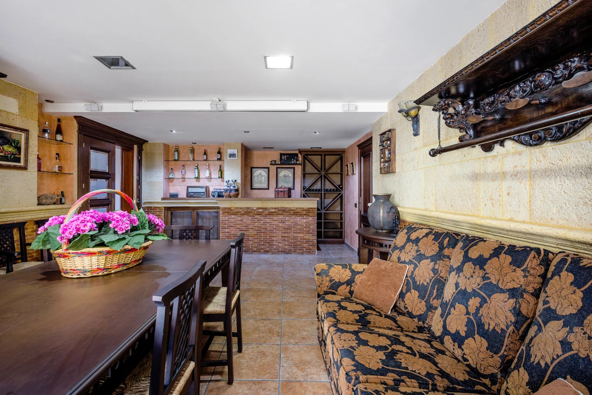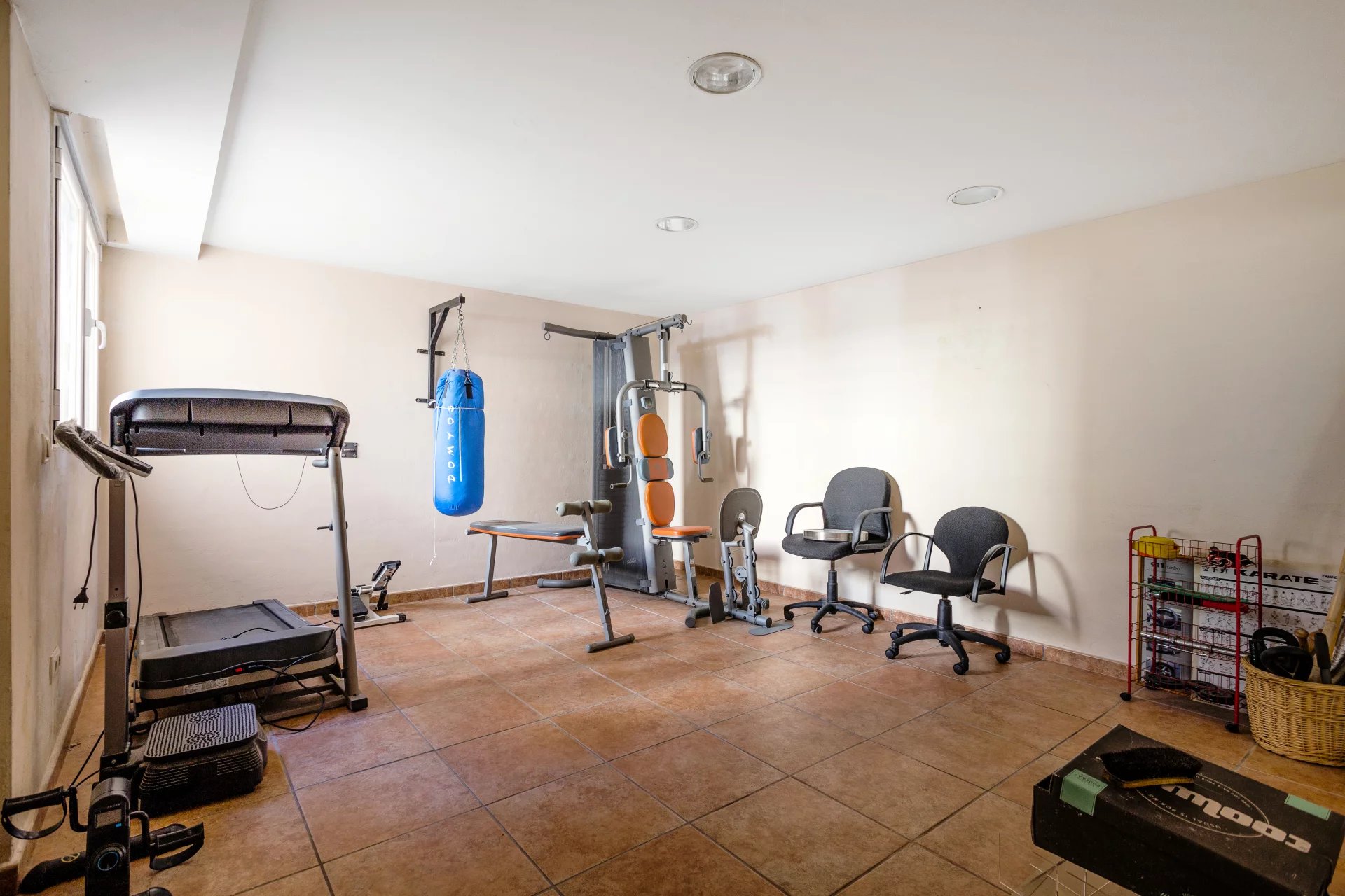 The access floor has a separate flat with living room, kitchen, bedroom and bathroom. Furthermore, on this floor there is a lounge with bar, wine cellar, office, guest bedroom with bathroom en suite, laundry room with patio, gym, storage room, and utility room (air conditioning and purifier). Covered parking for four cars in parallel and capacity for another four outside. This makes a total of 8 bedrooms and 7 bathrooms: 4 en suite and 1 toilet.