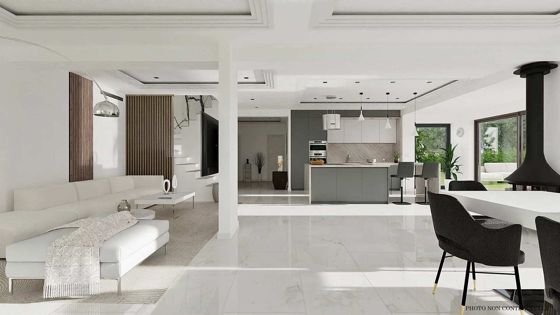 Large reception area of 70 sq.m living room dining room, open kitchen; bedroom with shower room, toilet, dressing room