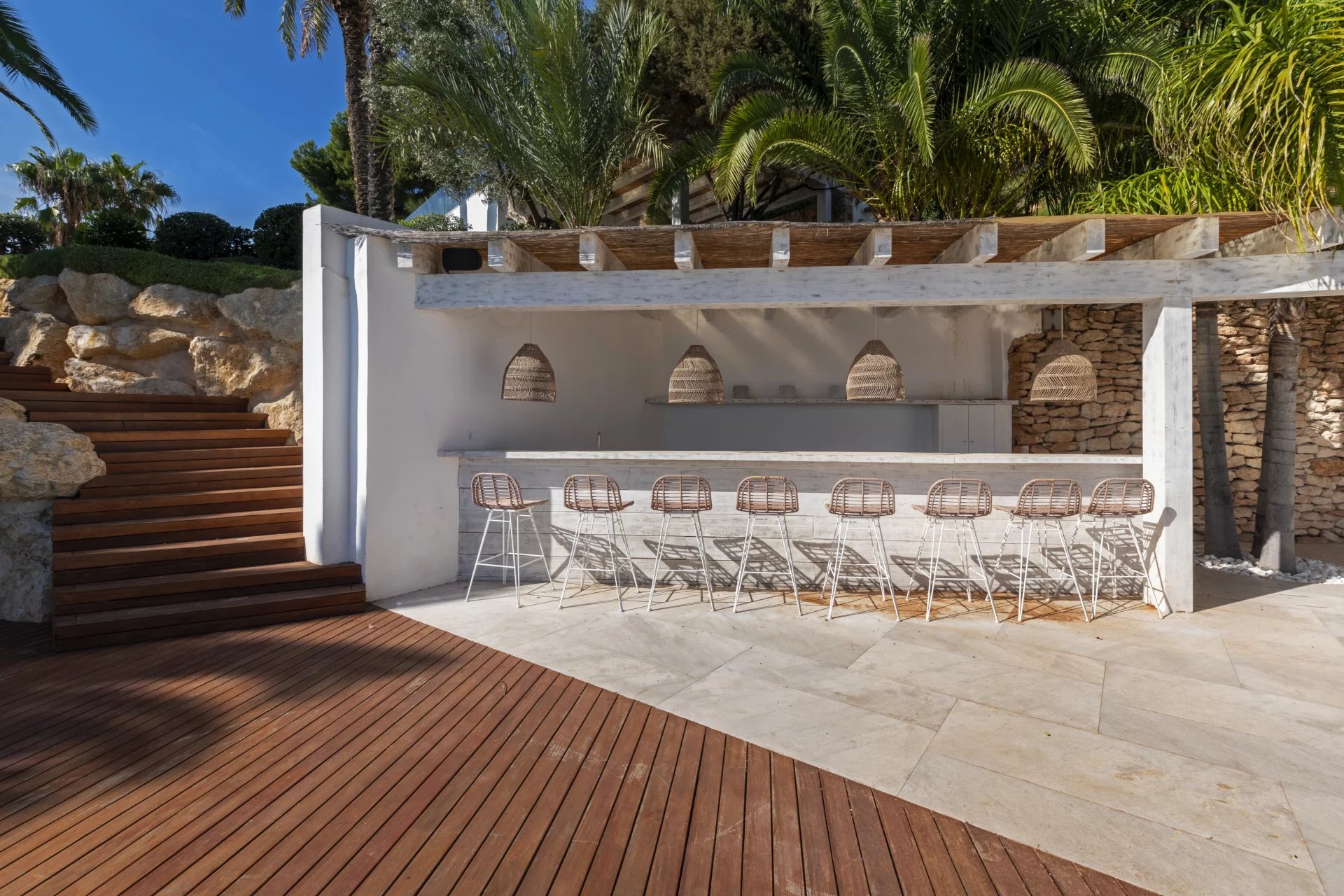 This luxury seafront villa for sale in Es Cubells also benefits from a valid tourist rental licence, making it not only a perfect private retreat but also an attractive investment opportunity in one of Ibiza’s most prestigious and tranquil coastal areas.