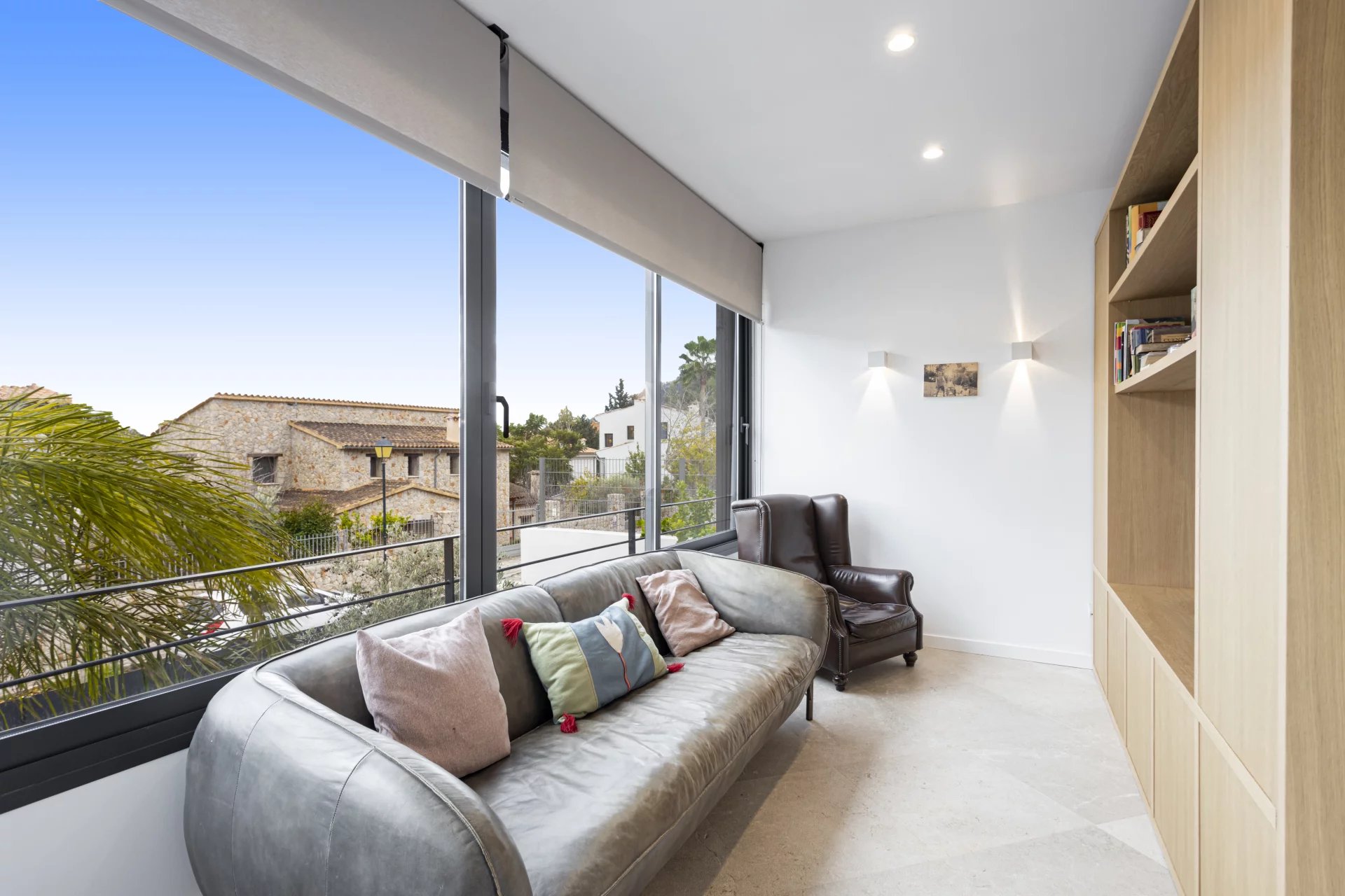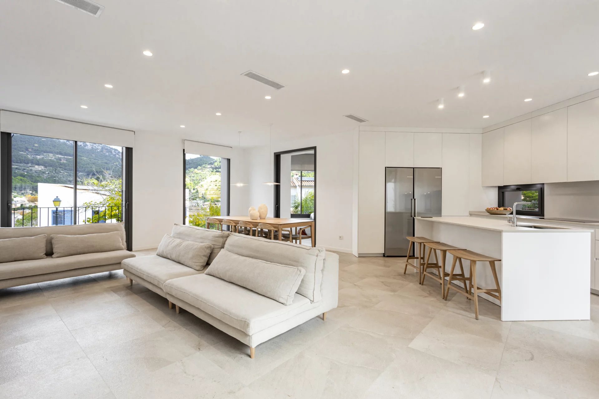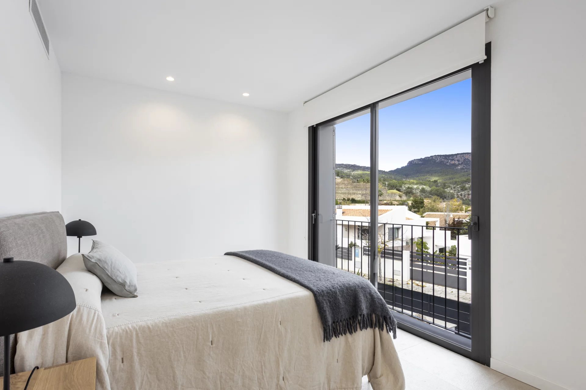 Recently built house for sale in Esporles, located in the upper part of the village with spectacular views of the mountains and the traditional town center of Esporles, one of the most sought-after areas in Mallorca for those looking for peace, nature, and quality of life. This exclusive property stands out for its modern design, top-quality materials, and functional layout on a single level, offering a comfortable and practical living experience.