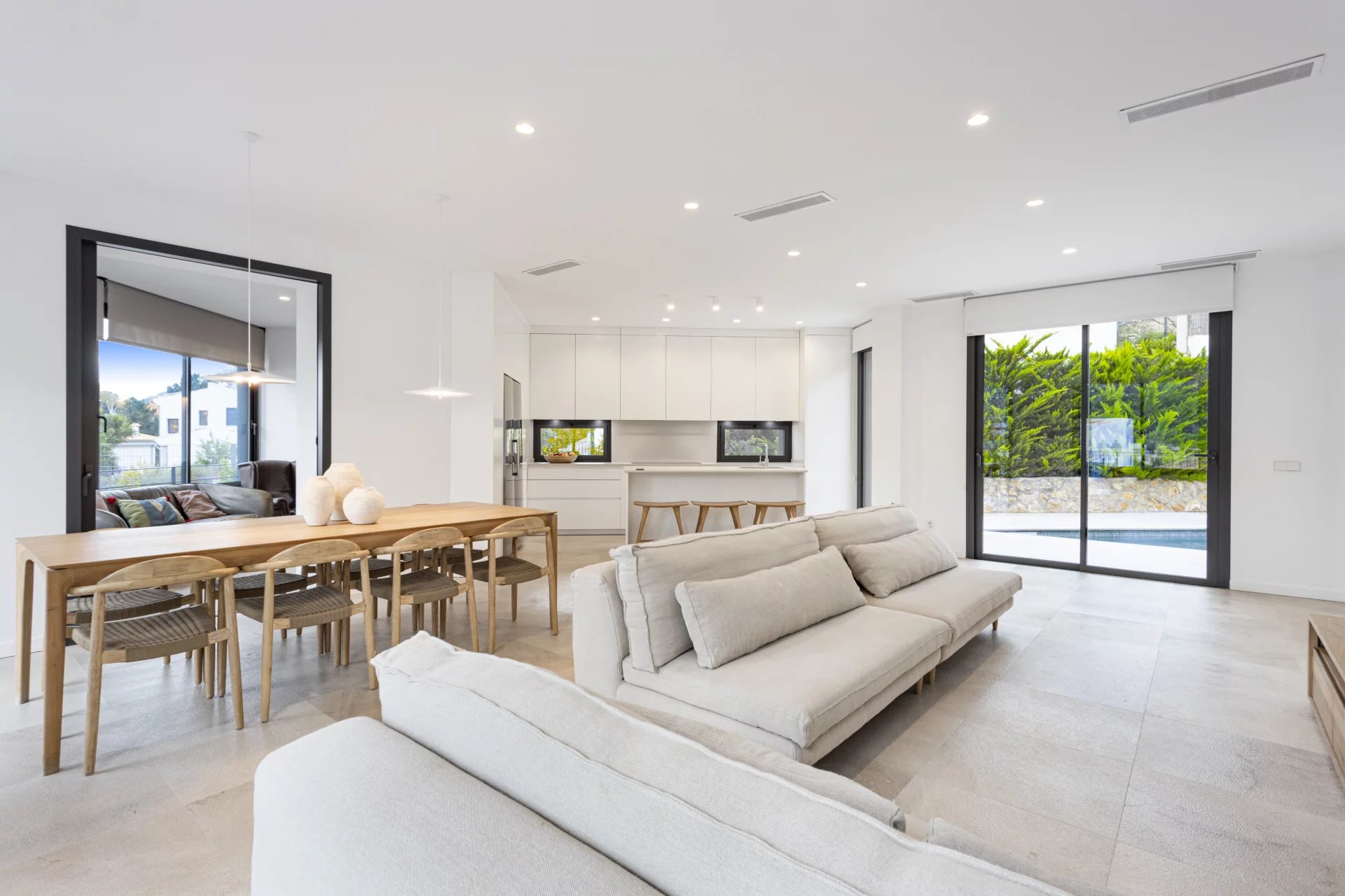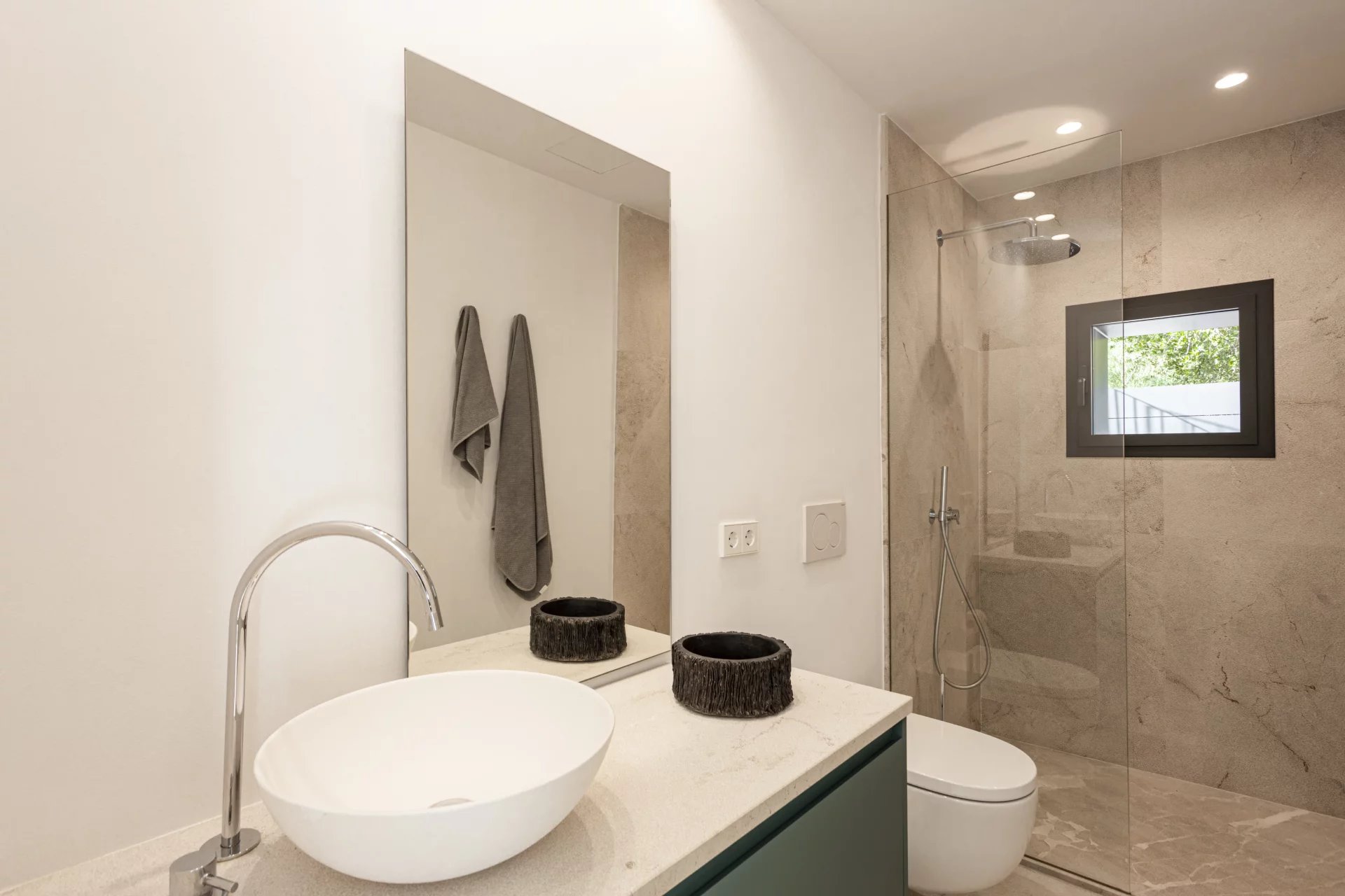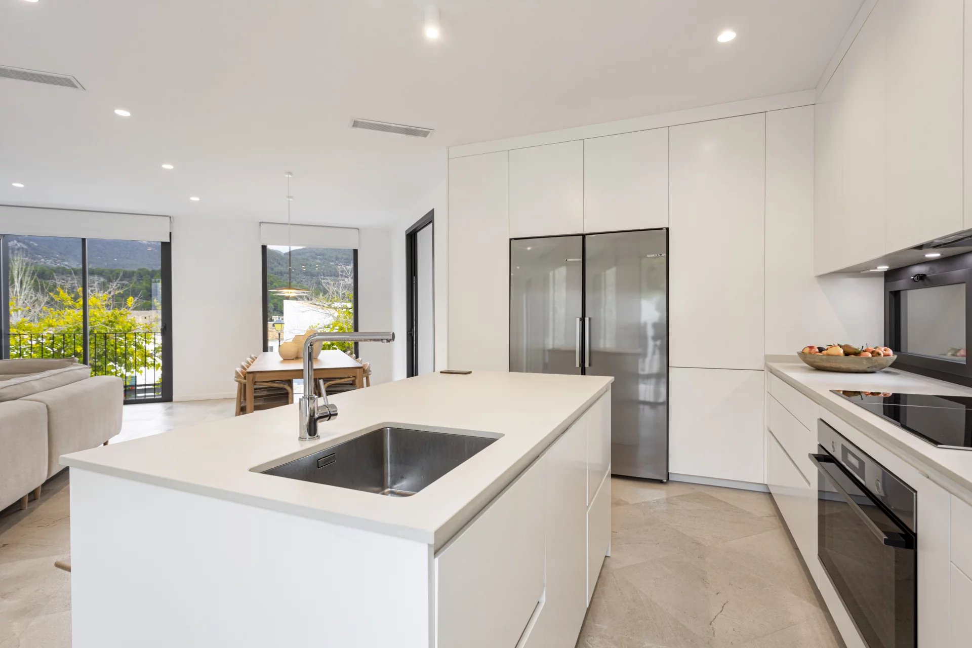 Recently built house for sale in Esporles, located in the upper part of the village with spectacular views of the mountains and the traditional town center of Esporles, one of the most sought-after areas in Mallorca for those looking for peace, nature, and quality of life. This exclusive property stands out for its modern design, top-quality materials, and functional layout on a single level, offering a comfortable and practical living experience.
