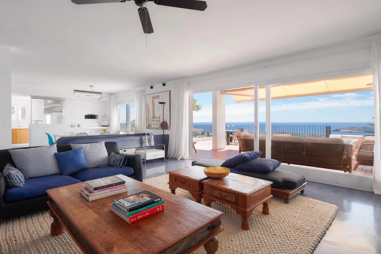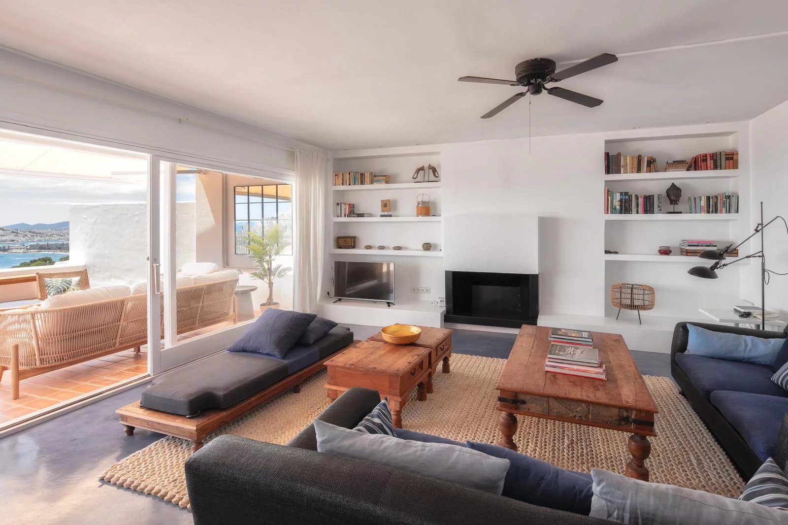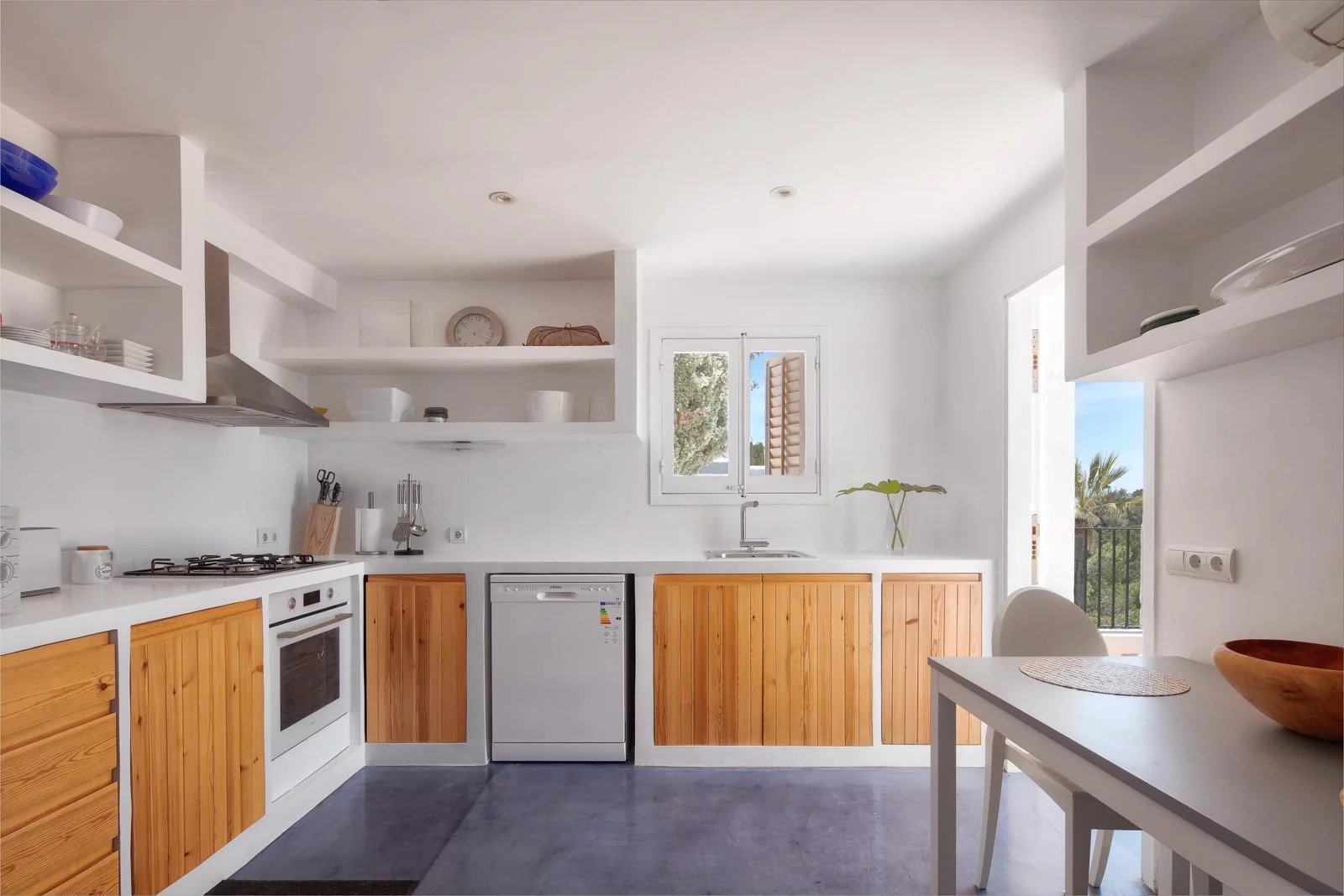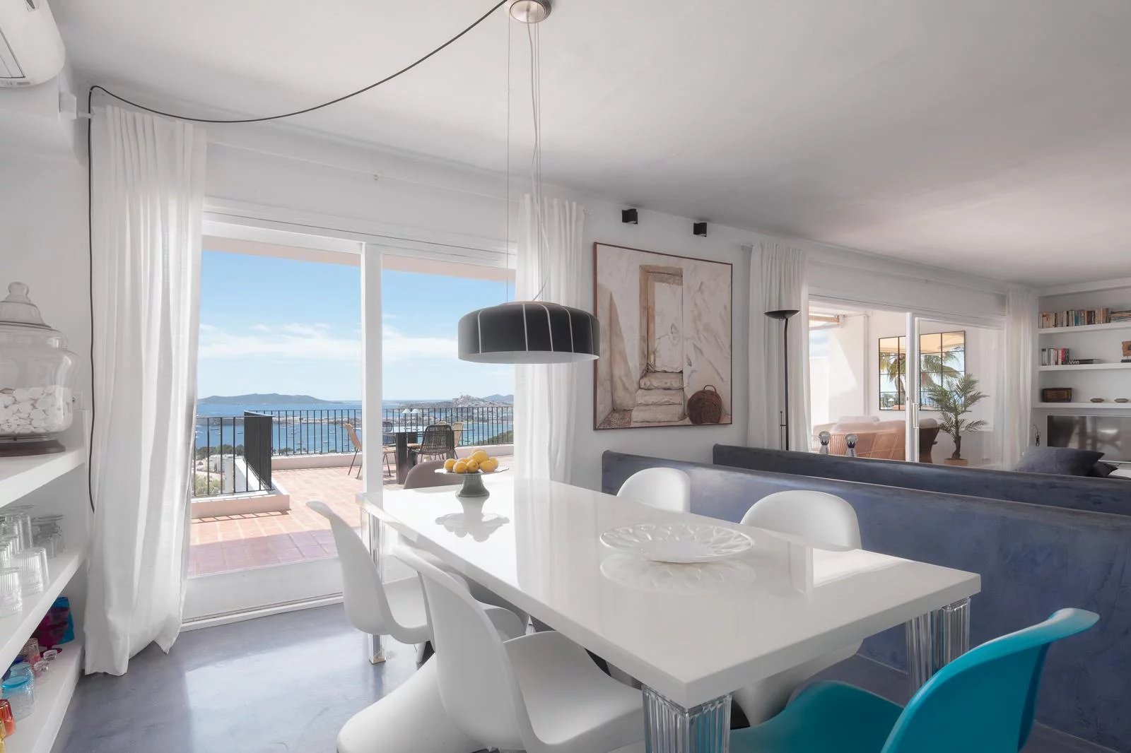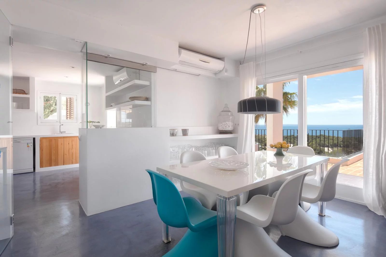 Casa Meta offers modern conveniences such as fast fiber-optic Wi-Fi and air conditioning in all bedrooms, the living room, and the kitchen. The outdoor area features a beautiful swimming pool with breathtaking views of Formentera, the bay of Talamanca, and the castle.