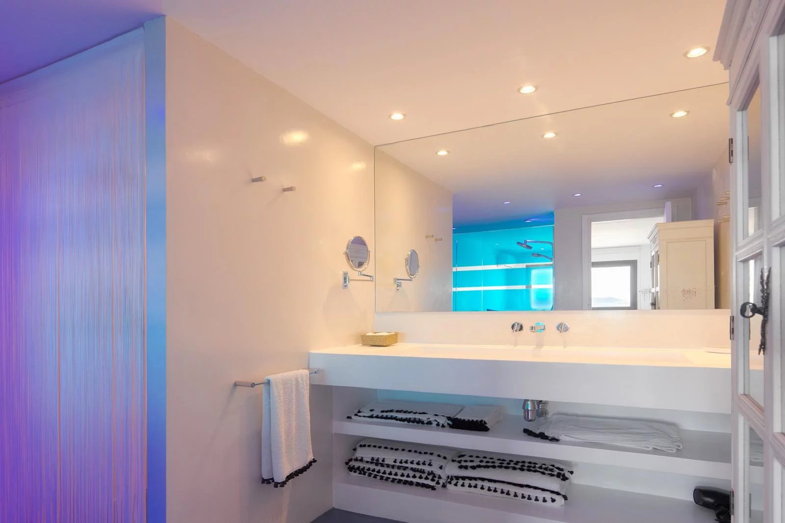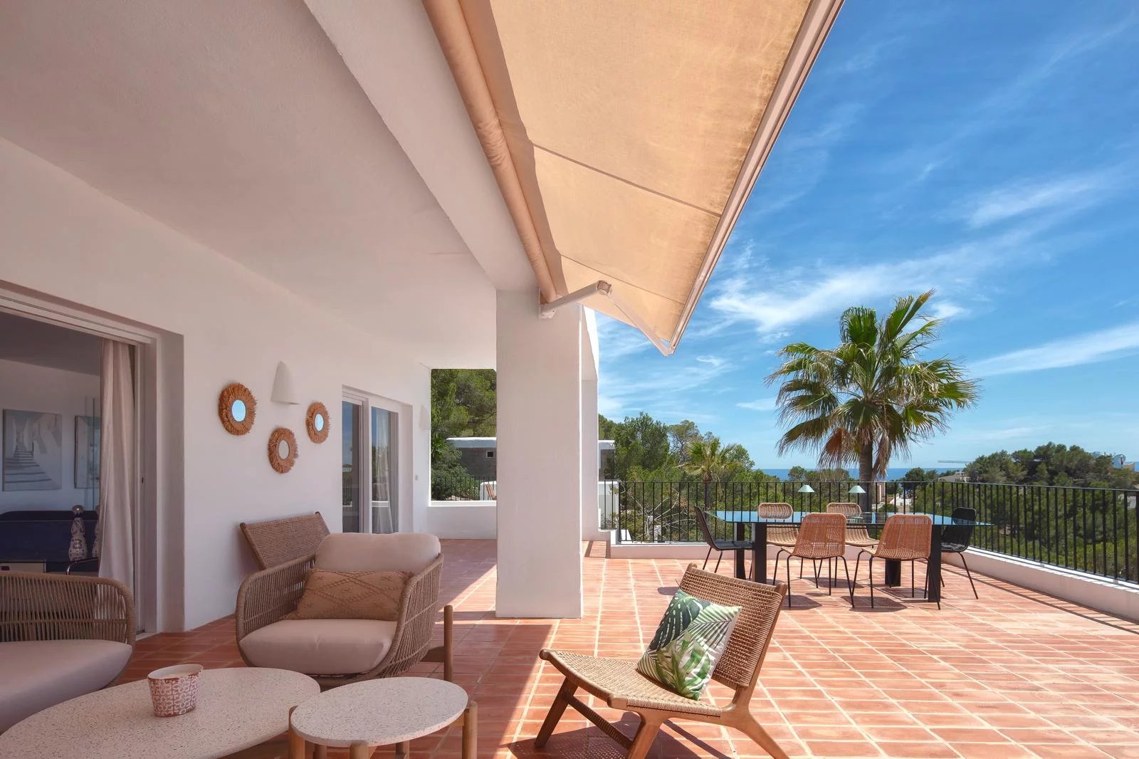 Parking is convenient with a covered area for two cars and one motorcycle. This exceptional home provides a perfect blend of luxury, comfort, and exclusivity, making it an ideal retreat for a memorable stay in Ibiza.