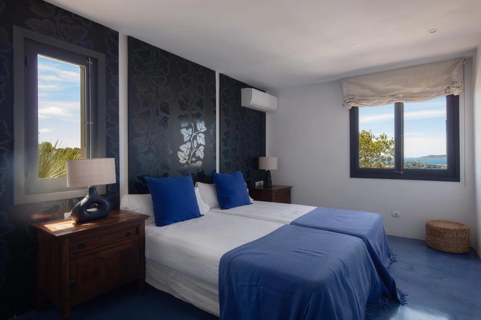 Casa Meta is a stunning property located in one of the most prestigious urbanizations of Ibiza, initially designed by the renowned architect Jose Luis Sert. This luxurious home offers five bedrooms and four full bathrooms, featuring two rooms with double beds, one with twin beds, one single room, and one with two bunk beds. While the house has a capacity for 10 guests, it is ideal for a maximum of 8, ensuring a comfortable and exclusive stay.