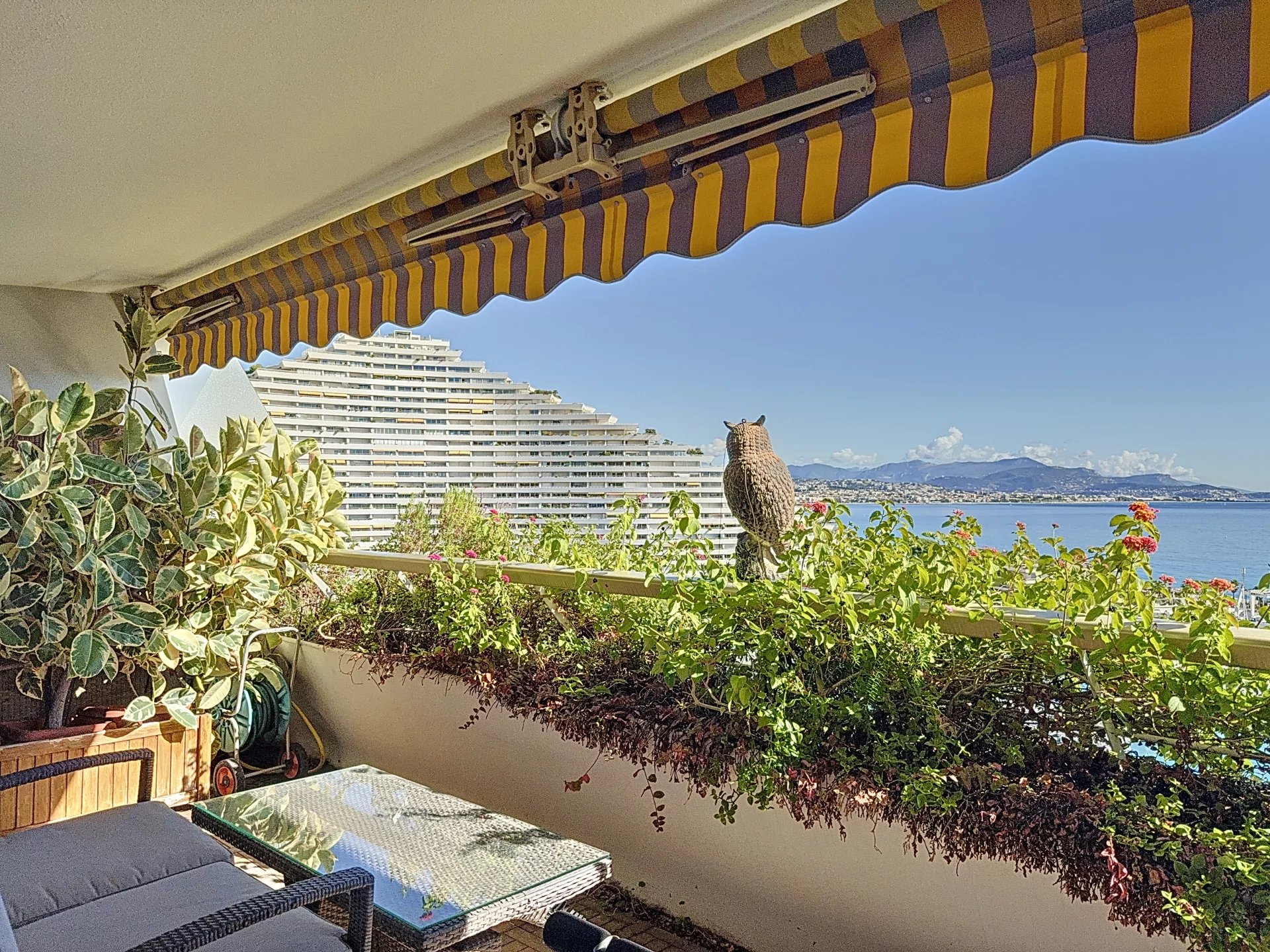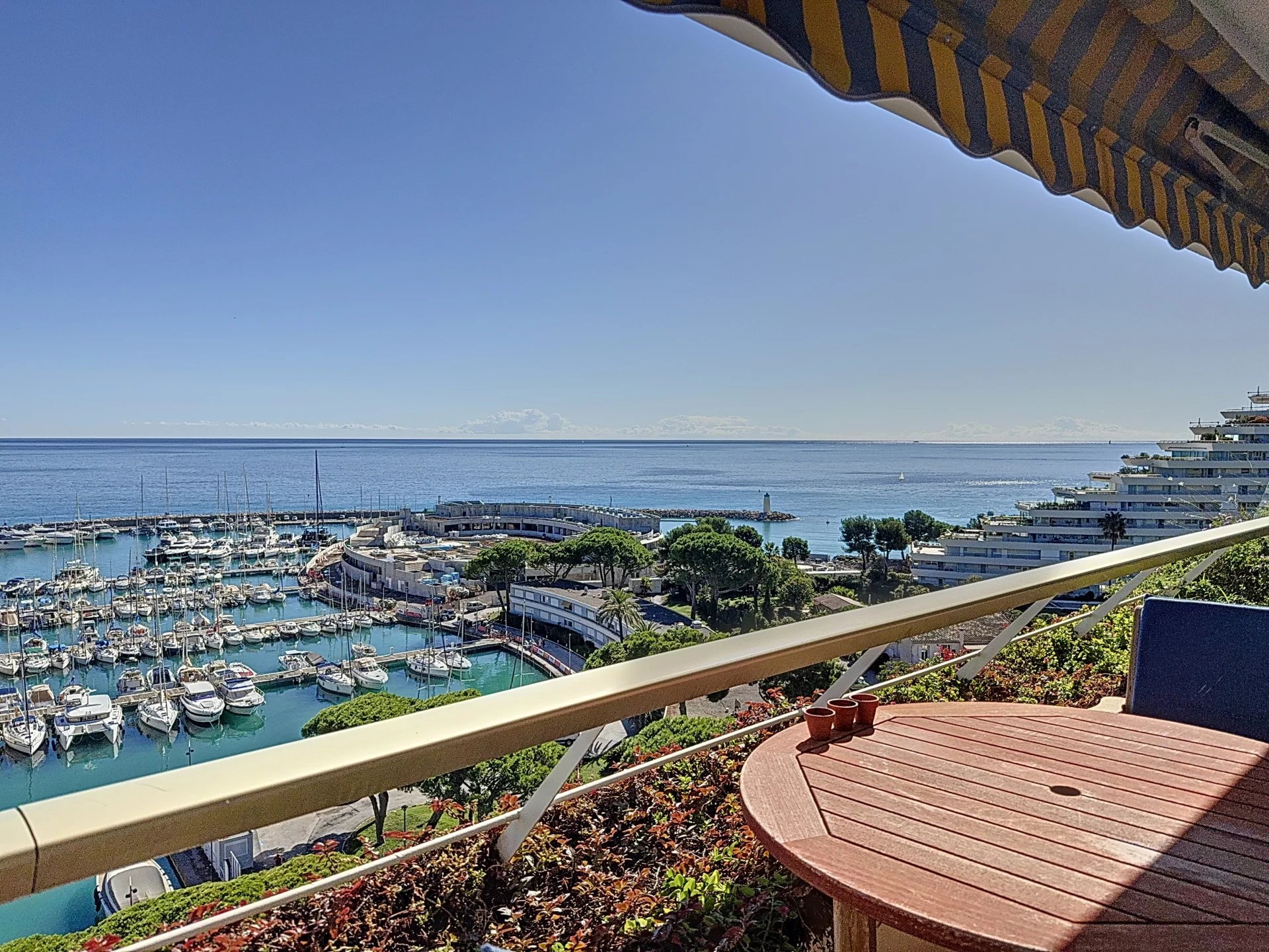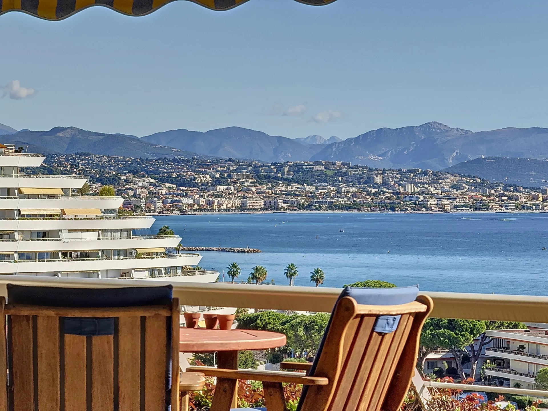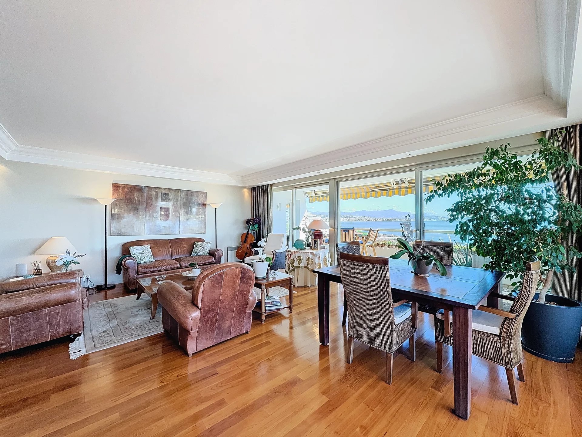 The bright entrance hall, living room and kitchen open onto a huge rectangular terrace with a breathtaking view of the Mediterranean, the Marina and Cap d'Antibes!