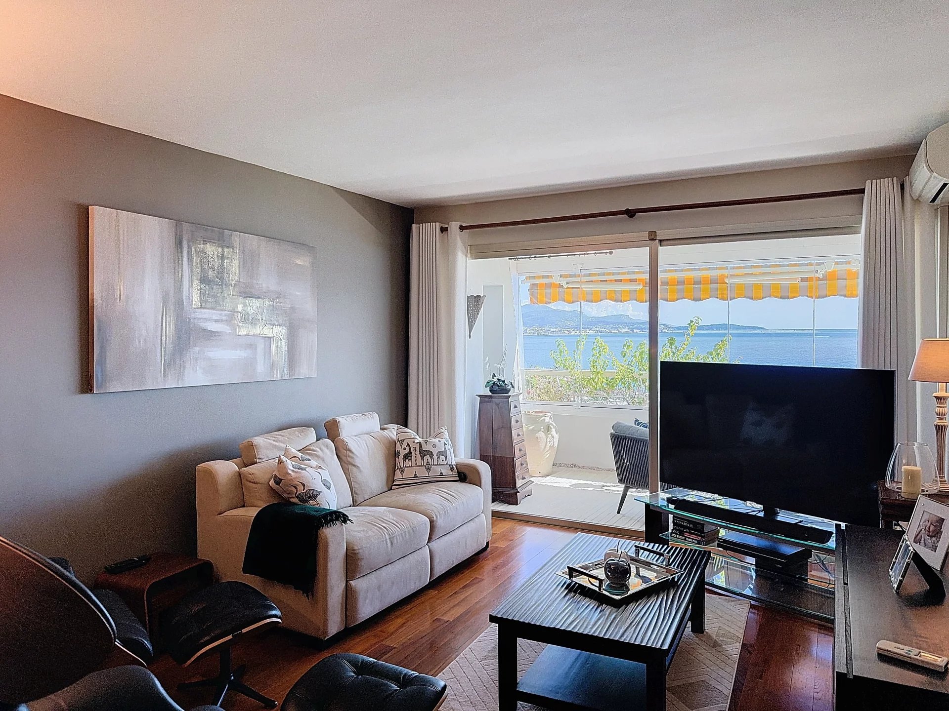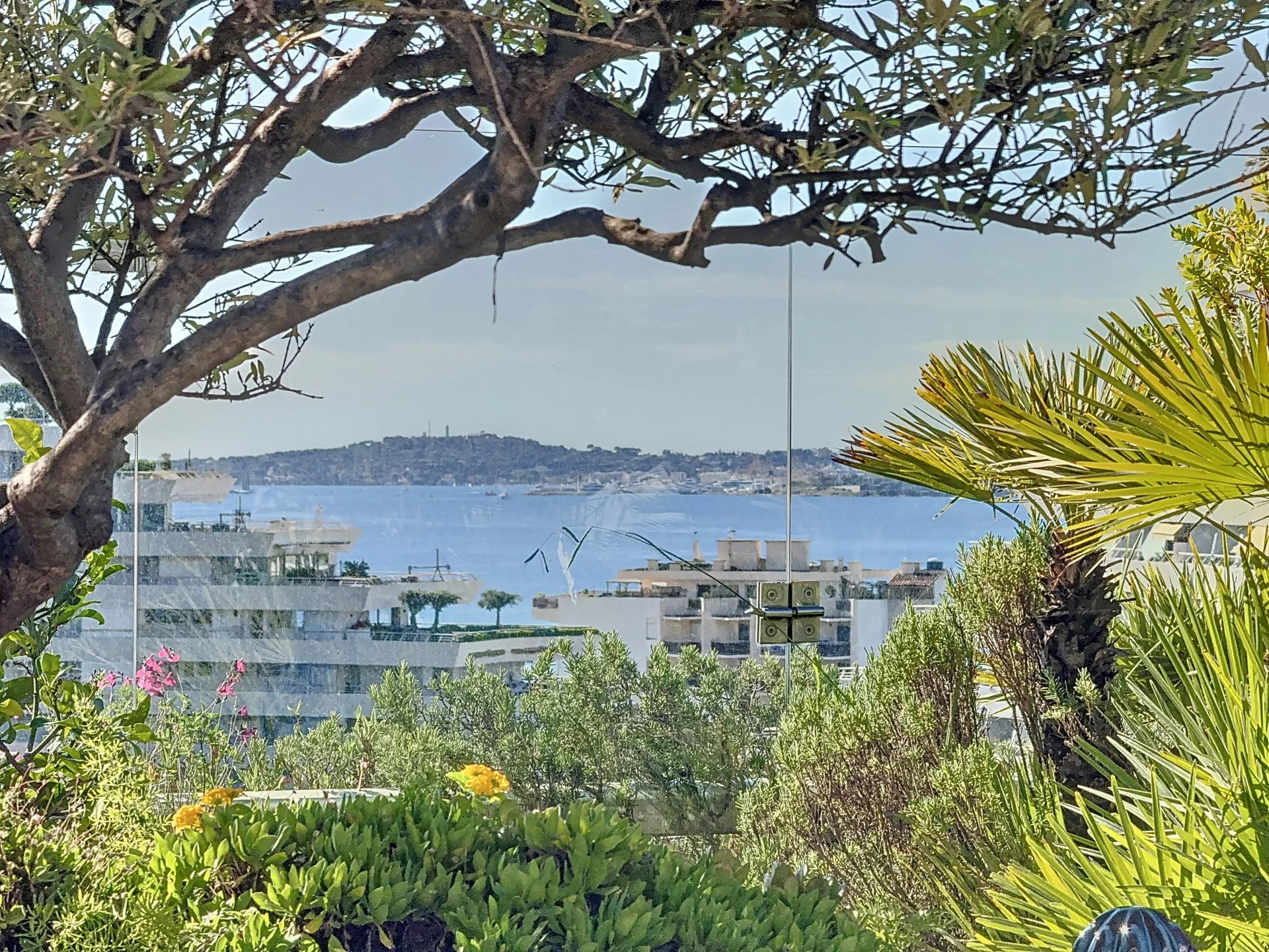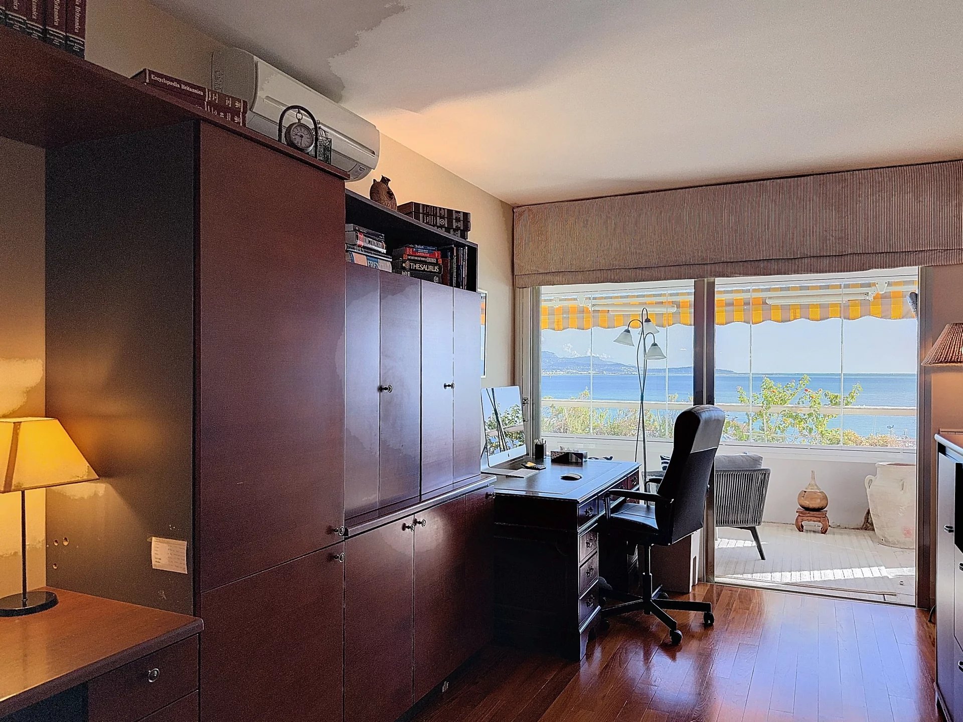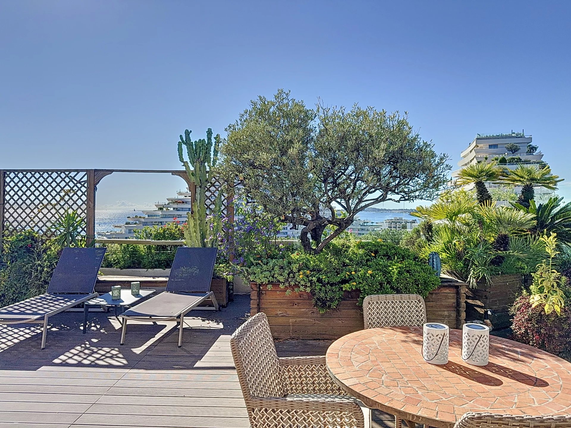 The bright entrance hall, living room and kitchen open onto a huge rectangular terrace with a breathtaking view of the Mediterranean, the Marina and Cap d'Antibes!