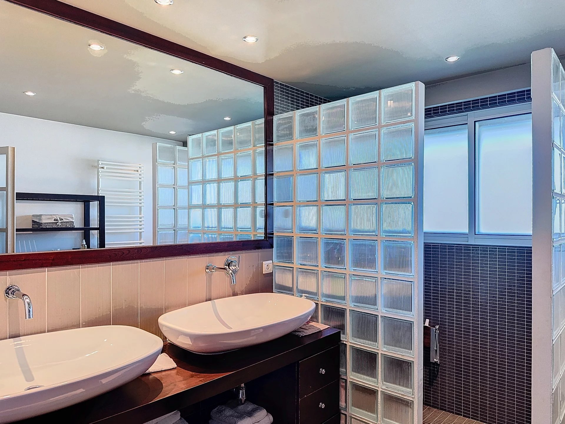 Comprising three bedrooms converted into an office, TV room and guest room, this apartment also includes a master suite worthy of a 5-star hotel. Laundry room, closed garage, underground parking and two cellars.