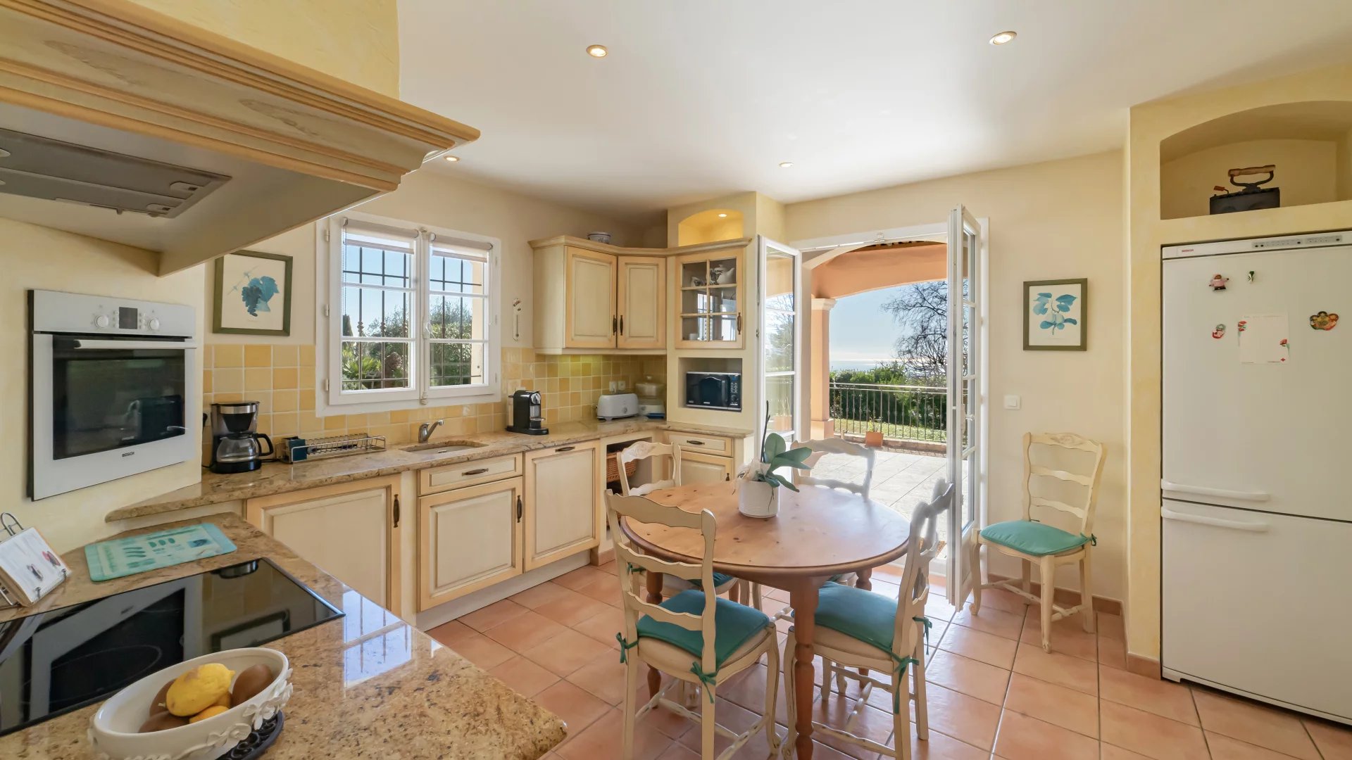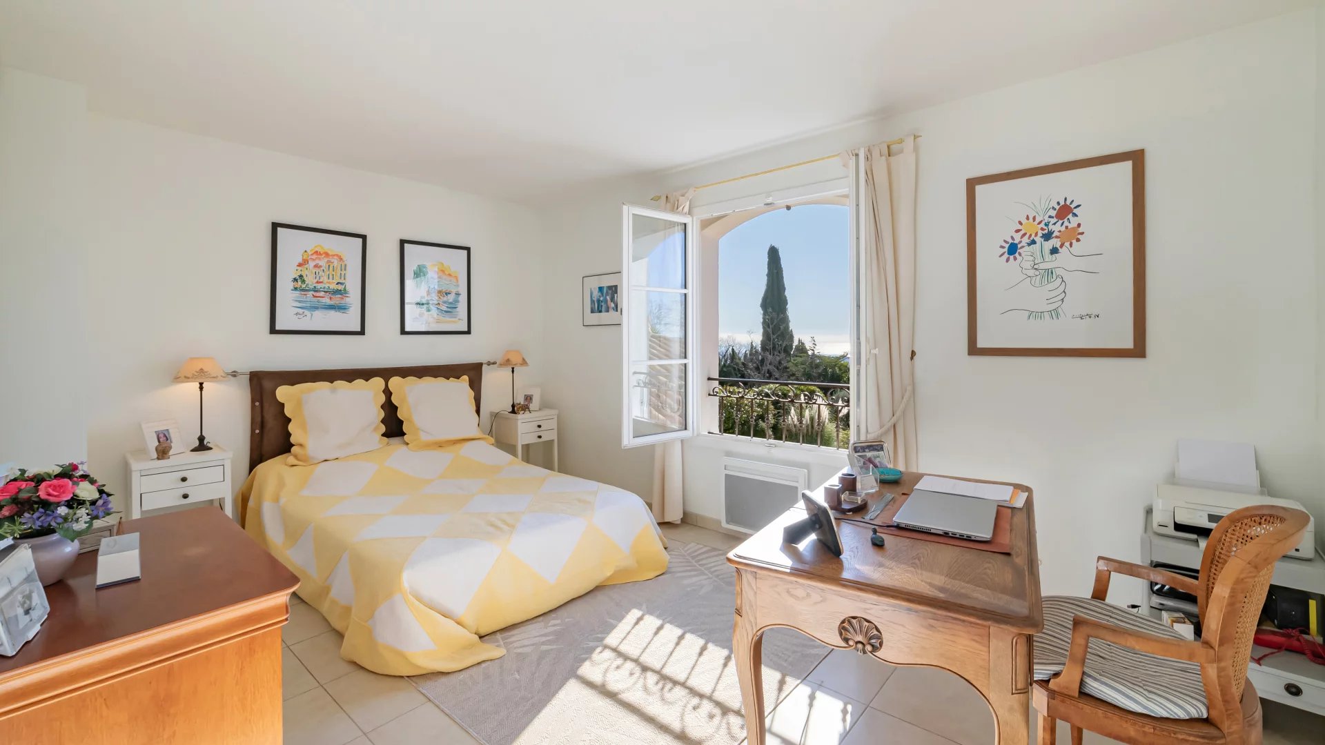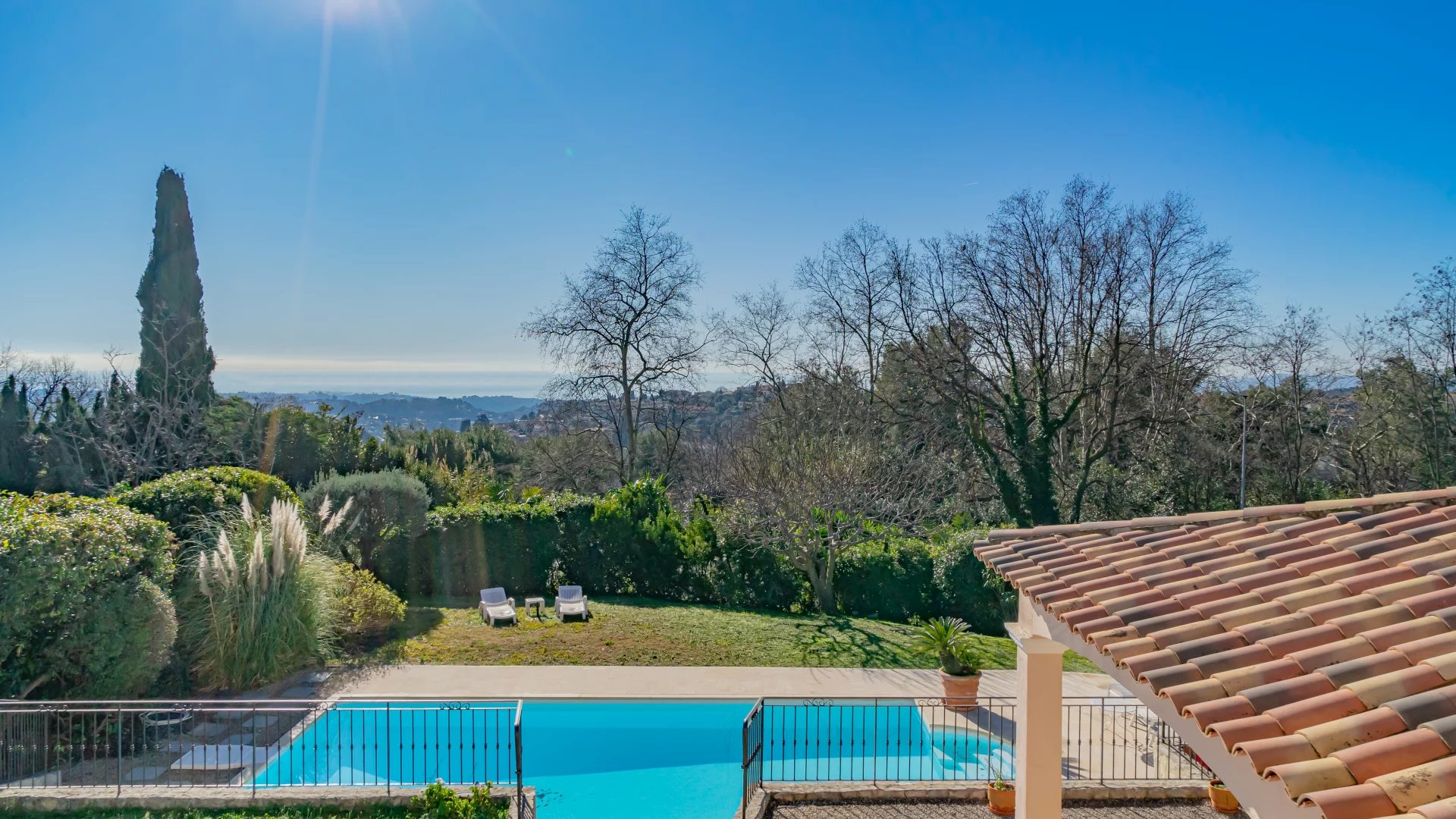 LOVE AT FIRST SIGHT. Nestled in a sought-after residential area, this elegant Provençal villa of approximately 158sq.m, featuring 4 bedrooms, offers an exceptional living environment. Set on a beautifully landscaped 1,500sq.m plot, it boasts a stunning swimming pool, panoramic sea views, and a lush, green setting.