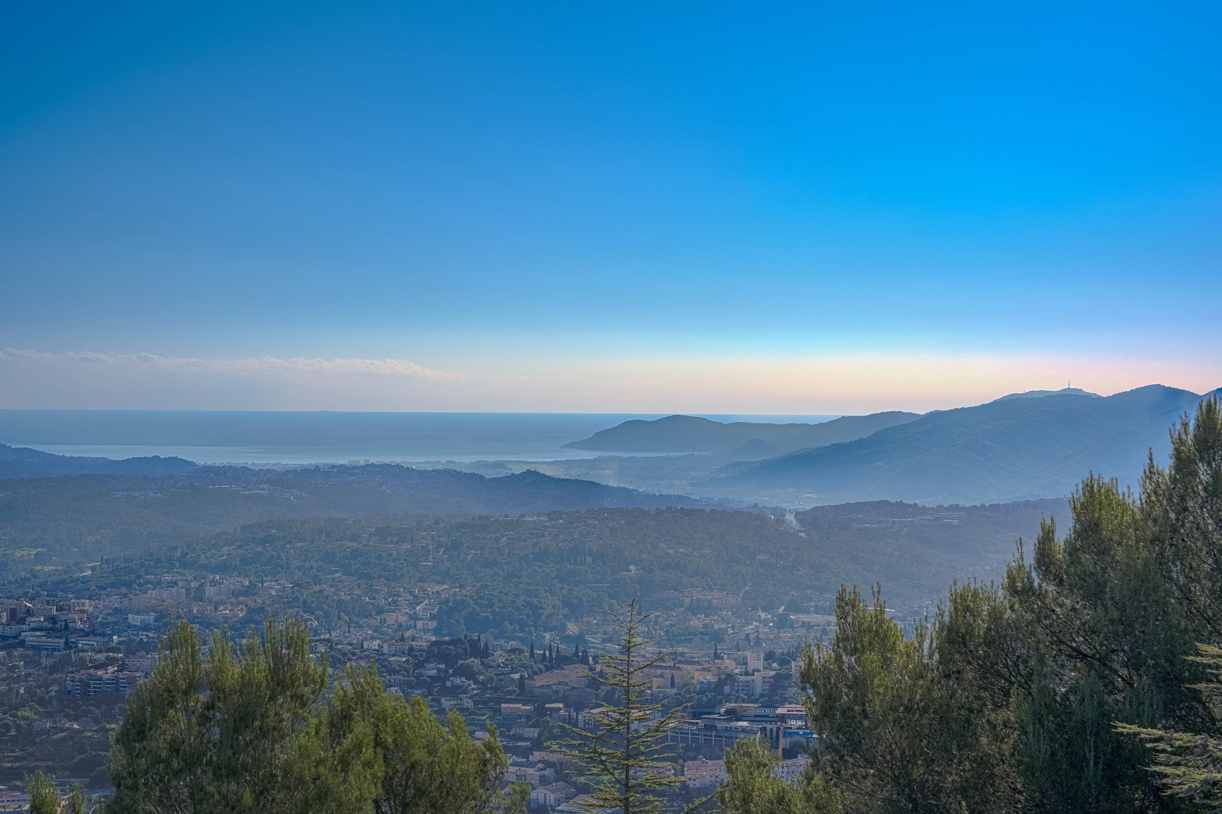 This magnificent residence, nestled in the heart of the prestigious Domaine Rothschild in Saint-Christophe, offers breathtaking panoramic views stretching from Nice and the bay of Mandelieu to the Esterel mountains, all within a serene cul-de-sac setting.