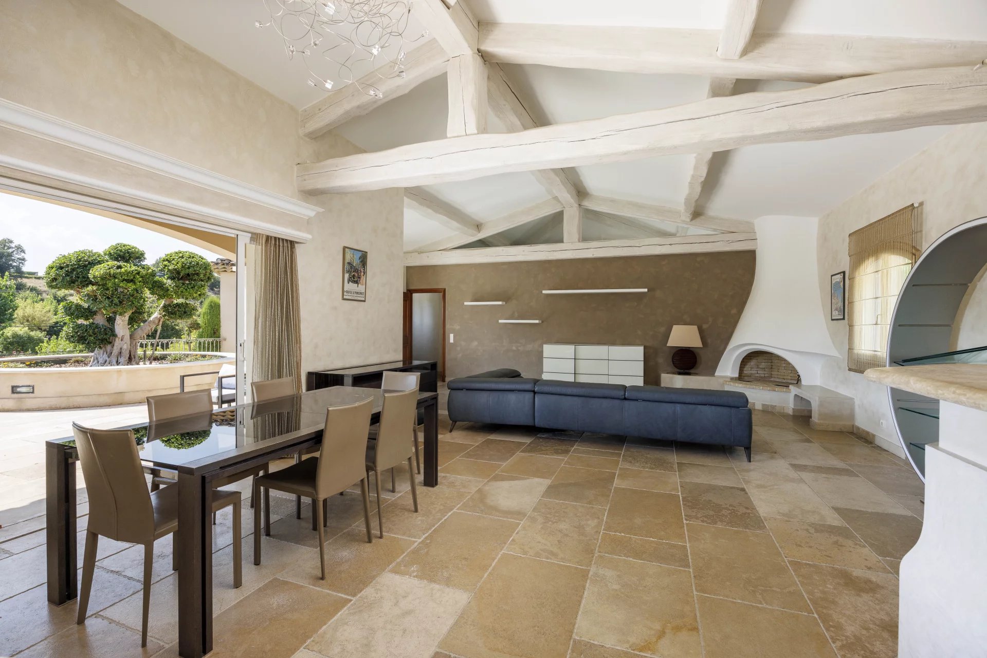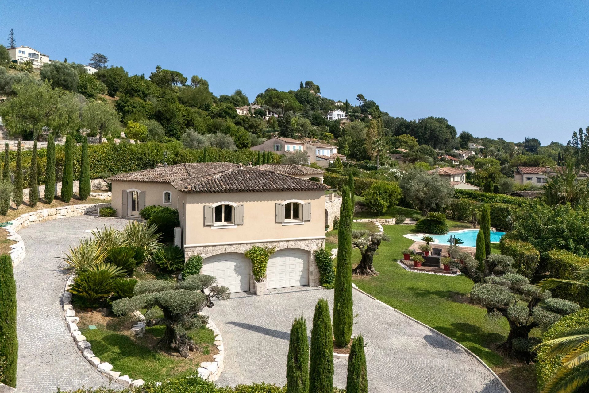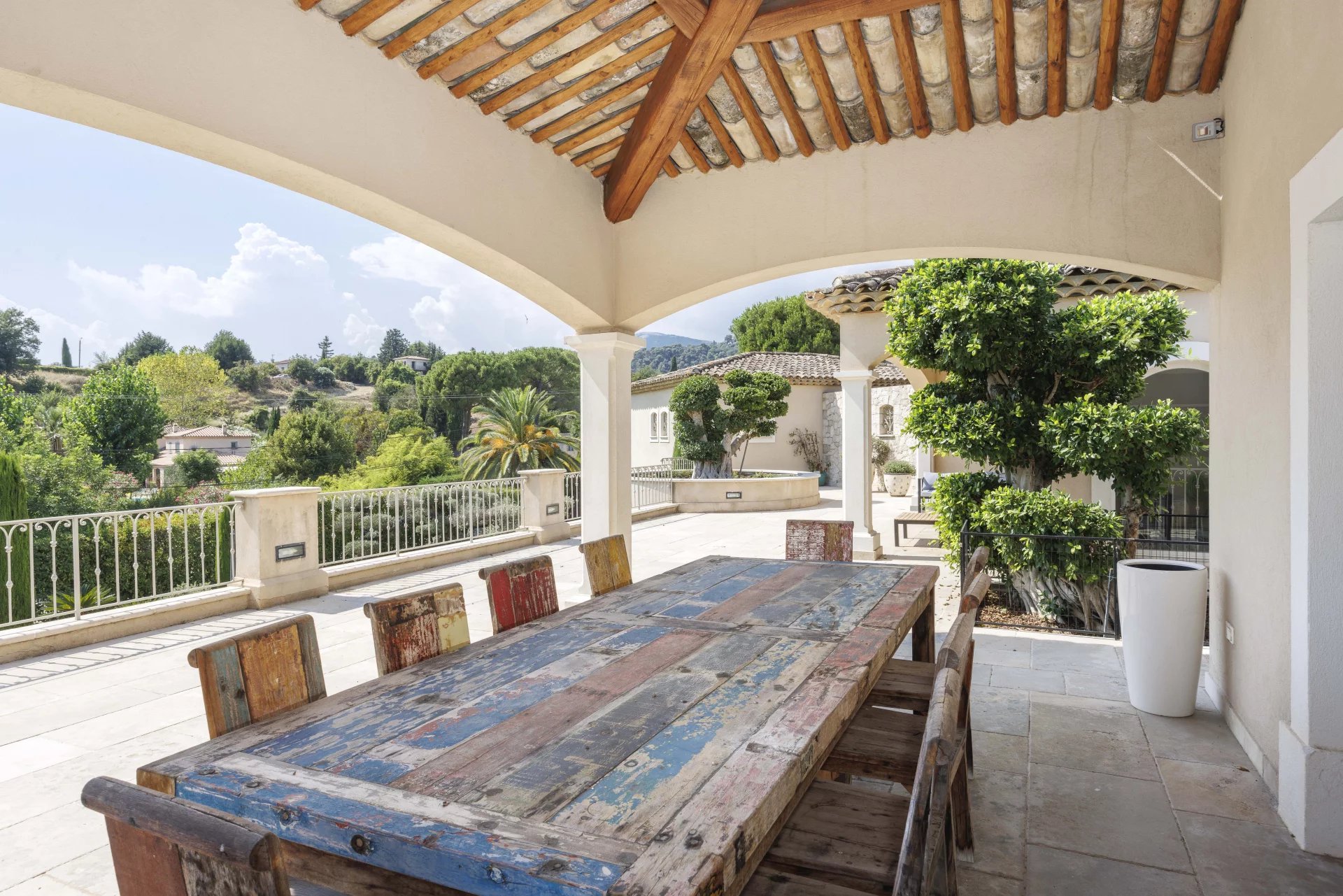 Located just a stone's throw from the village of Saint-Paul de Vence, this opulent property (approx. 285 m² + 7-car garage) benefits from a quiet, residential setting and a 2,600 m² landscaped garden with heated infinity pool.