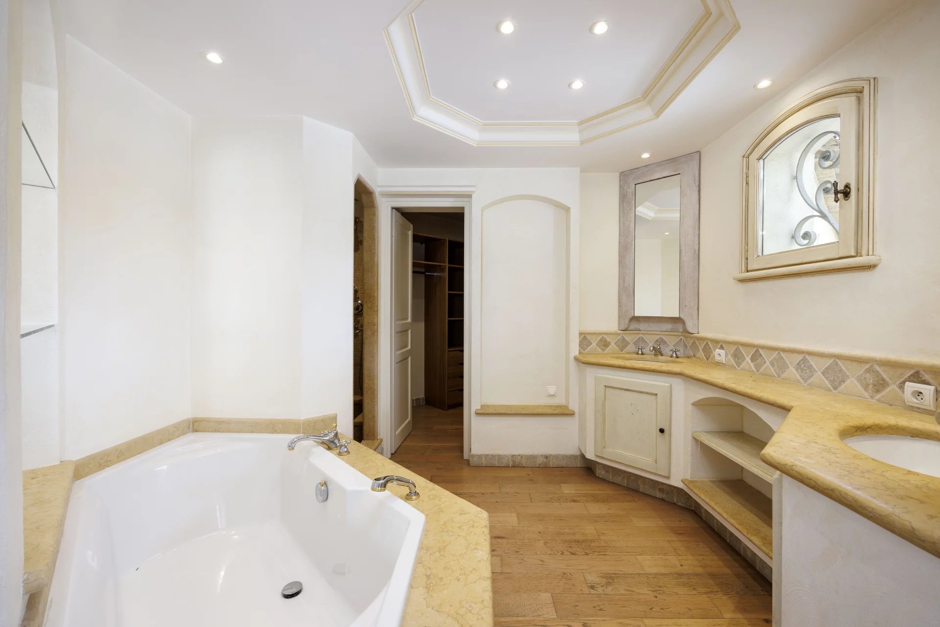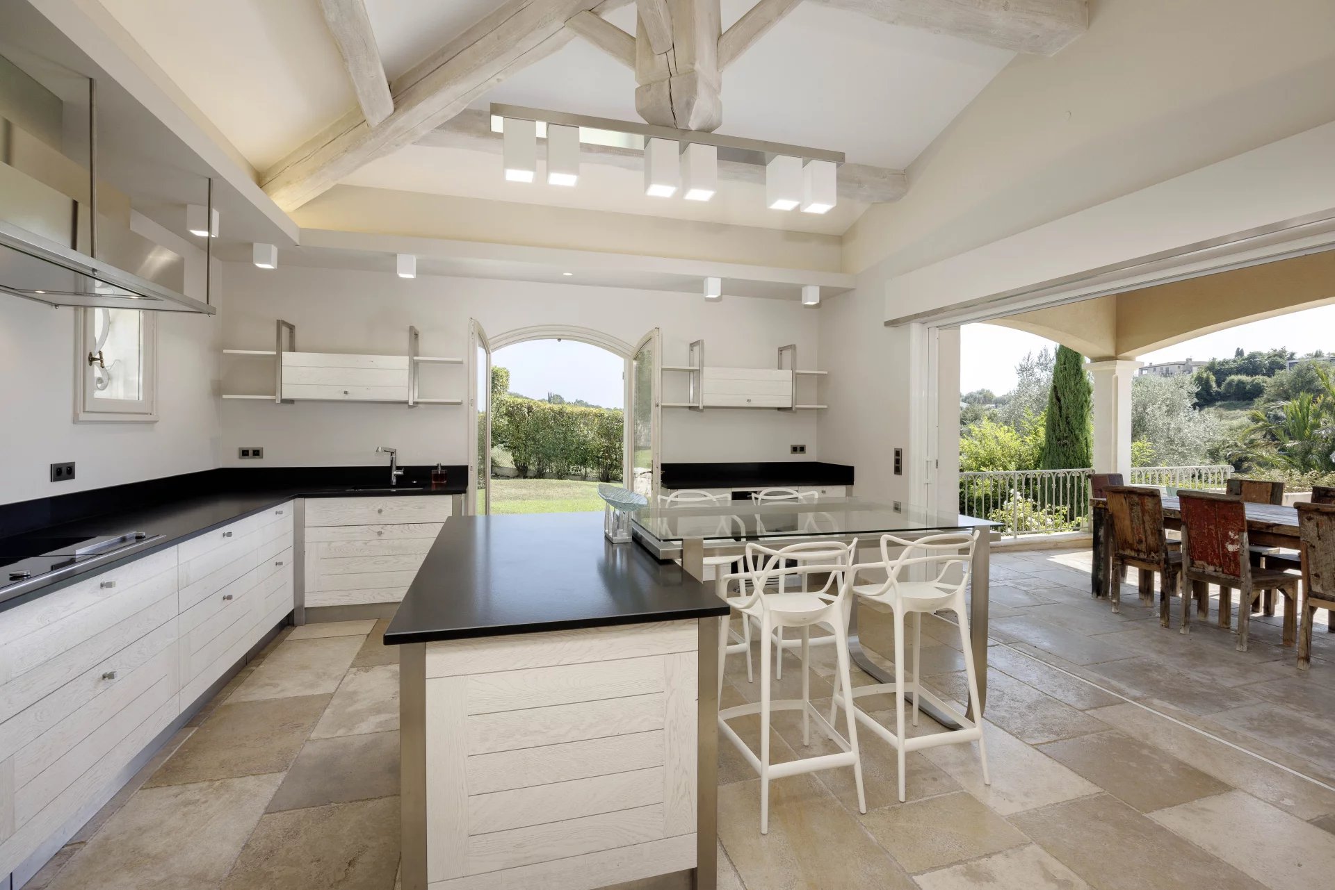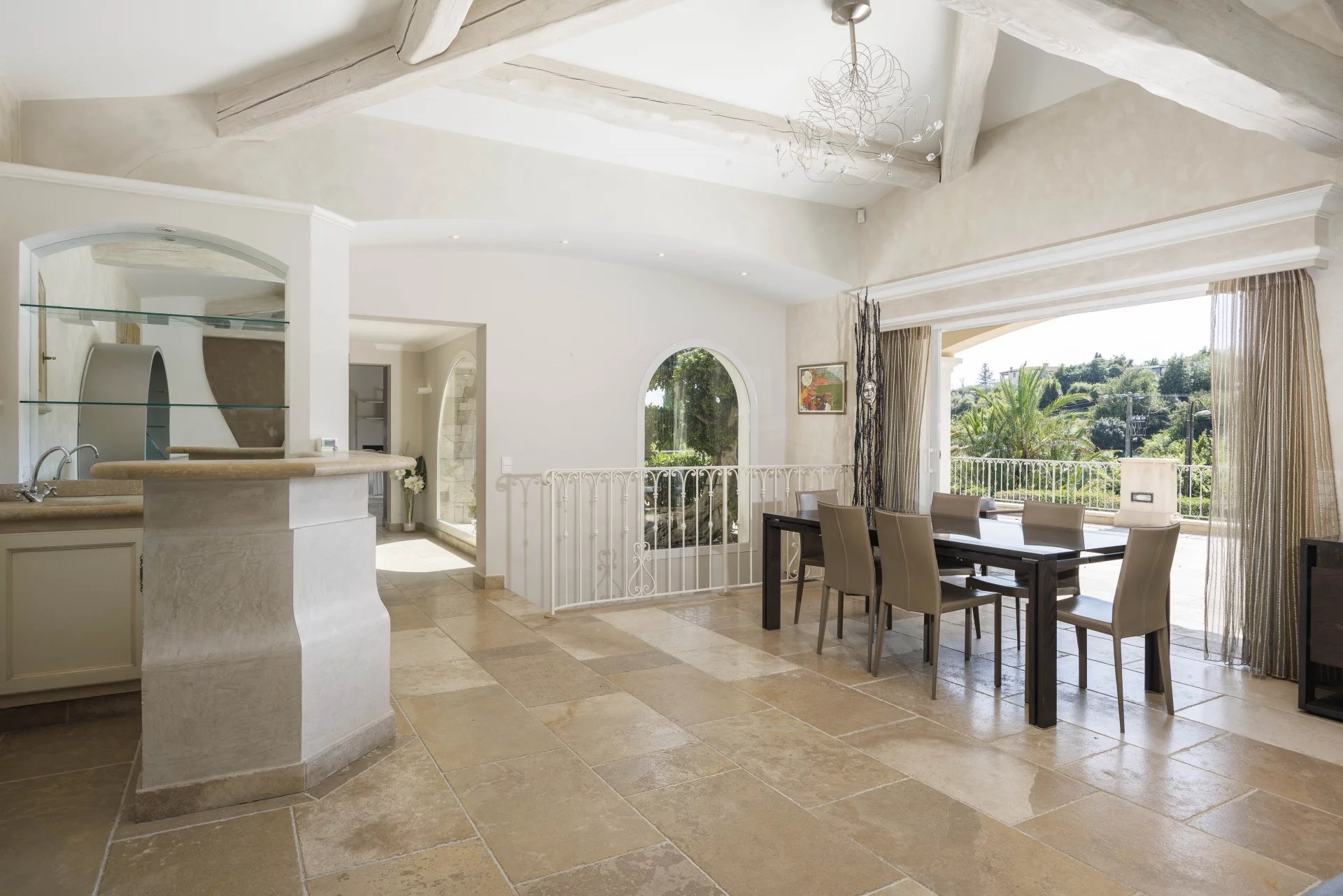 Located just a stone's throw from the village of Saint-Paul de Vence, this opulent property (approx. 285 m² + 7-car garage) benefits from a quiet, residential setting and a 2,600 m² landscaped garden with heated infinity pool.