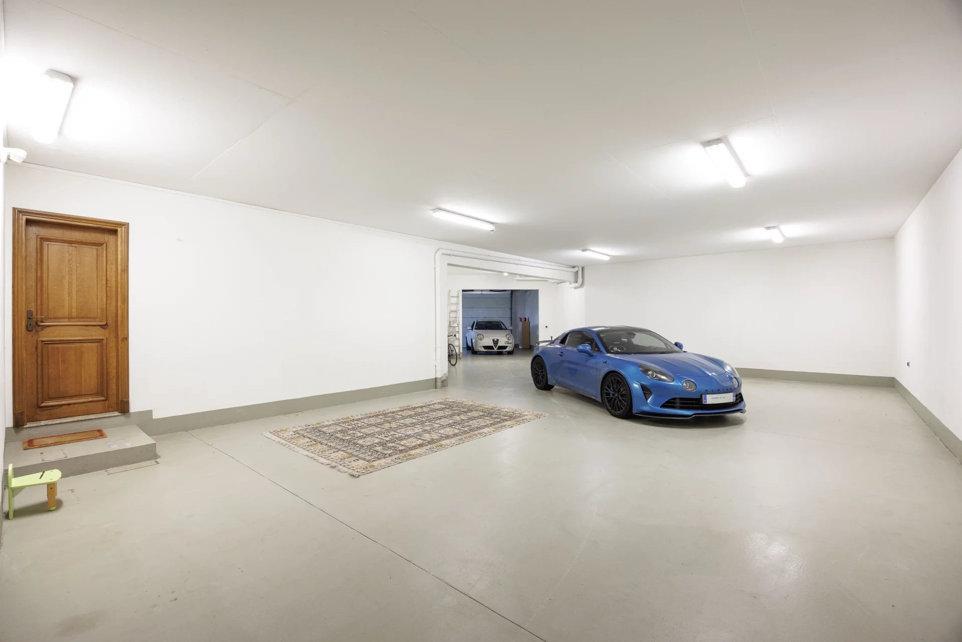The lower floor offers 2 bedrooms with shower rooms, an office (possible 6th bedroom), a laundry room and a gigantic garage of over 220 m² for 7 cars. The office and laundry room, accessible from a vast hallway with a separate entrance door, offer a space perfectly suited to a home-based business.