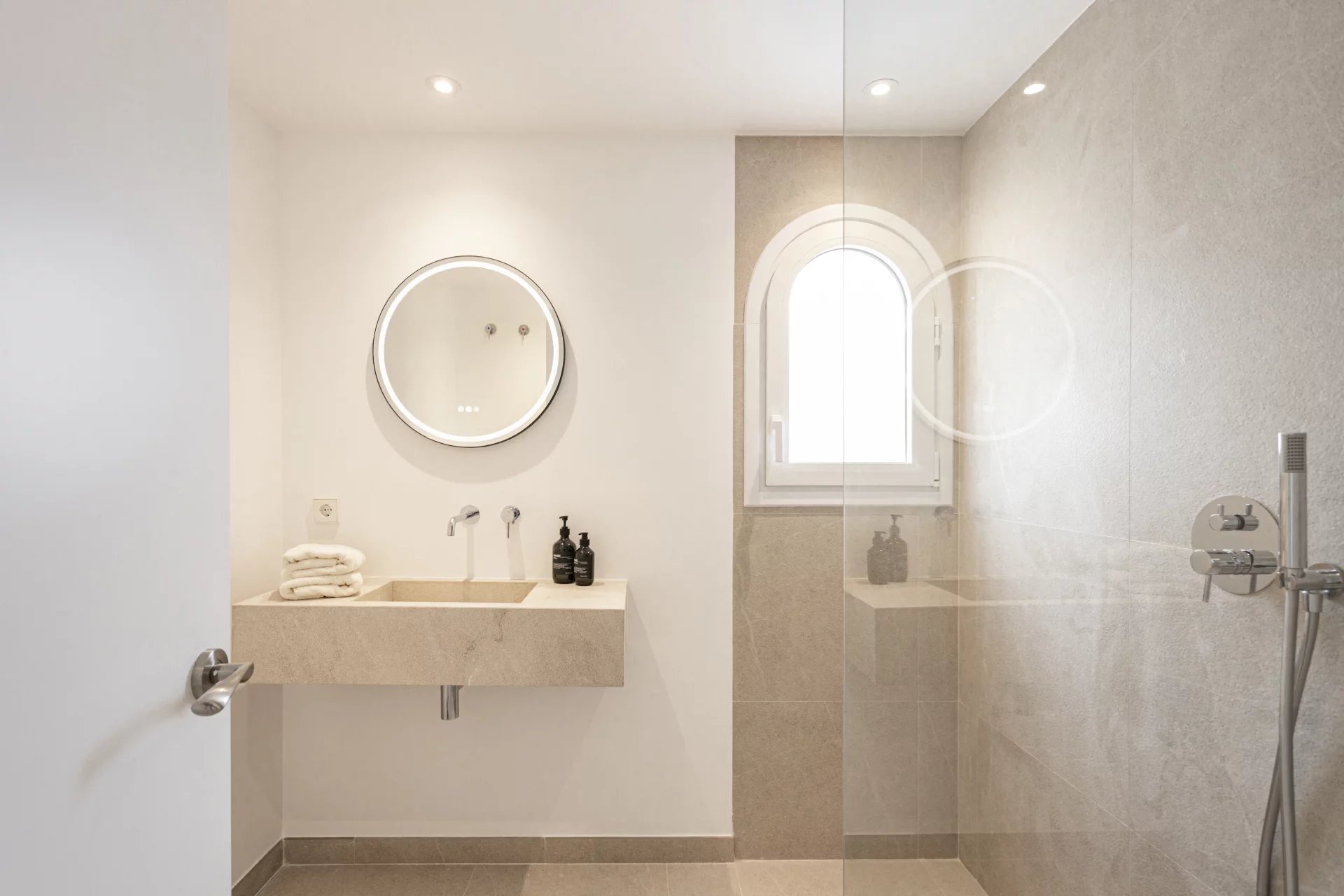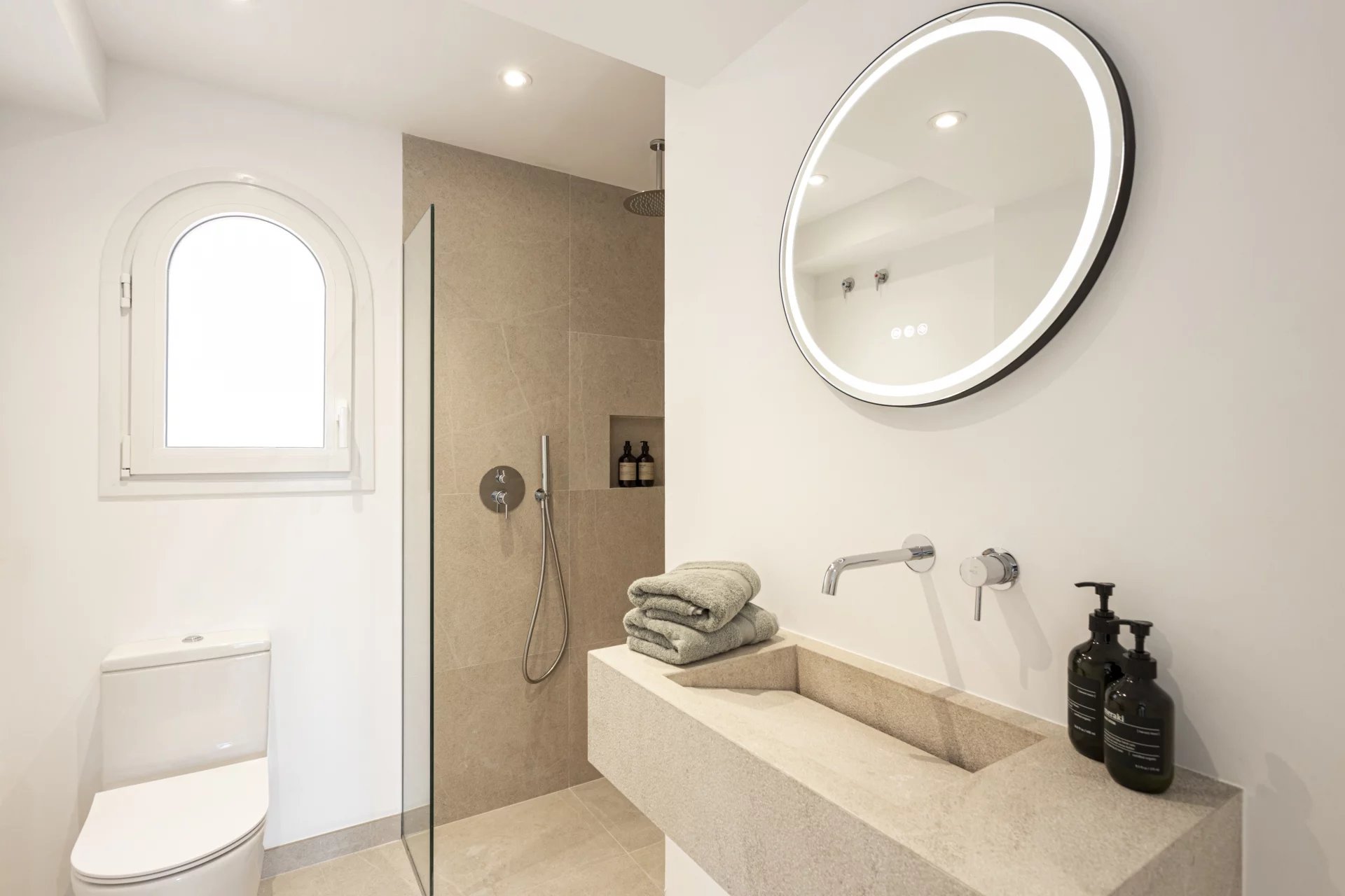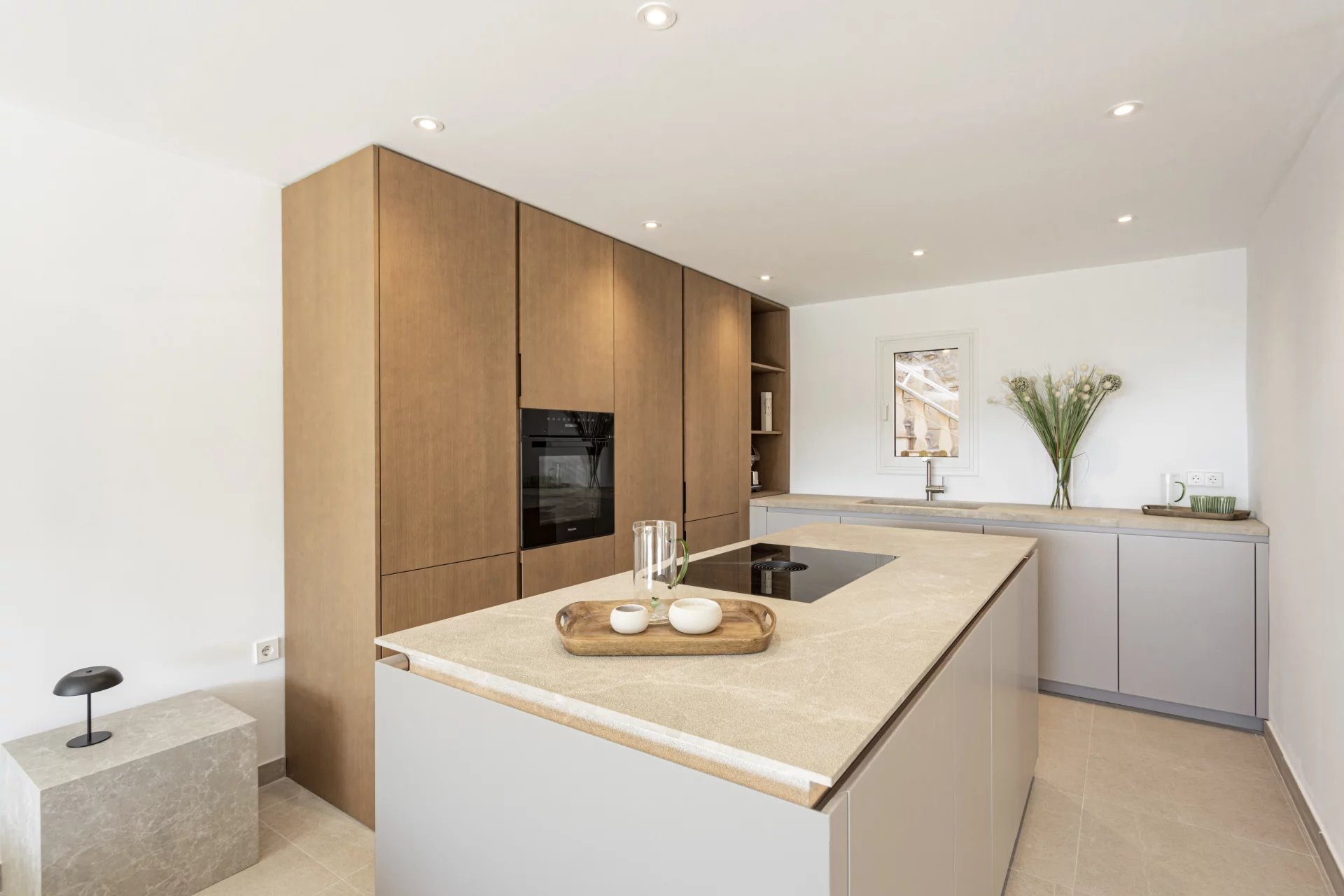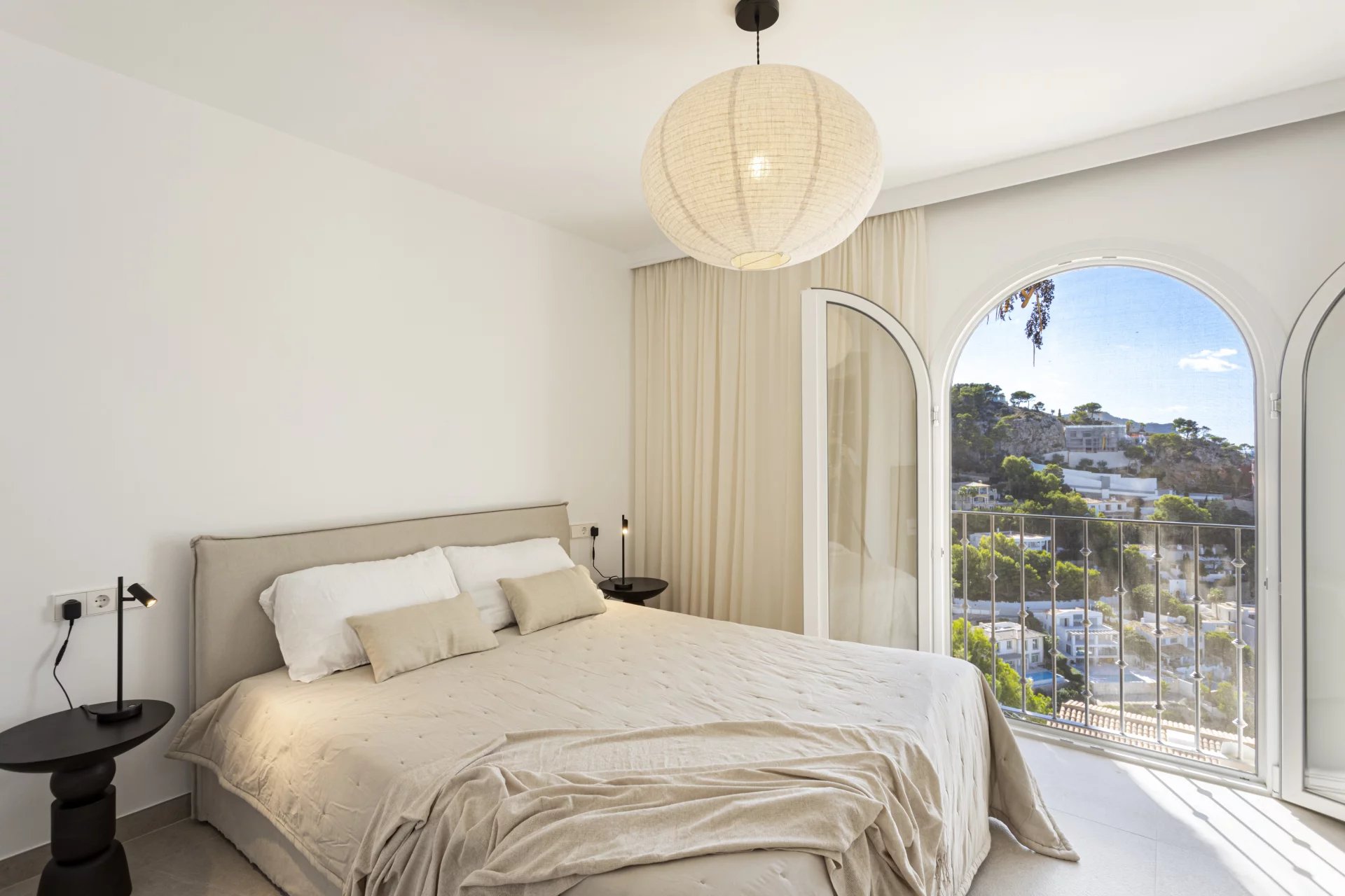 The large open living-dining area and kitchen are bathed in natural light and connect effortlessly to the terrace, creating the perfect setting for entertaining or relaxing while enjoying panoramic coastal vistas.