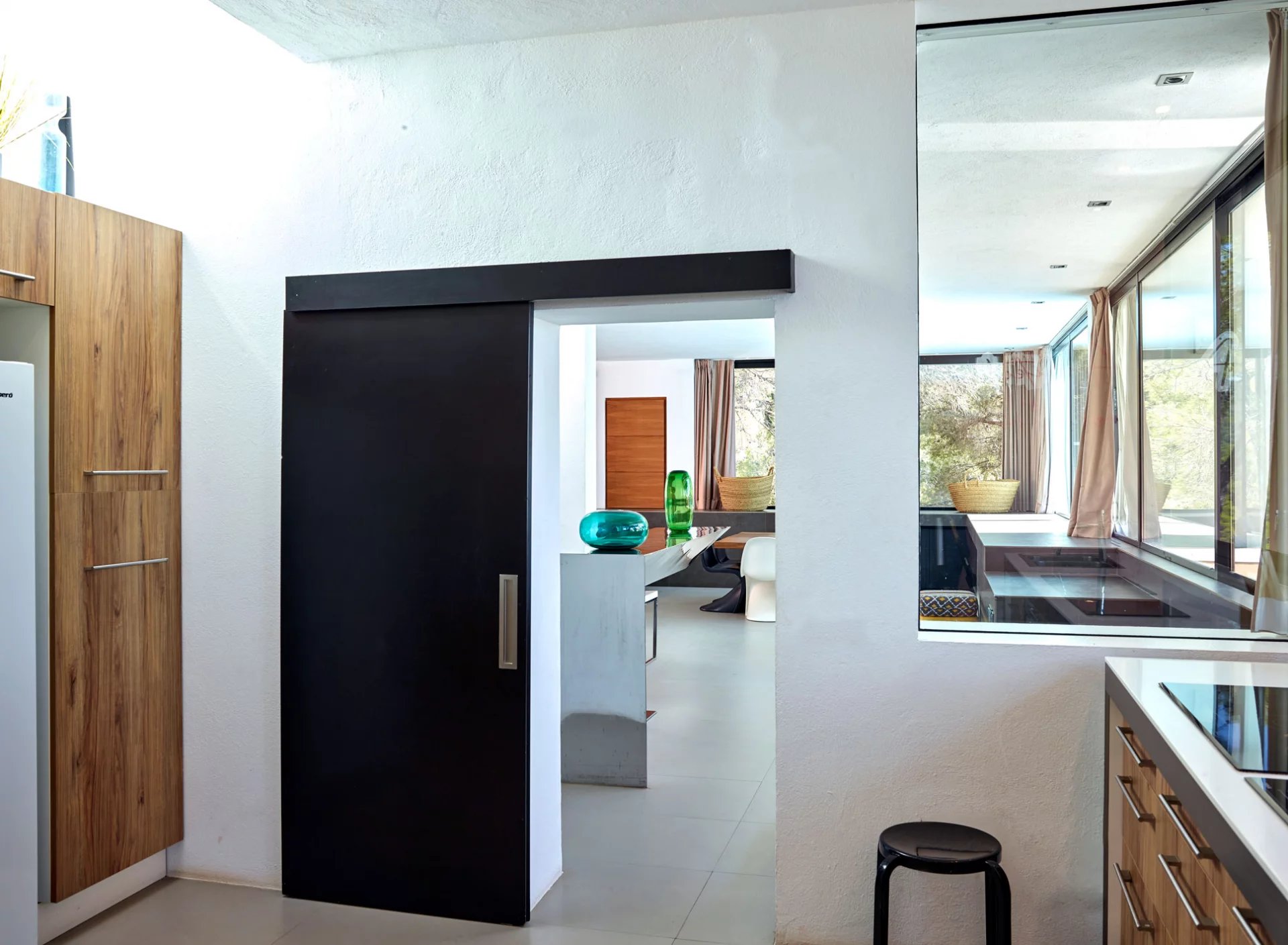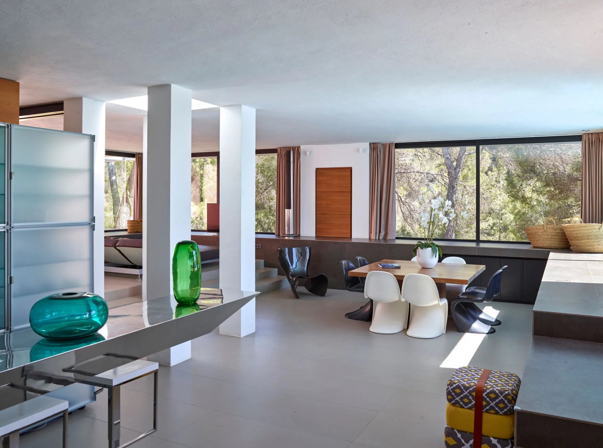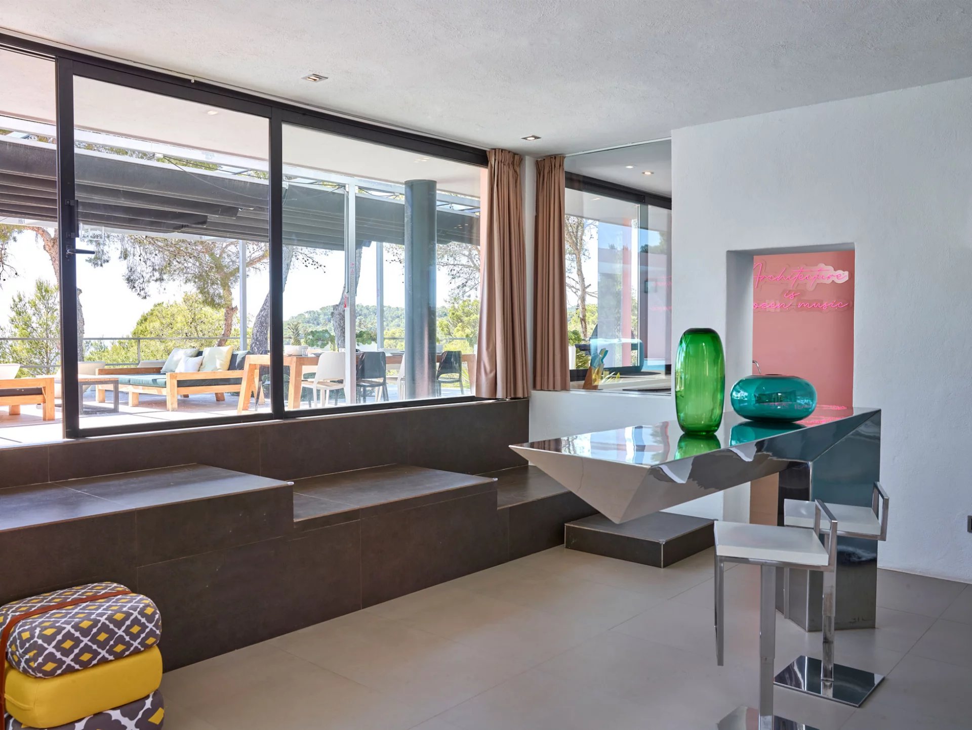 This impressive modern villa is located in the eastern part of Ibiza, near the famous Cala D'Hort and Cala Vadella beaches, surrounded by Mediterranean nature and pine trees. Situated on a quiet and private hillside, this hidden gem offers spectacular views of the sea and sunsets, ideal for enjoying unforgettable moments on the island. Just a few minutes from the charming village of San José, the property combines elegance, tranquility, and an unparalleled natural setting.