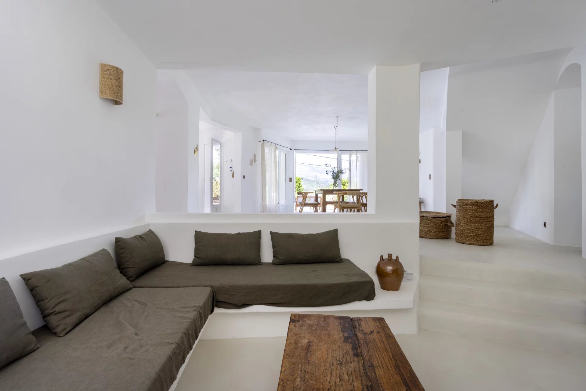 Outside, a beautifully landscaped garden of around 3,000 sqm, adorned with century-old olive trees and Mediterranean species, surrounds a delightful swimming pool, creating the perfect haven for relaxation.