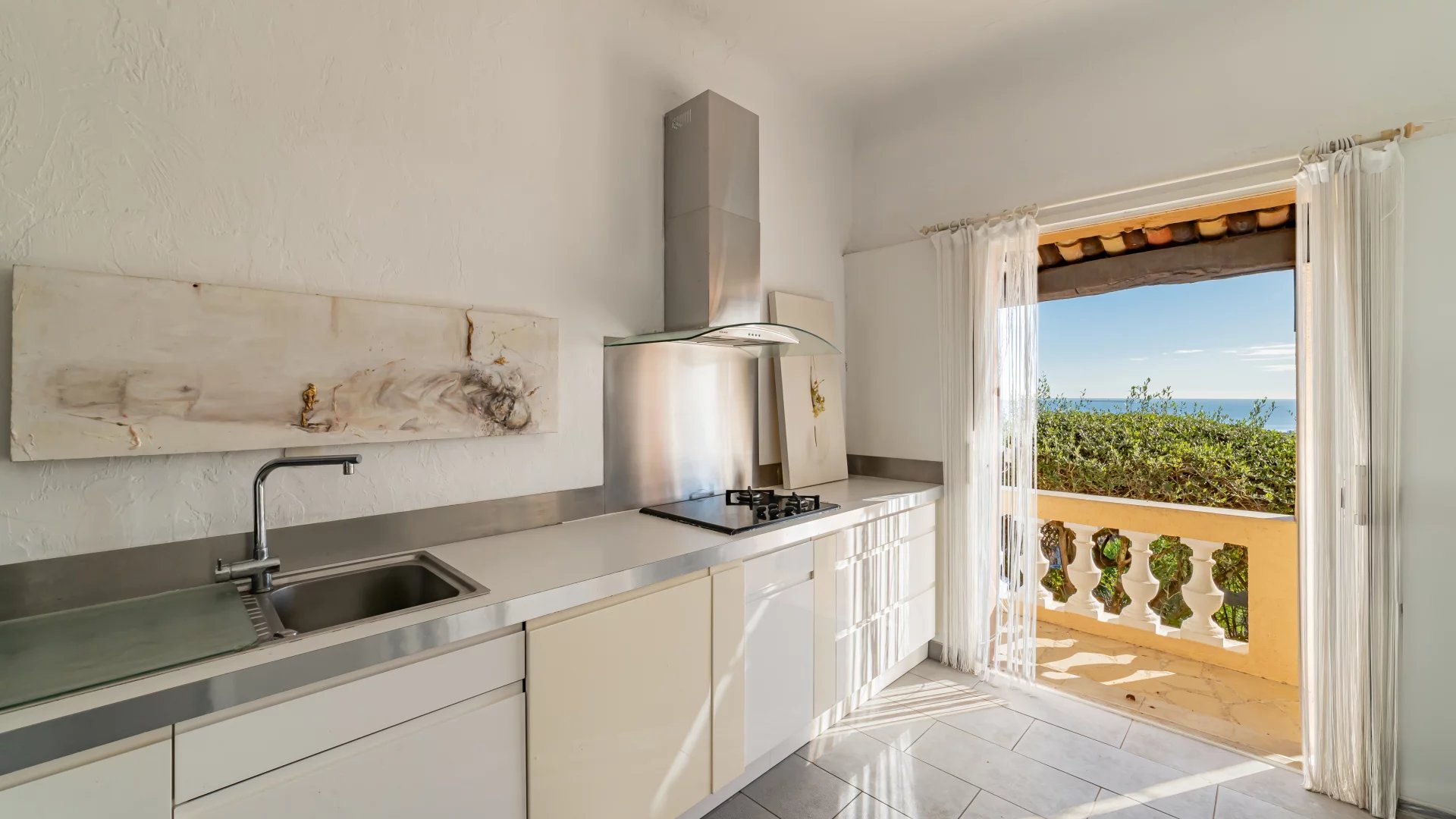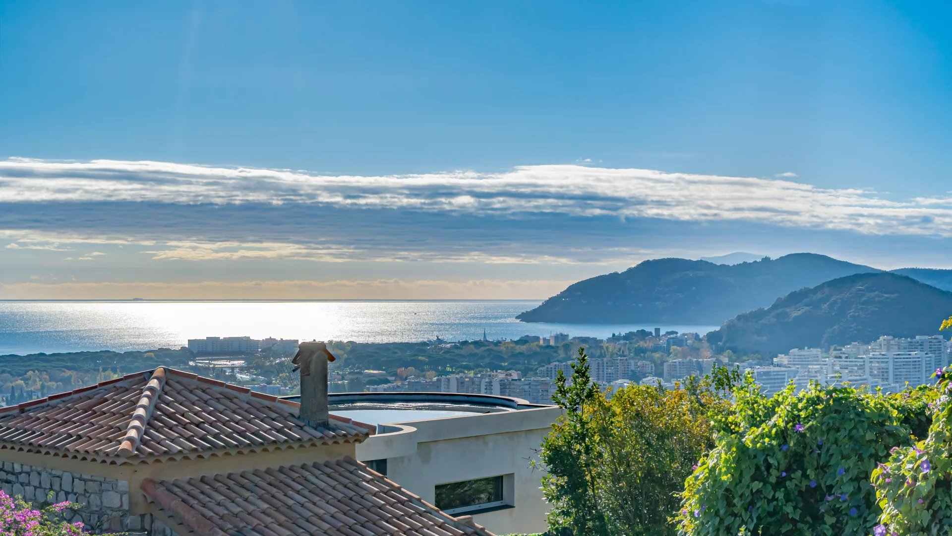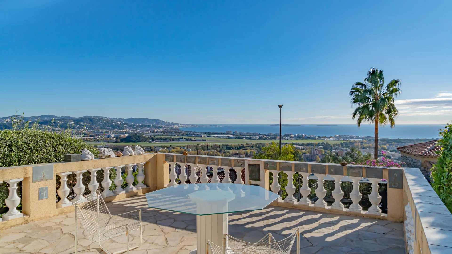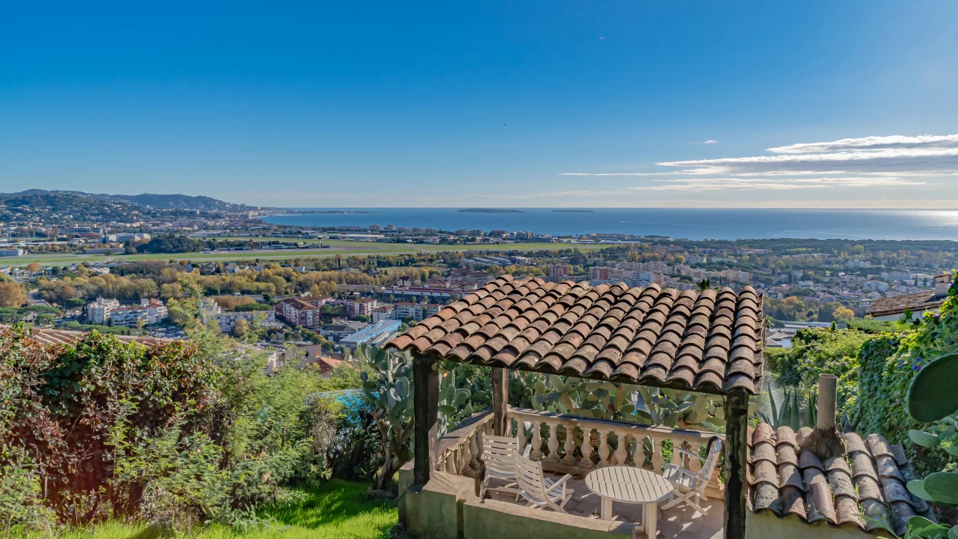 Located in a sought-after residential area of Mandelieu, this Provençal-style home enjoys an exceptional panorama: the sea, the Lérins Islands, and the city unfold before you the moment you step inside.