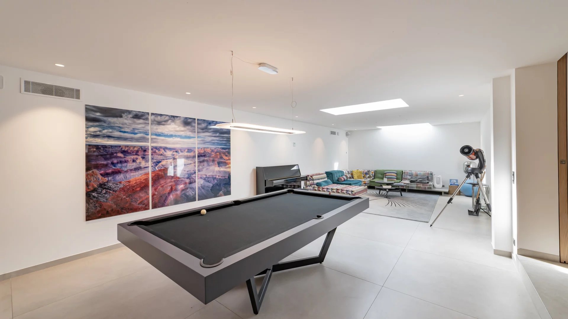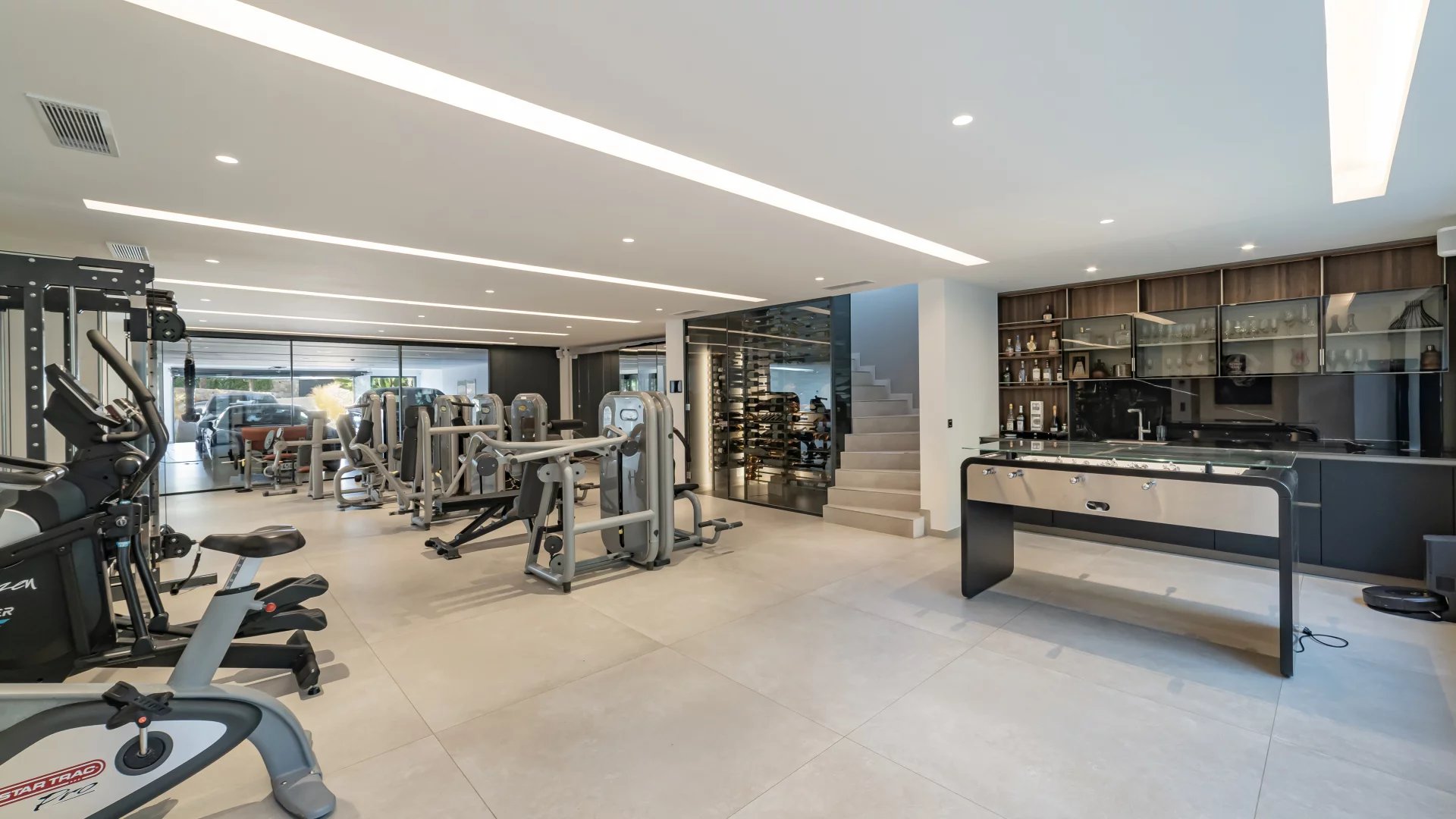 The property features five en-suite bedrooms plus an independent apartment, along with a wine cellar, gym, and billiard lounge.