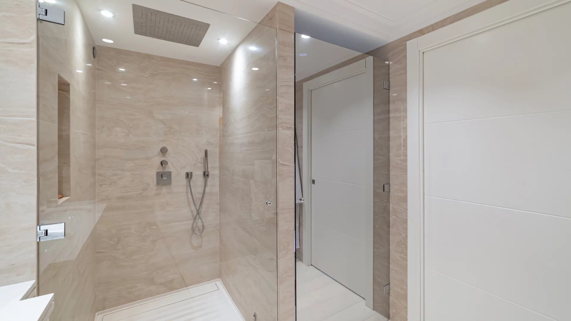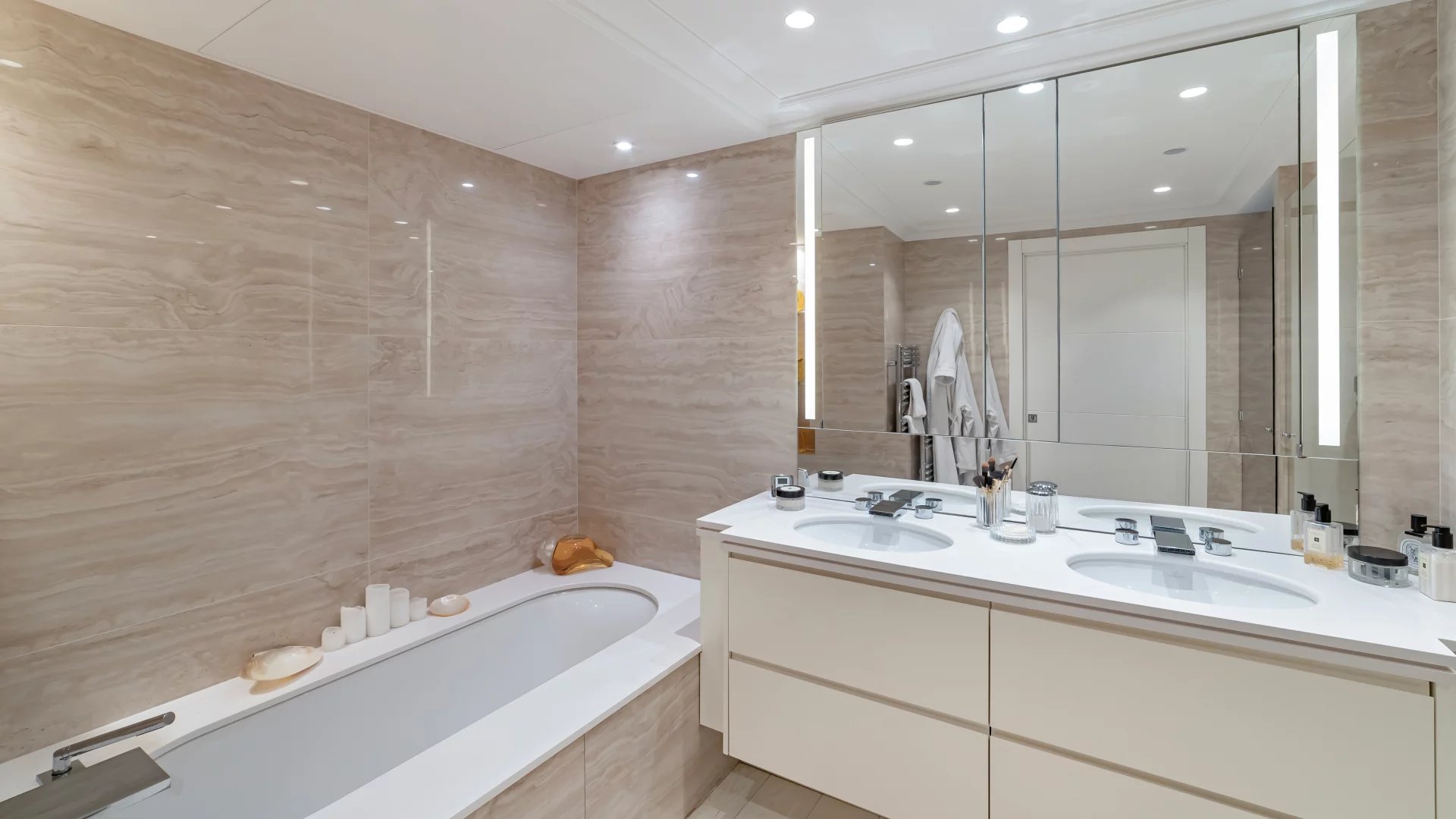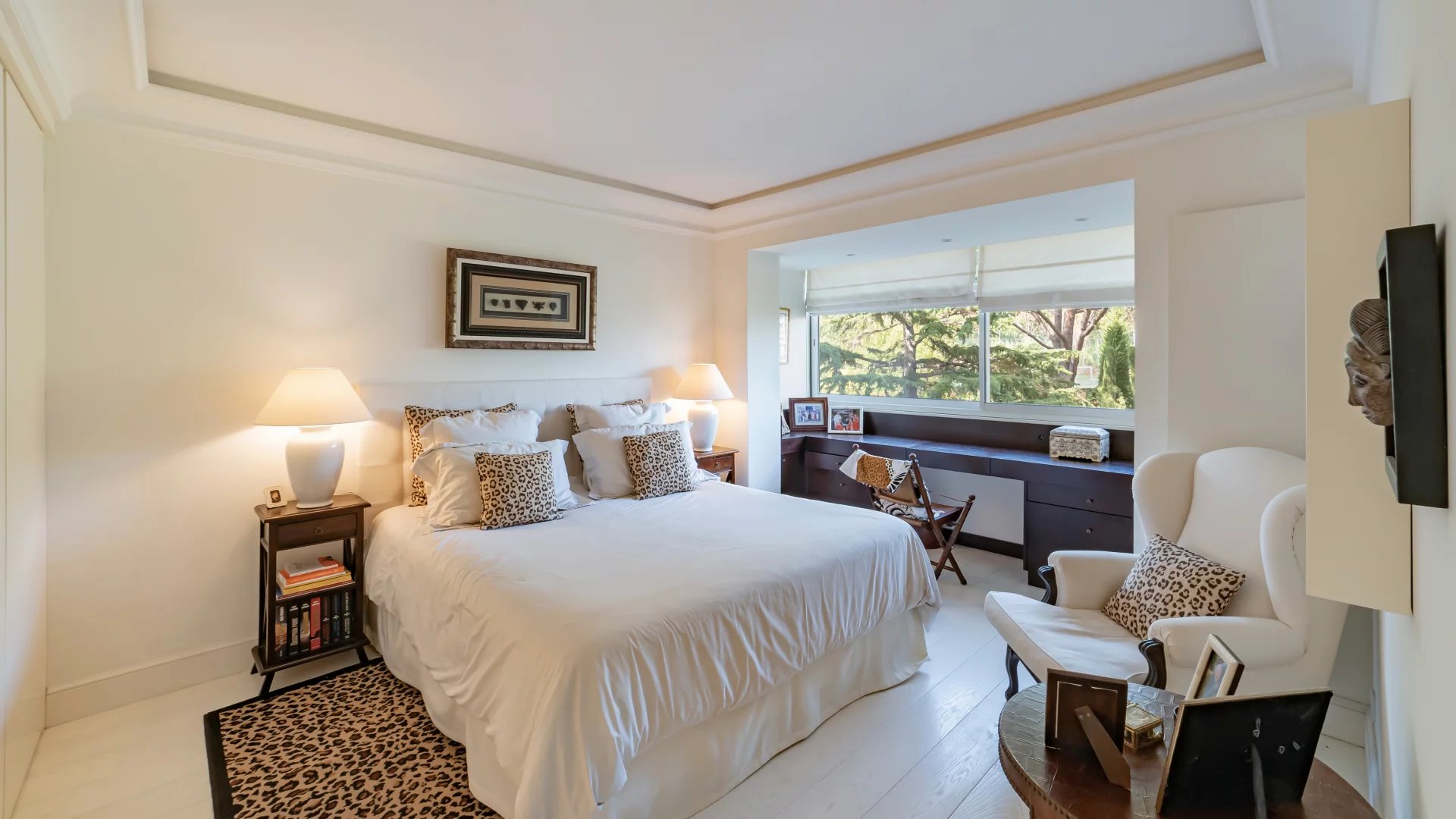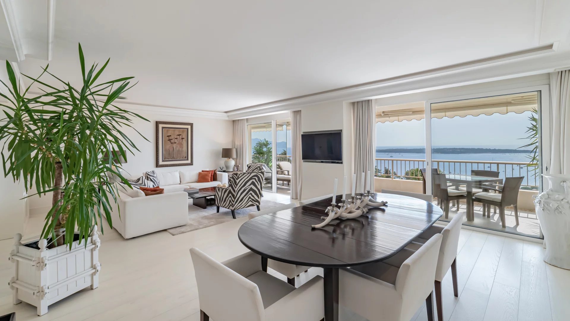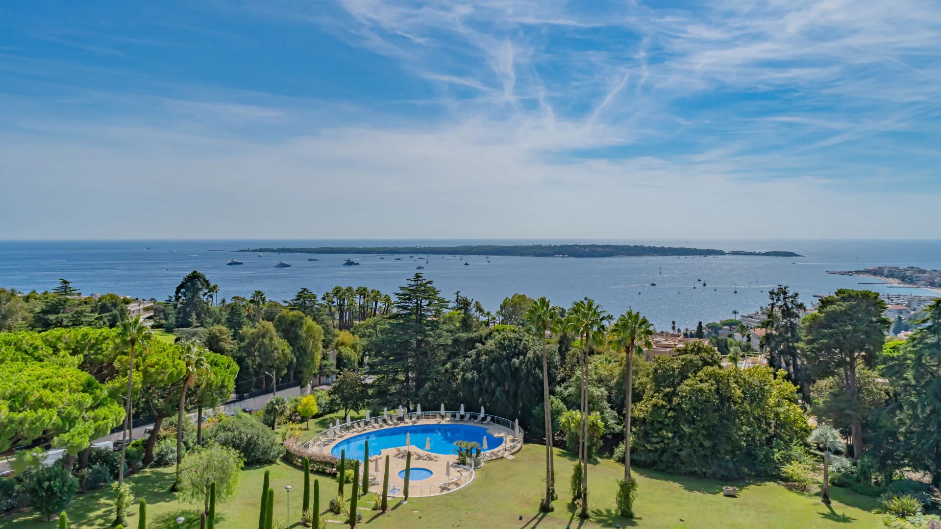 In one of Cannes' finest residences, on a high floor, this magnificent apartment boasts an enchanting sea view and offers 110 m² of living space (107.79 m² loi Carrez). It features top-of-the-range fittings and refined decoration. Comprising: entrance hall, double living room with discreet open-plan kitchen, master bedroom with en suite bathroom and shower, second bedroom with en suite shower room, toilet, laundry room. Cellar and garage in basement. Sumptuous enclosed grounds with swimming pool and tennis court. Enclosed communal parking. 24-hour janitor.