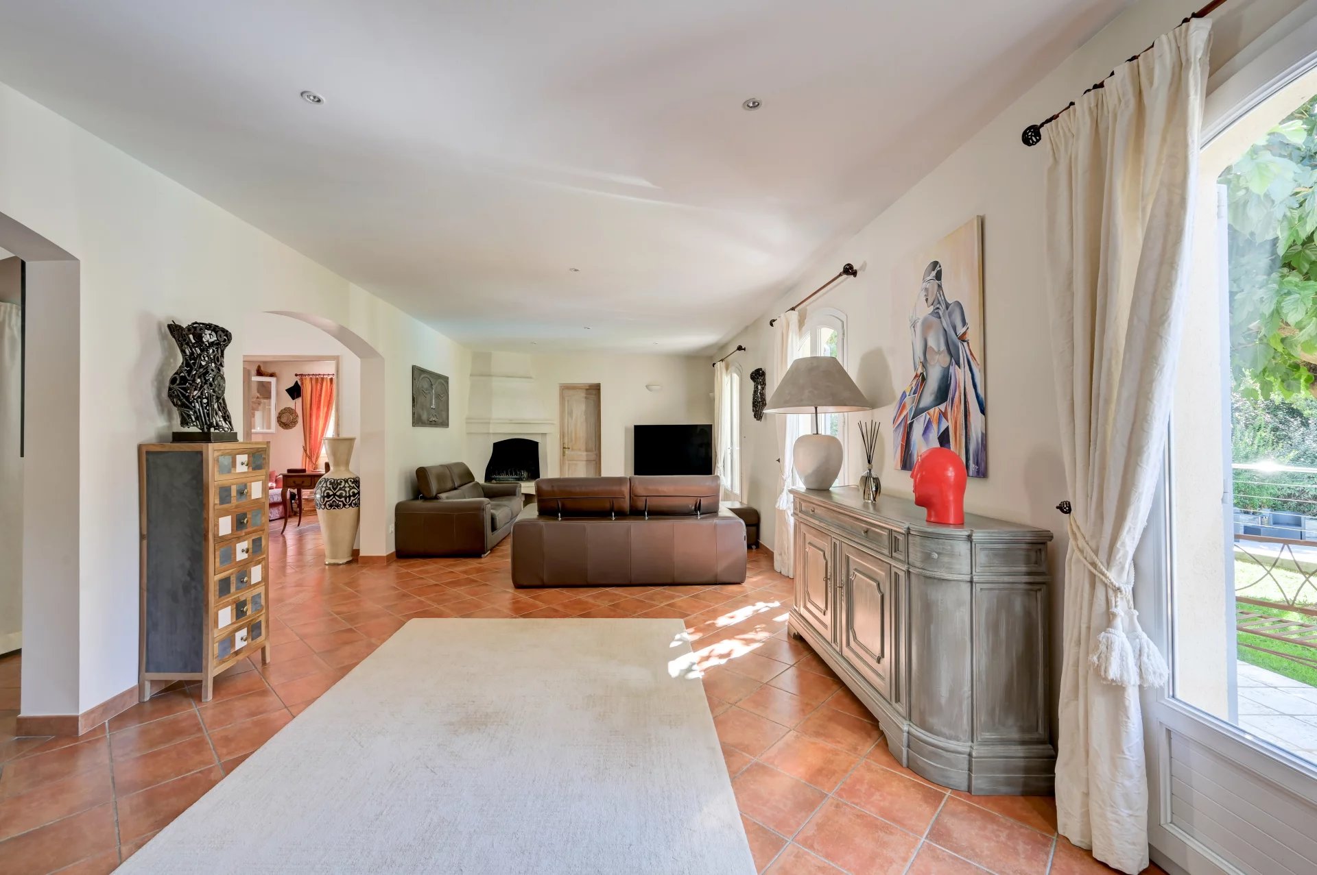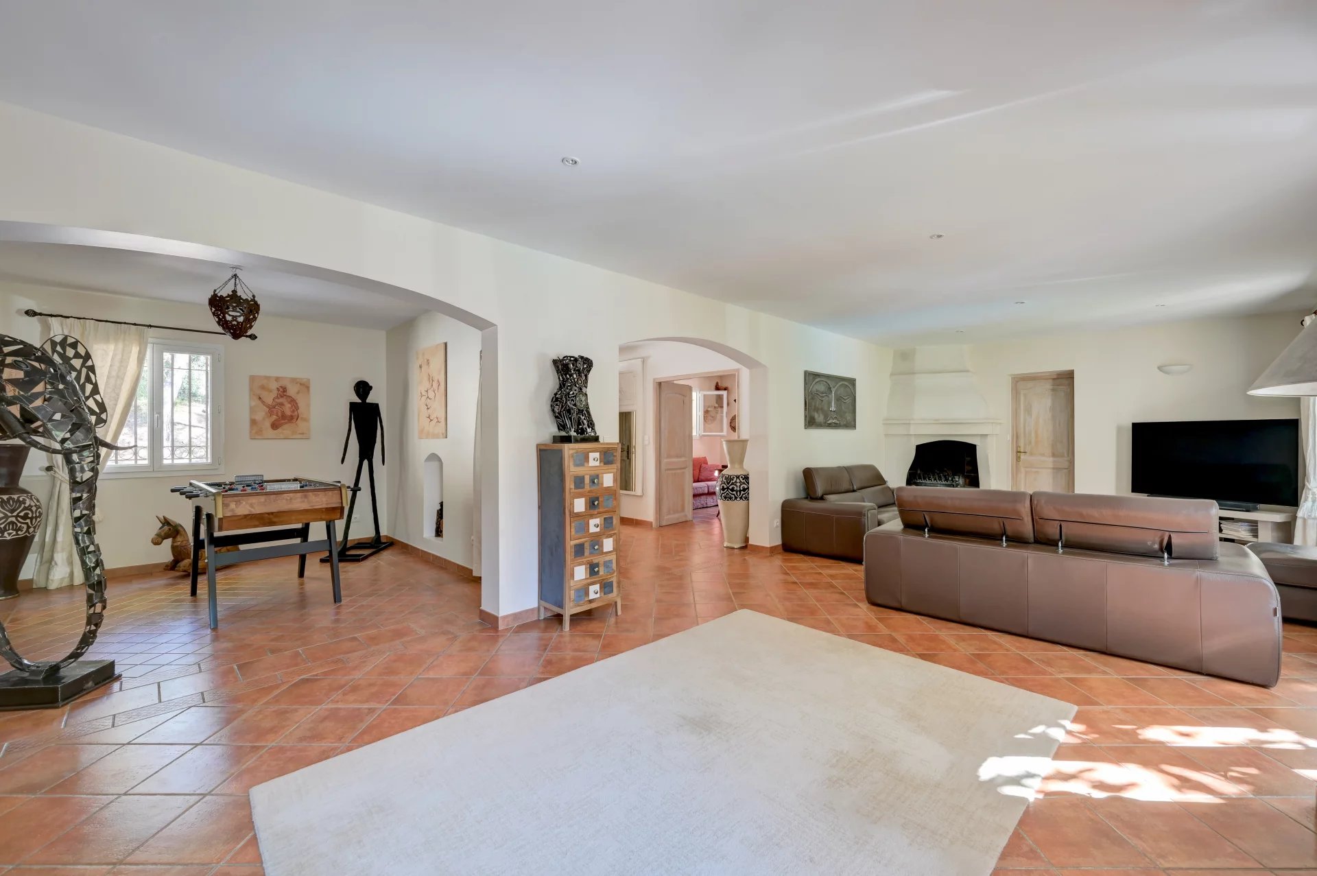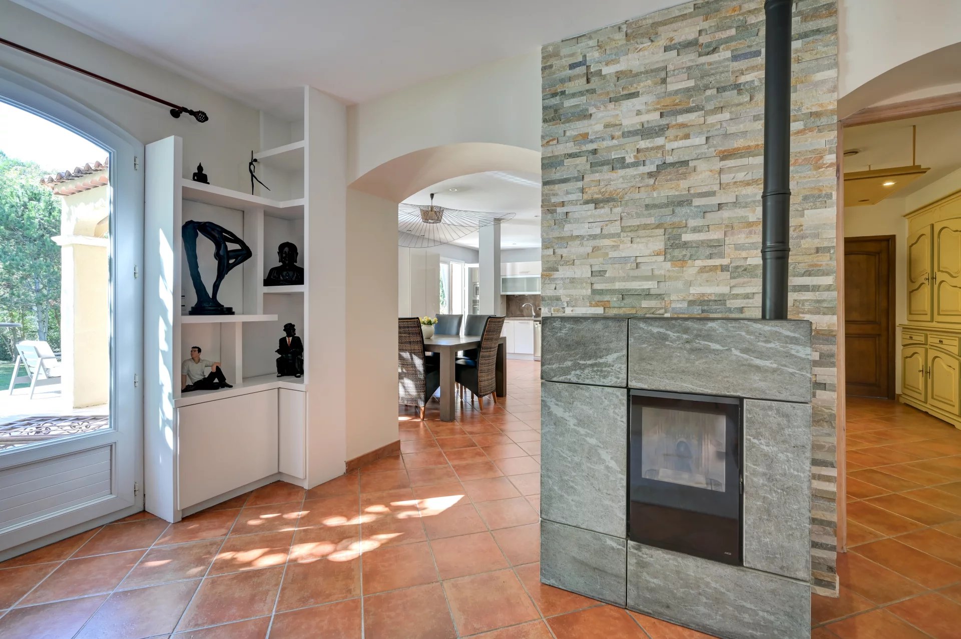 The main house features generous volumes. On the first floor, a vast, light-filled living room opens onto a south-facing terrace and landscaped garden. The modern kitchen, extended by a laundry room and storeroom, is accompanied by an office and a ground-level suite, ideal for everyday comfort. Upstairs, a master suite with dressing room is complemented by two additional bedrooms sharing a bathroom.