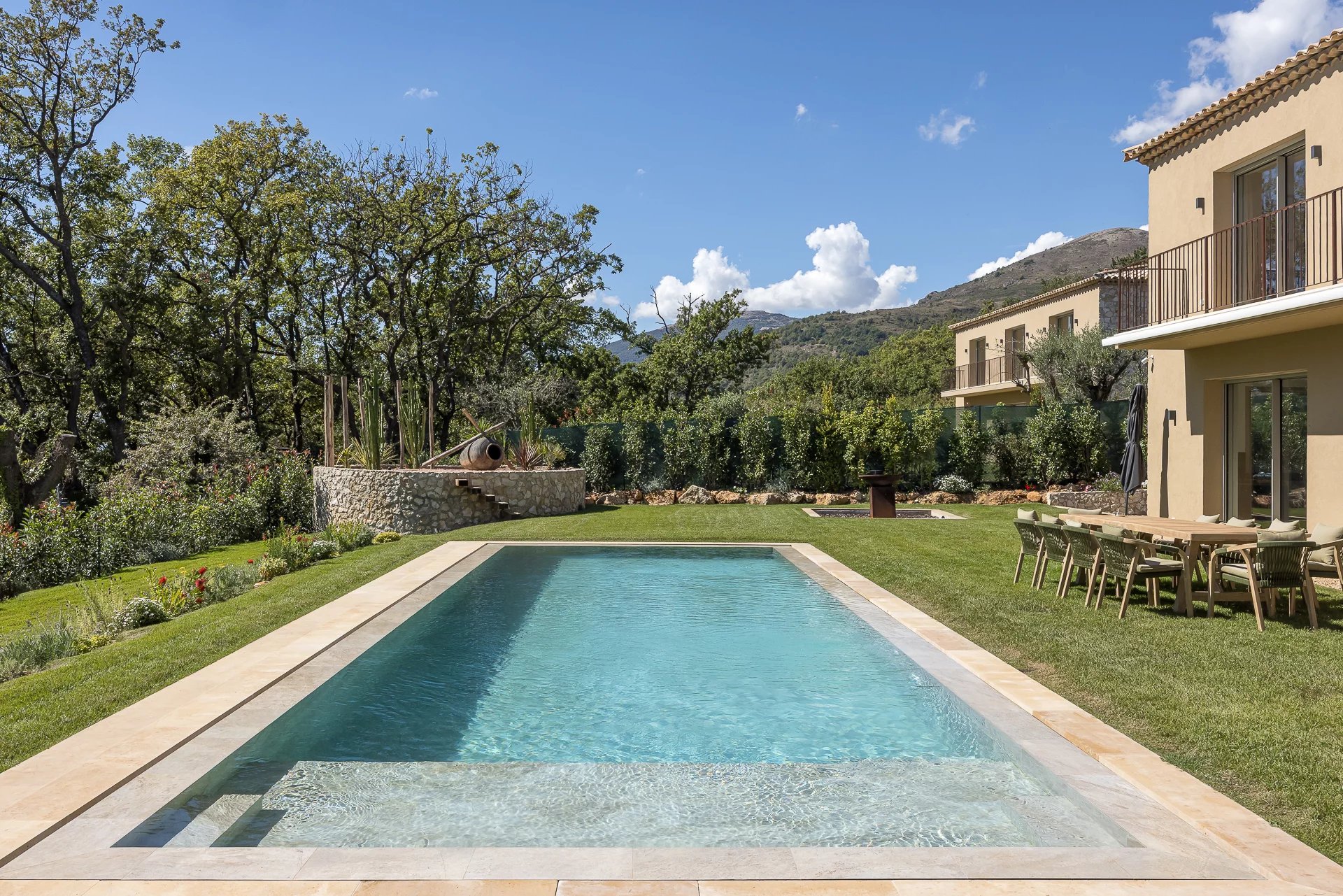 Nestled on the heights of Vence, this stunning new property combines Provençal charm with an idyllic lifestyle. Surrounded by centuries-old olive trees, it sits on a plot of approximately 1,213 m², facing south and bathed in sunlight from morning to evening.