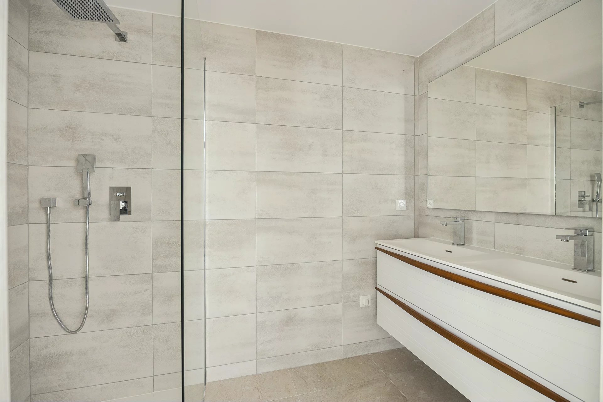 In the sought-after residential neighborhood of Dramont, just a few minutes' walk from all amenities, restaurants, beaches, and public transportation, in the heart of a new residence, this new 110 m² apartment is spread over two levels and comprises a large living/dining/kitchen area of approximately 40 m², opening onto a terrace of over 43 m² surrounding the apartment, extended by a garden of approximately 140 m² on both floors. On the first floor there is also a bedroom with its own bathroom and dressing room. On the garden level, there are 2 bedrooms, a dressing room and a separate shower room. A garage and cellar are also included.