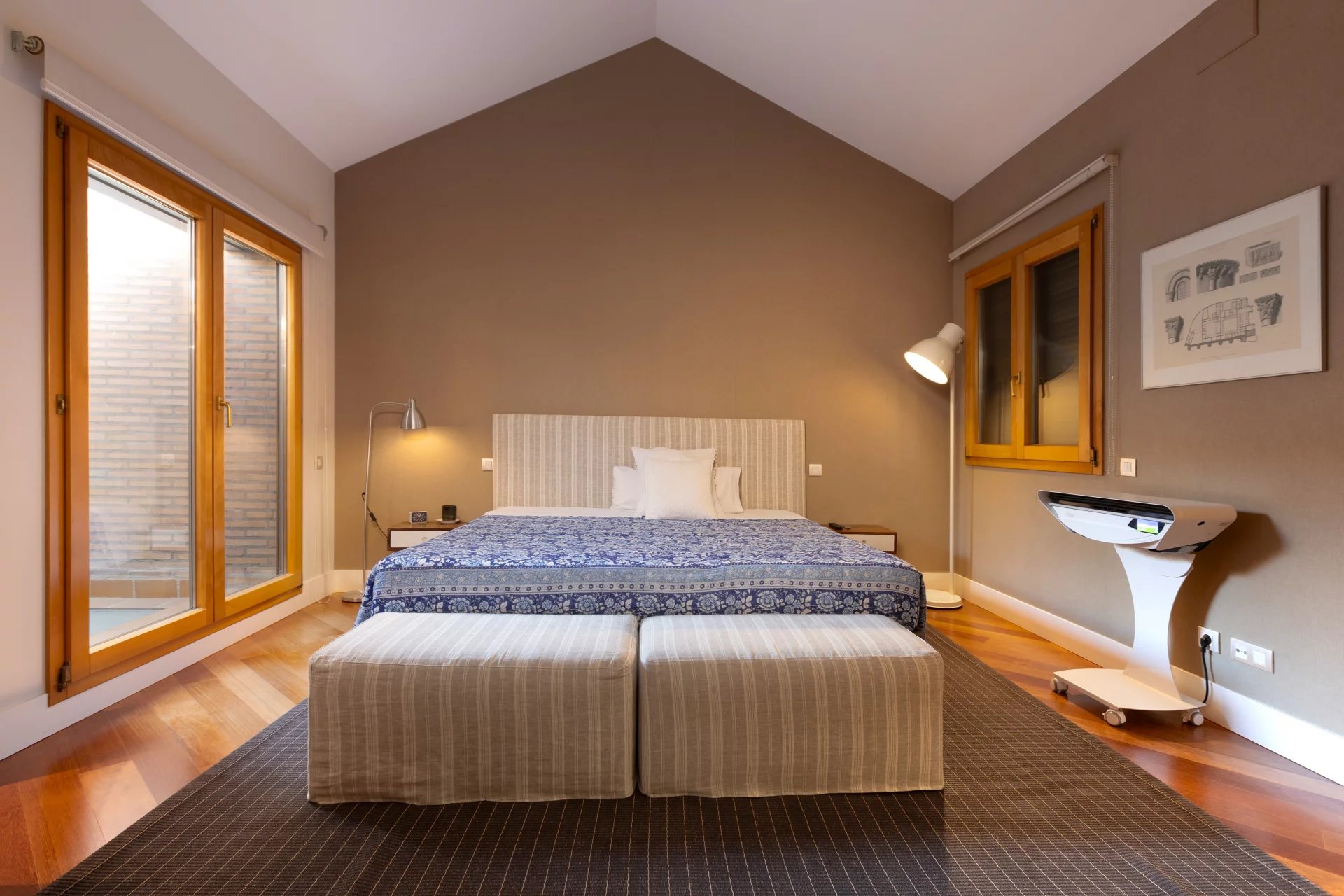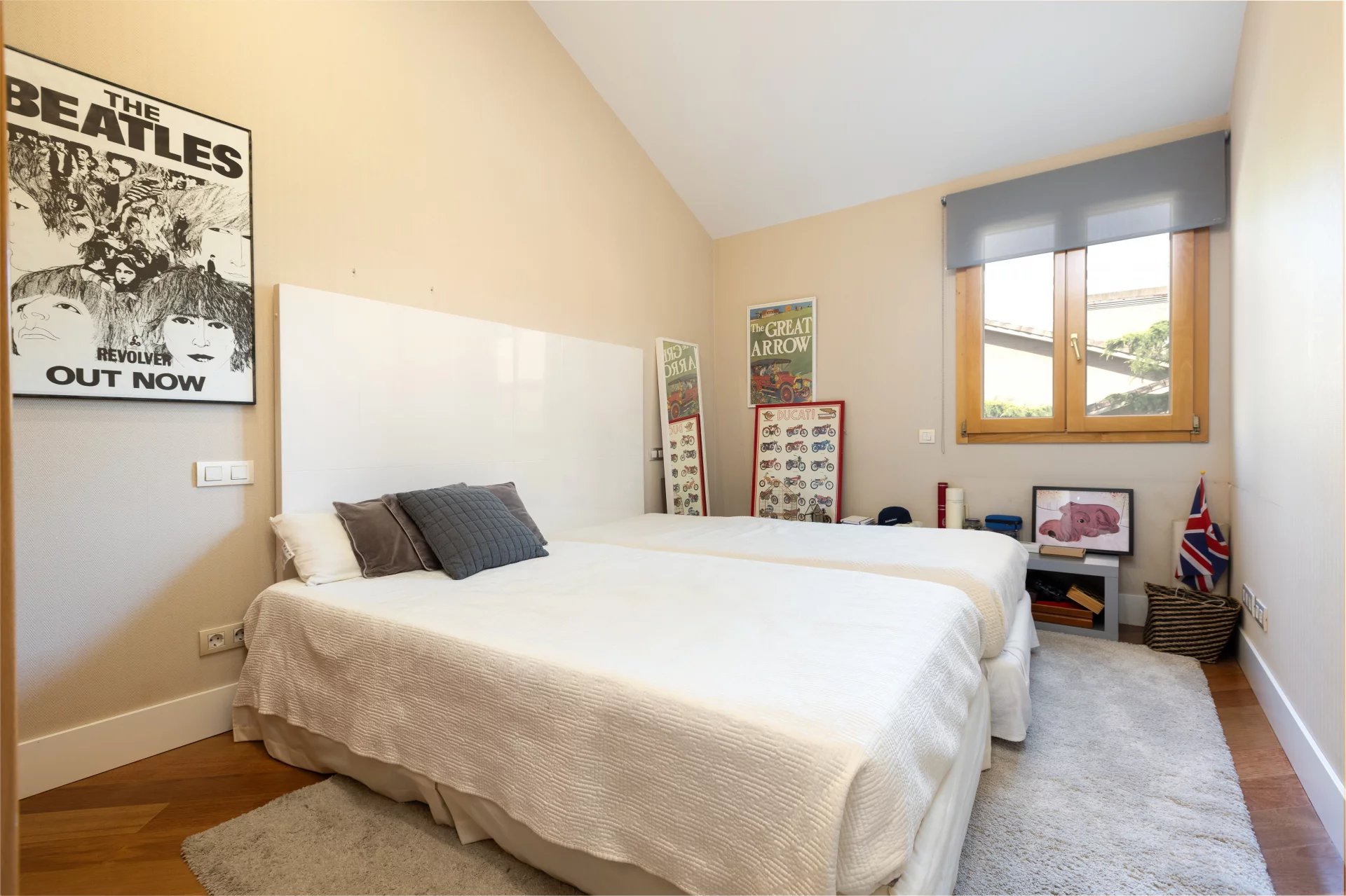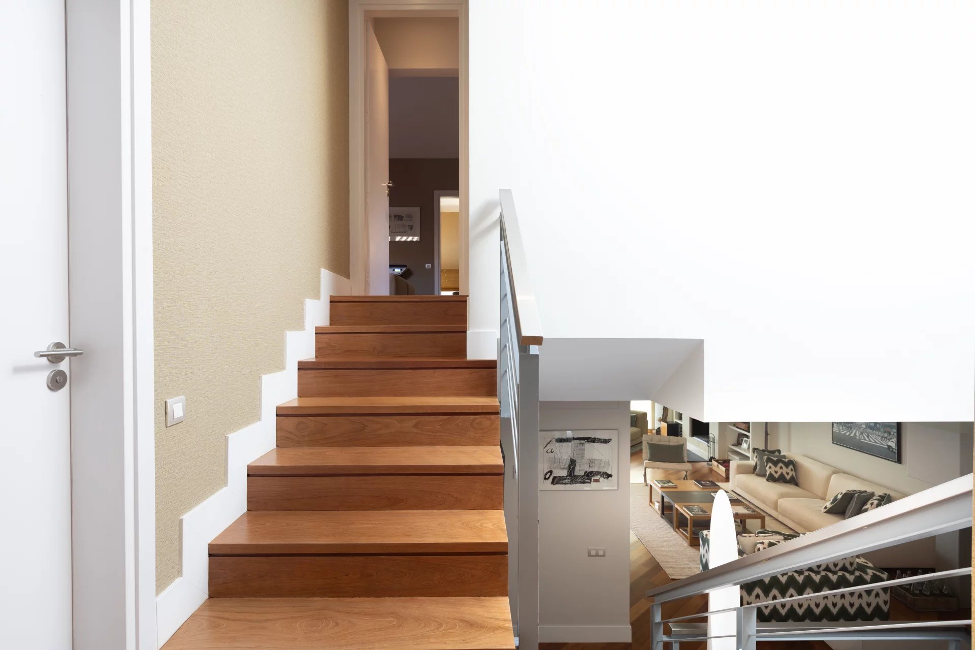 Upon entering the house we find a spacious hall with access to a large living room and office. Continuing upstairs we have a second bright living-dining room overlooking the pool and private garden; and a large kitchen. On the next floor we find three light-filled bedrooms and two bathrooms that serve them. And further up we reach the master bedroom, which has an en suite bathroom, dressing room adjoining it and balcony.