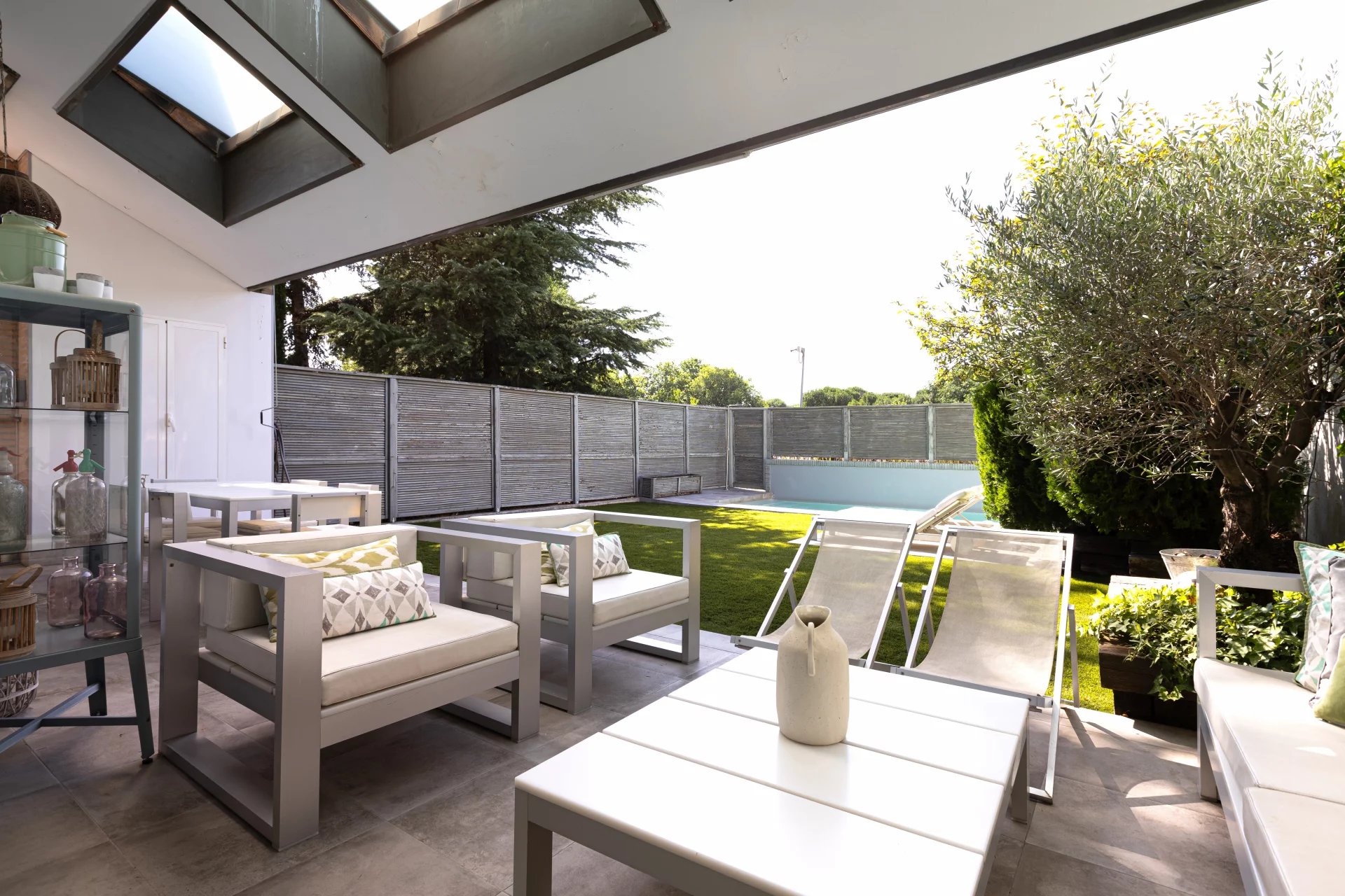The exterior of the house has a private swimming pool, lined to prevent water leaks and private garden with artificial turf of the highest quality. And as for common areas, we find large green spaces, leisure areas with "chill out" areas, paddle tennis courts and nice trails for walking.