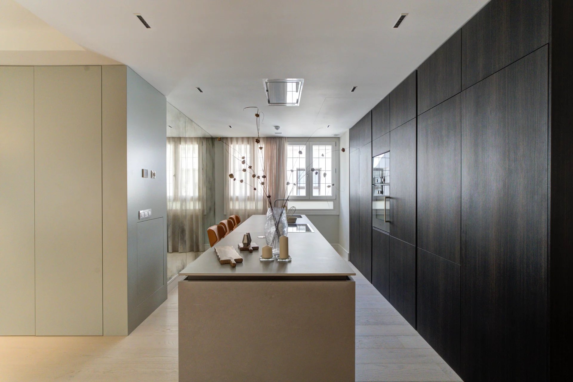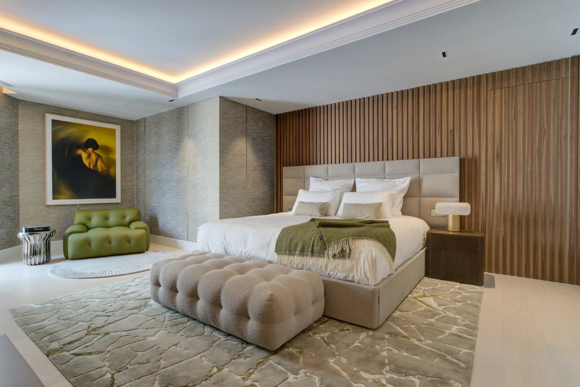 This impressive property particularly stands out for its spectacular 56 m² terrace, which dominates the social area and is bathed in sunlight thanks to its southern orientation. A terrace designed for maximum enjoyment, perfectly connected to the living and dining room. Next to it is the fully equipped kitchen, featuring a large central island and separate laundry area. This part of the home also includes a guest restroom.