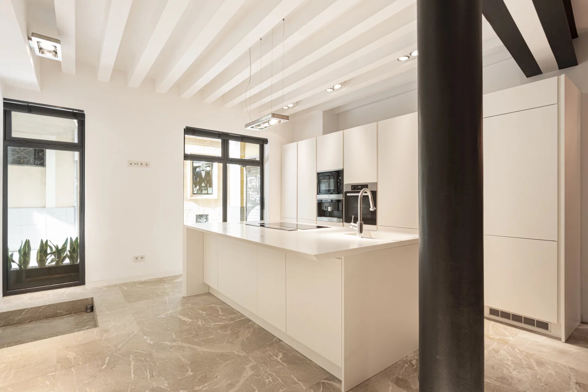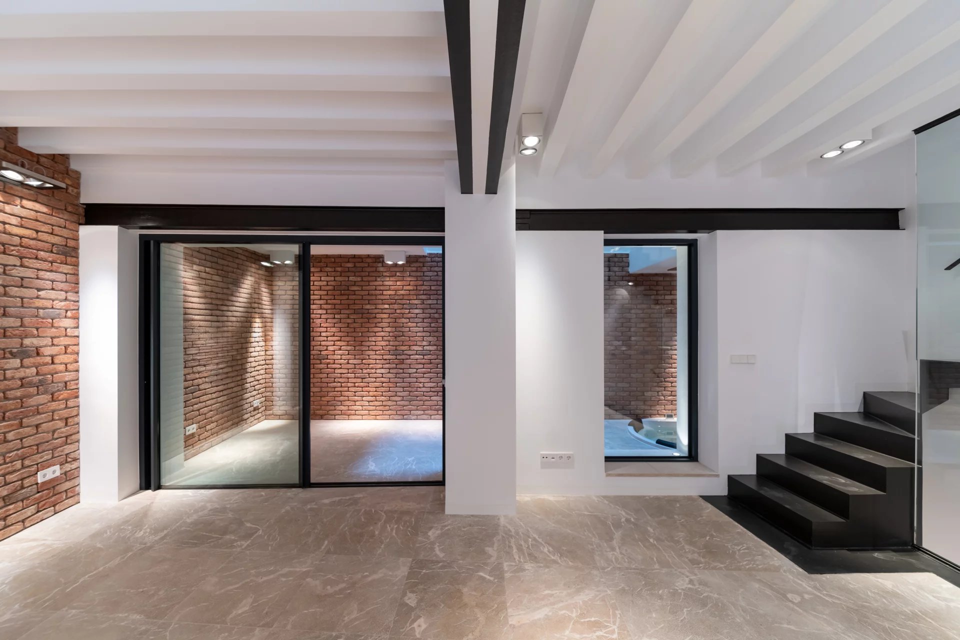 Step into the vibrant pulse of Palma with this high-end ground-floor duplex apartment, masterfully blending New York City industrial flair with Mallorcan heritage. Behind its historic façade lies a bold, stylish interior where exposed red brick walls, soaring spaces, and sleek design elements create an unmistakably urban vibe.