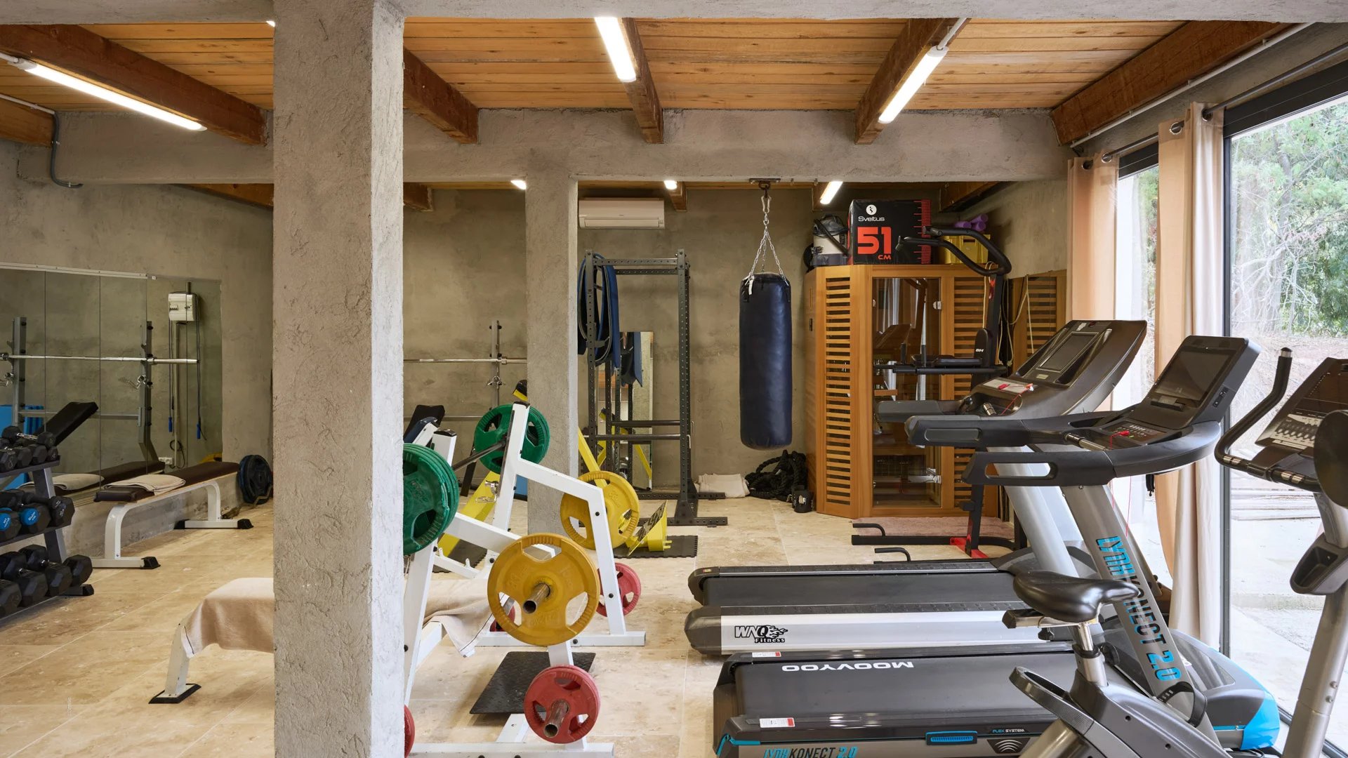 - A separate fitness room.