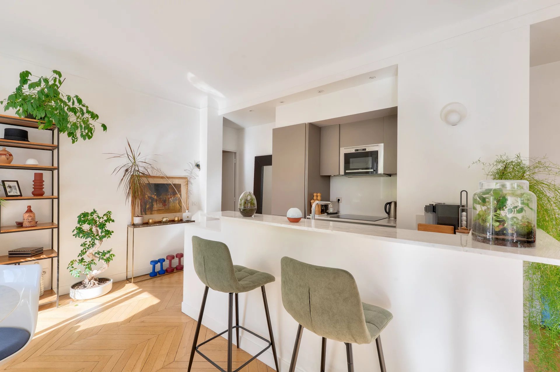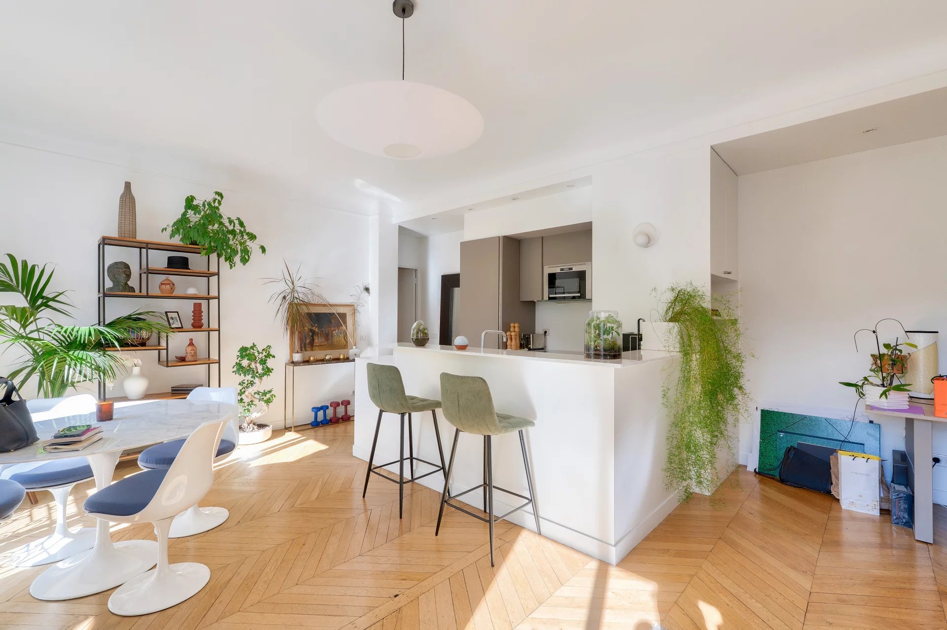 Just a few steps from Parc Monceau and Lycée Carnot, in a beautiful stone building with attractive common areas, on the third floor, four 82m² rooms.