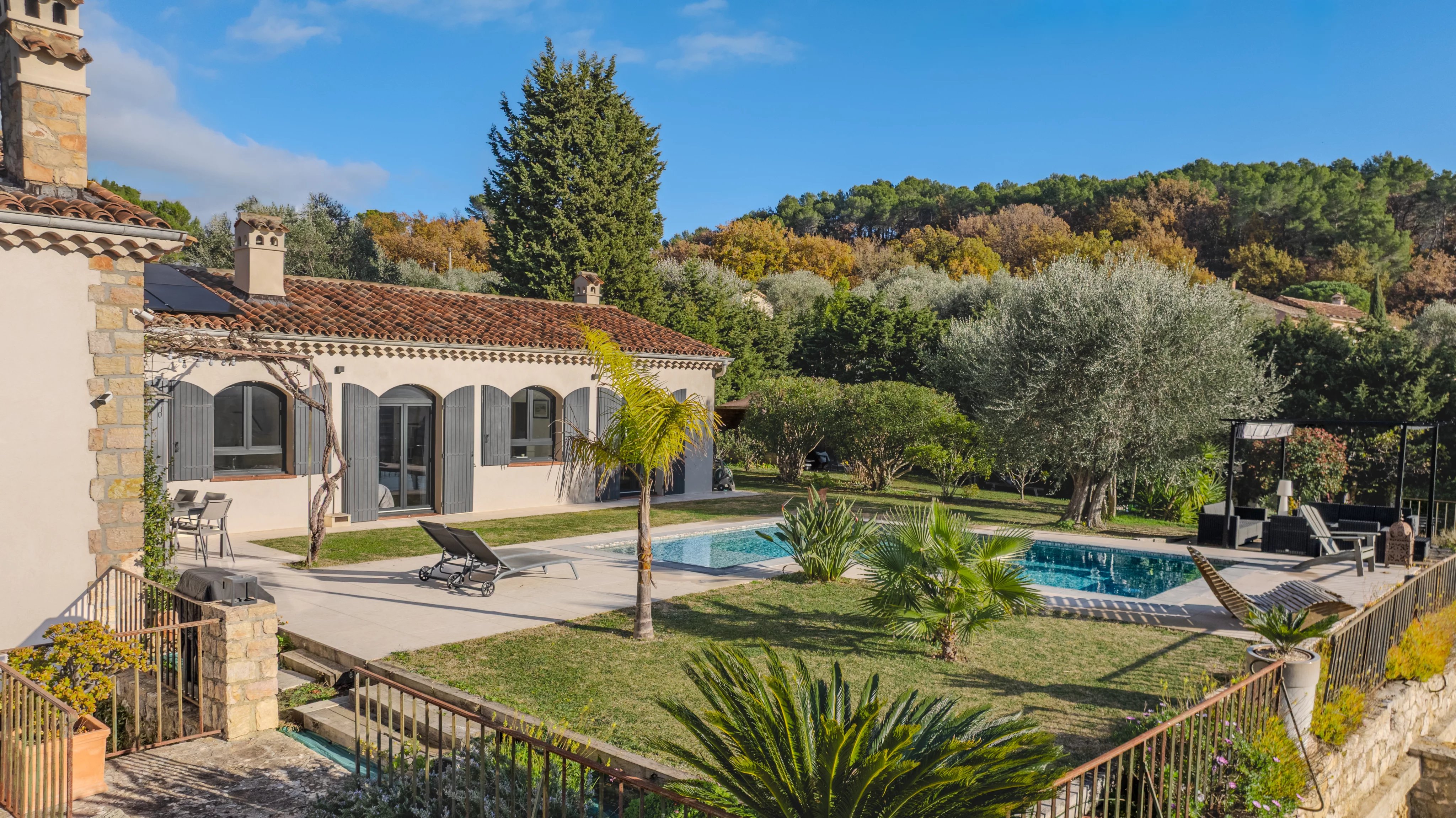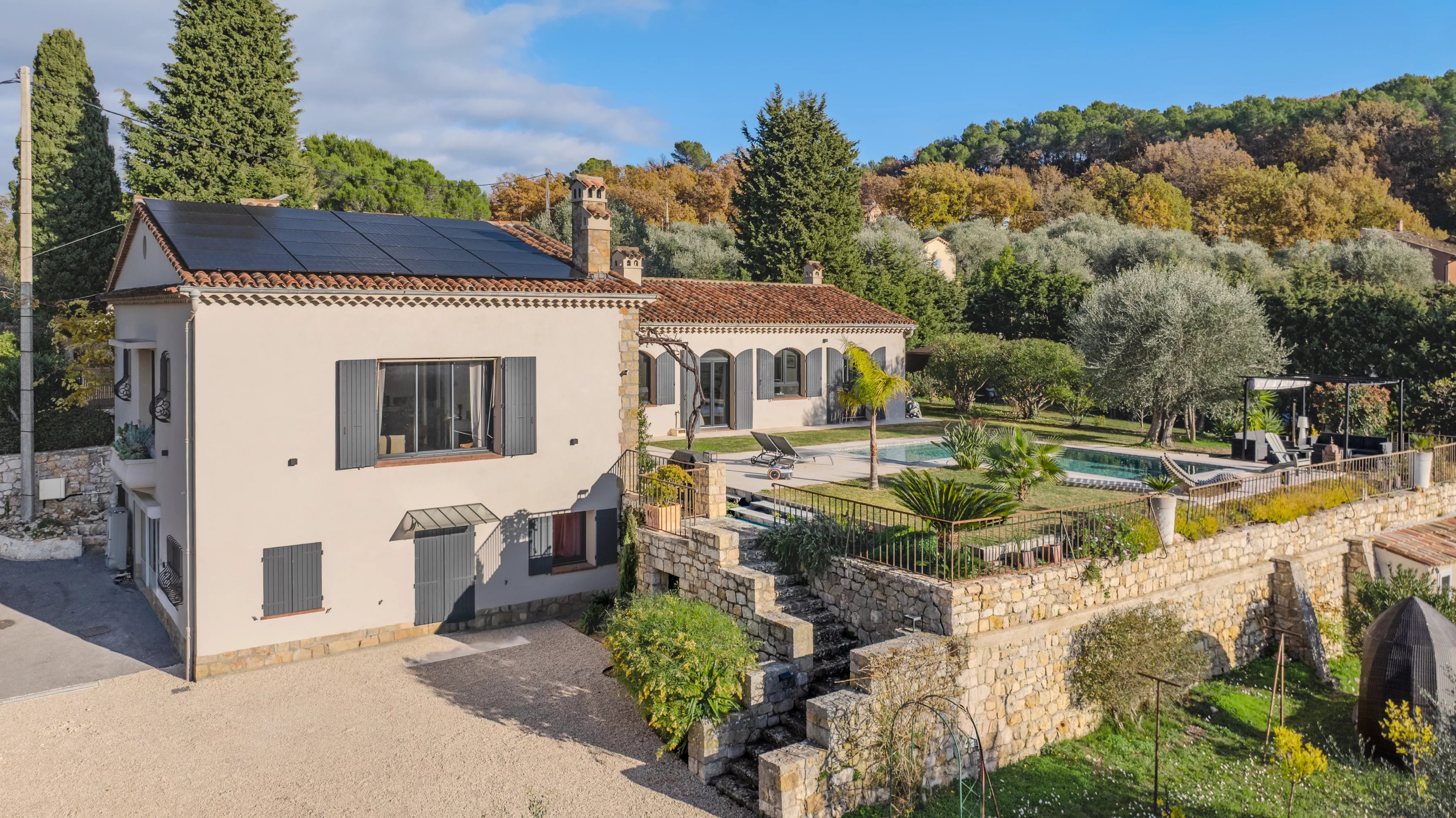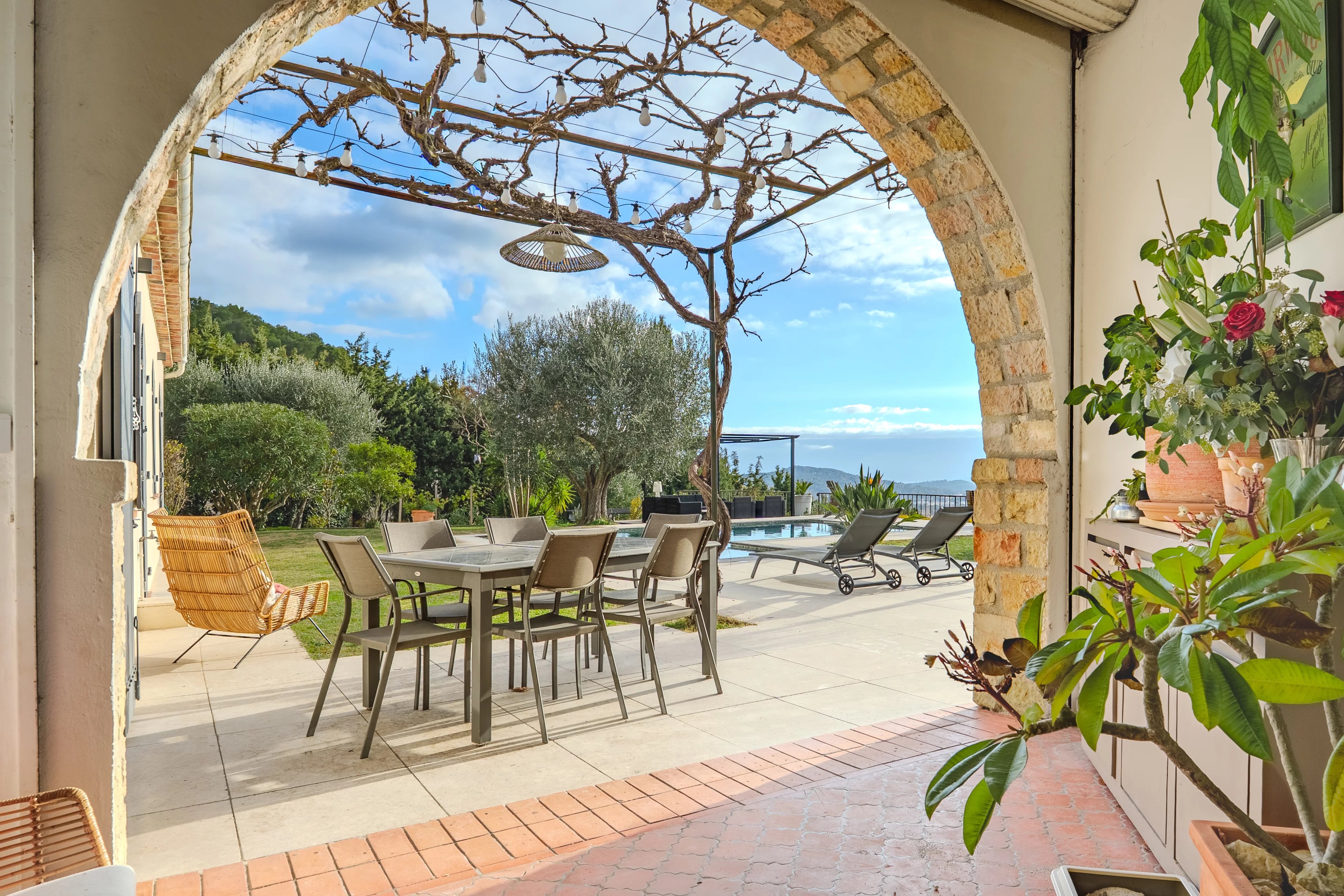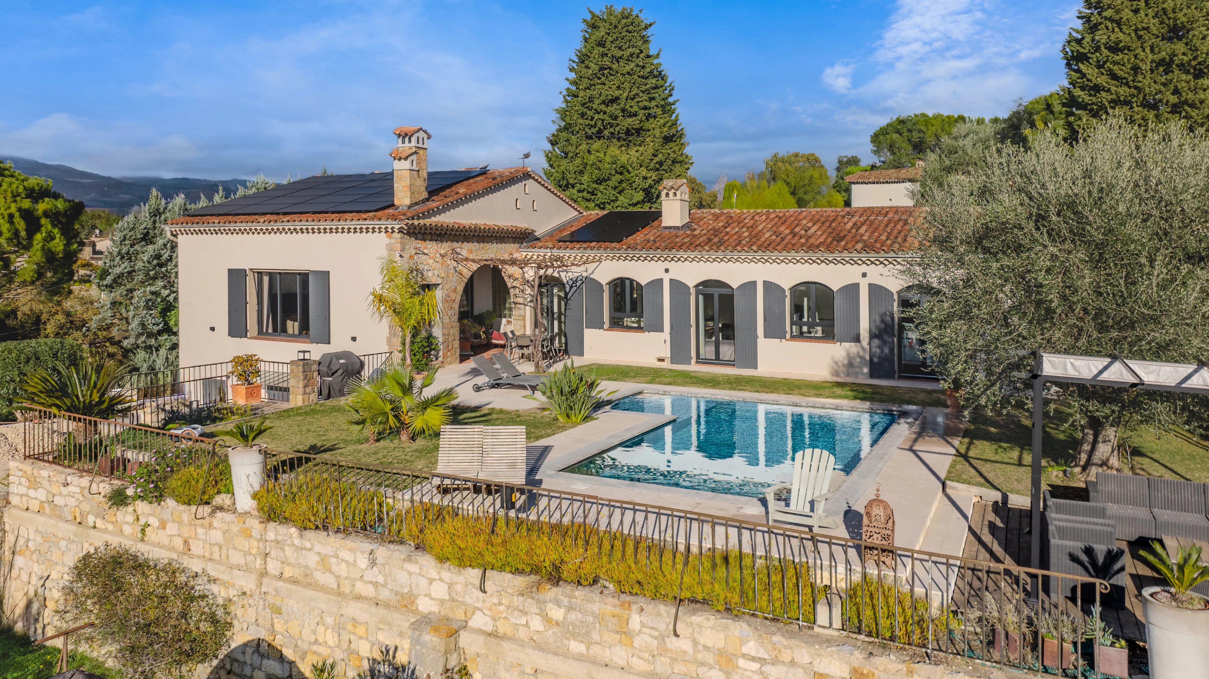 Just a few minutes from the village of Valbonne, this renovated 217m2 property with swimming pool and jacuzzi will seduce you with its spectacular panoramic views, from the bay of Cannes to the mountains of Grasse, all set in landscaped grounds of approx. 3500m2.