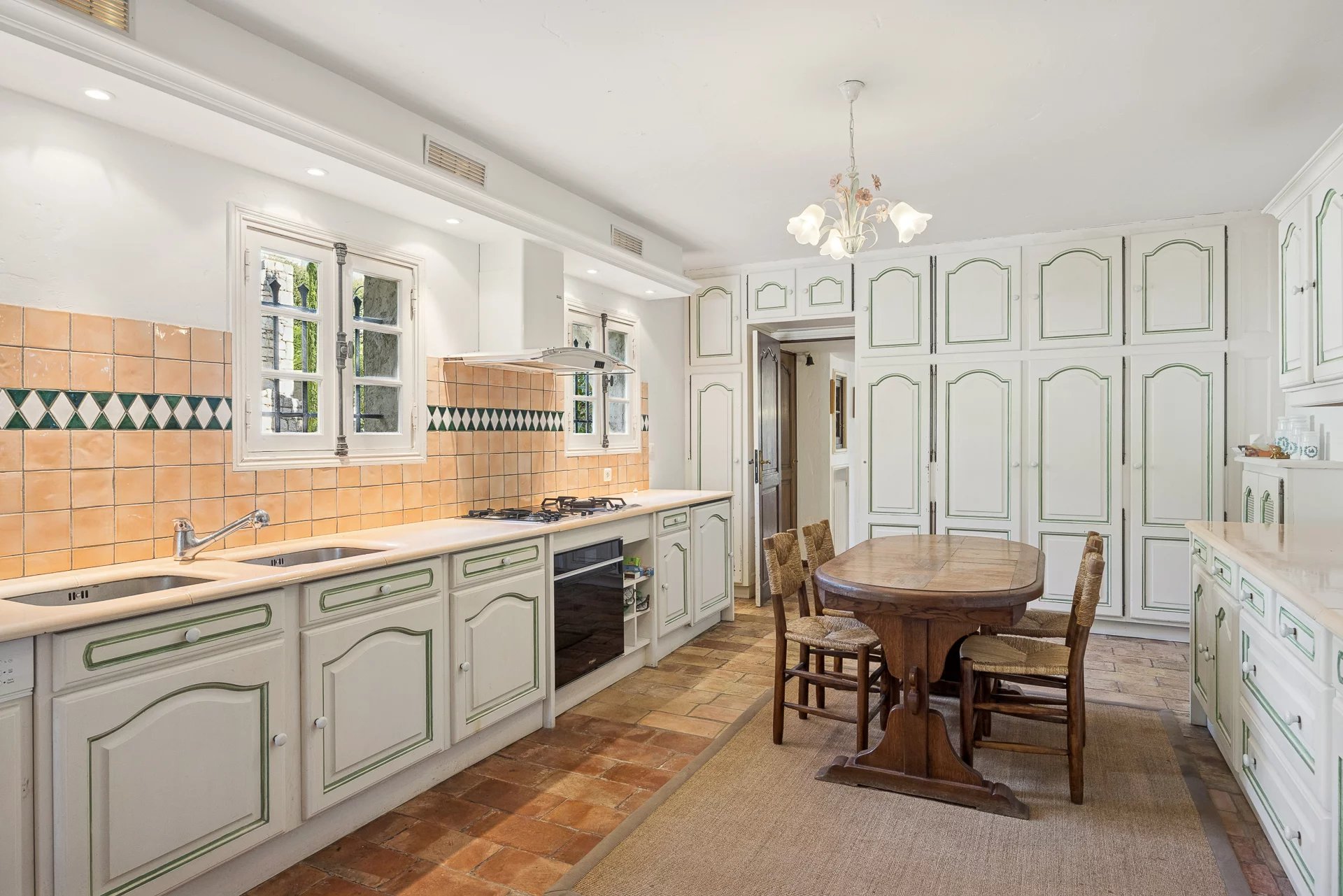 Situated in a dominant and peaceful position within the prestigious Hauts de Saint-Paul secured estate, this Provençal-style villa with a stone façade, designed by a renowned architect, offers breathtaking panoramic sea views extending to the Cap d’Antibes.