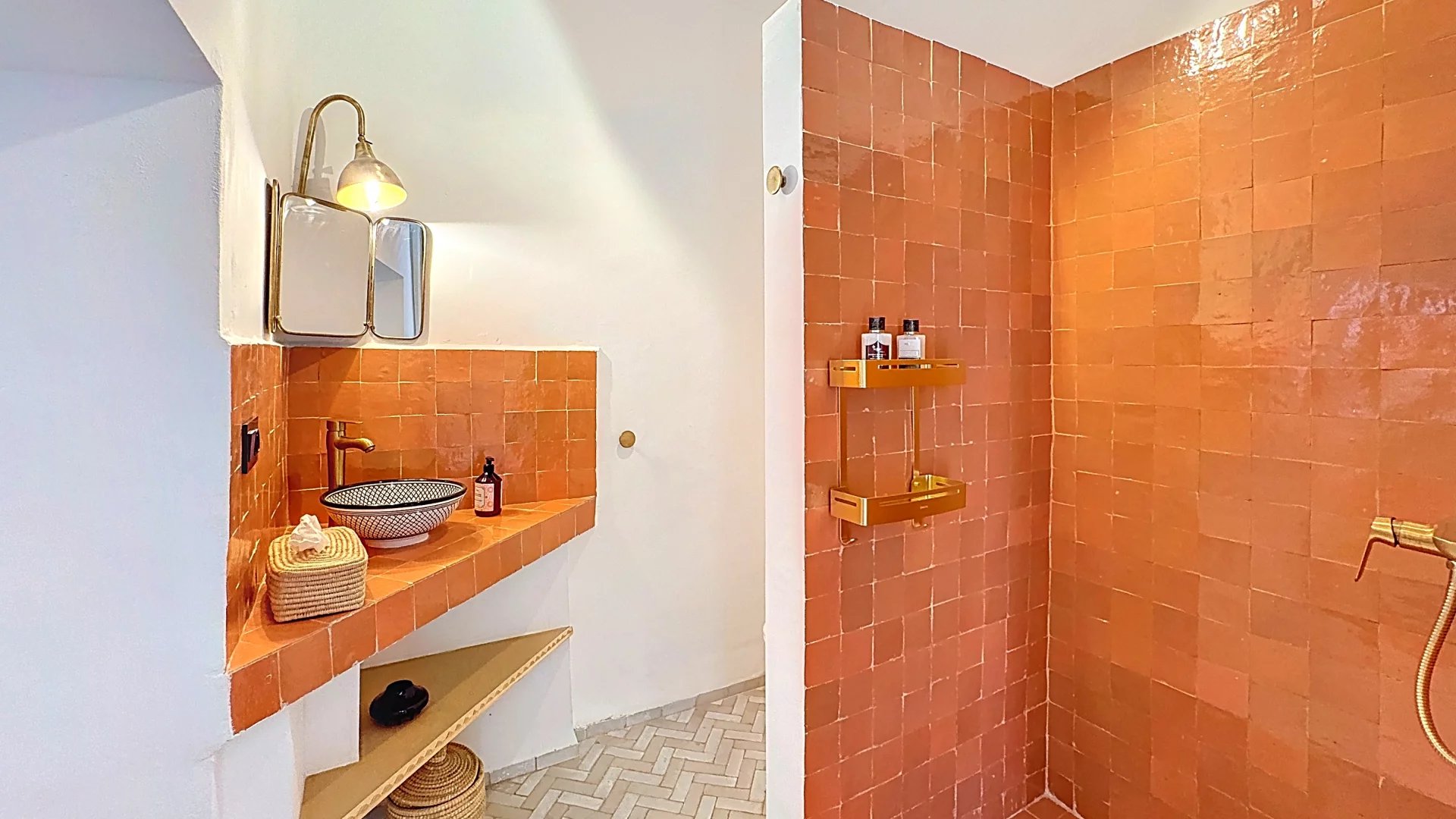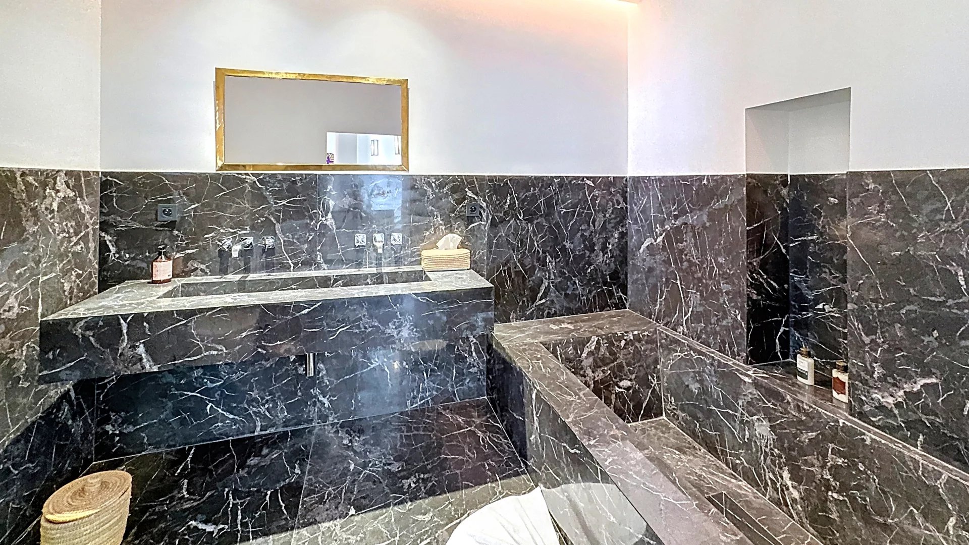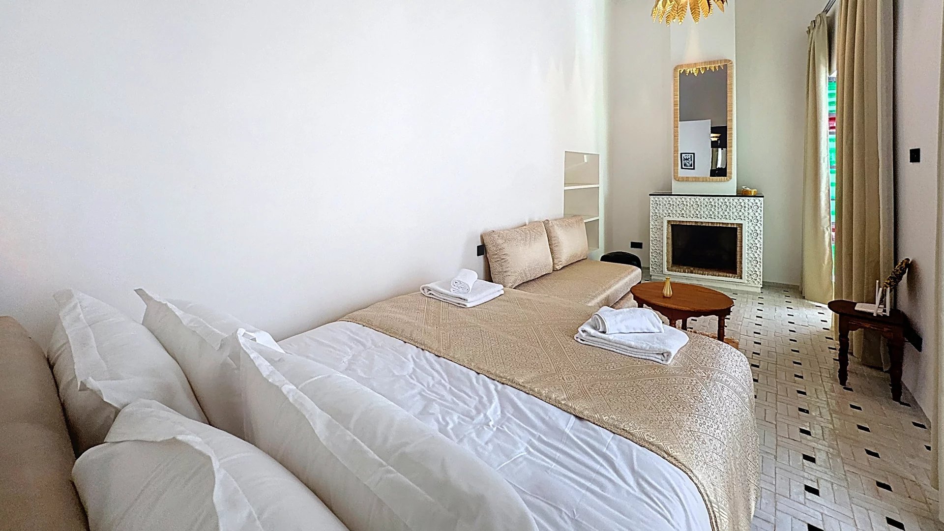 - Handcrafted Moroccan finishes: hand-worked moldings, noble materials, warm colors