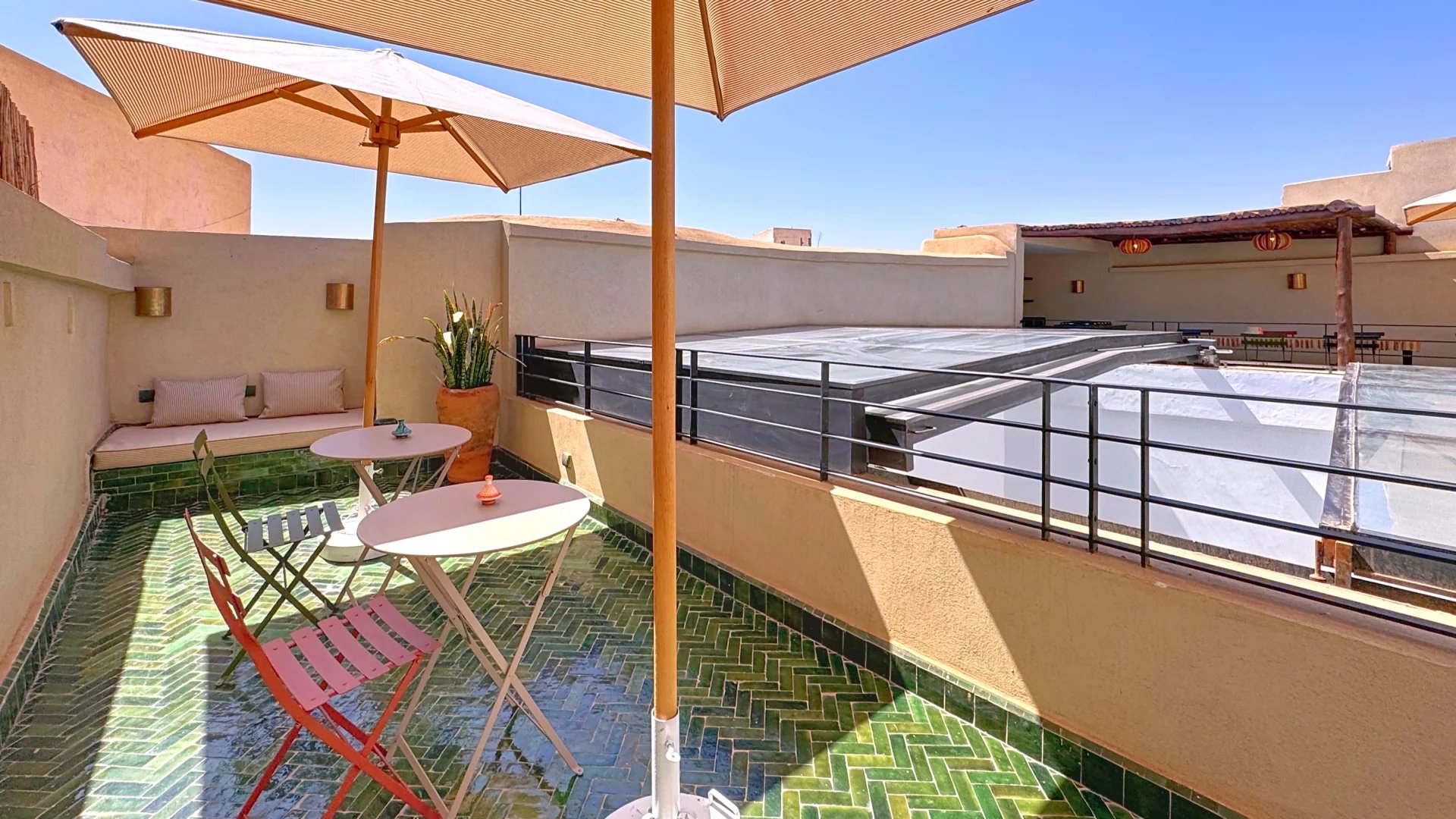 This 4-bedroom riad is licensed as a guest house, a rare asset on the market: it can be rented by the room.