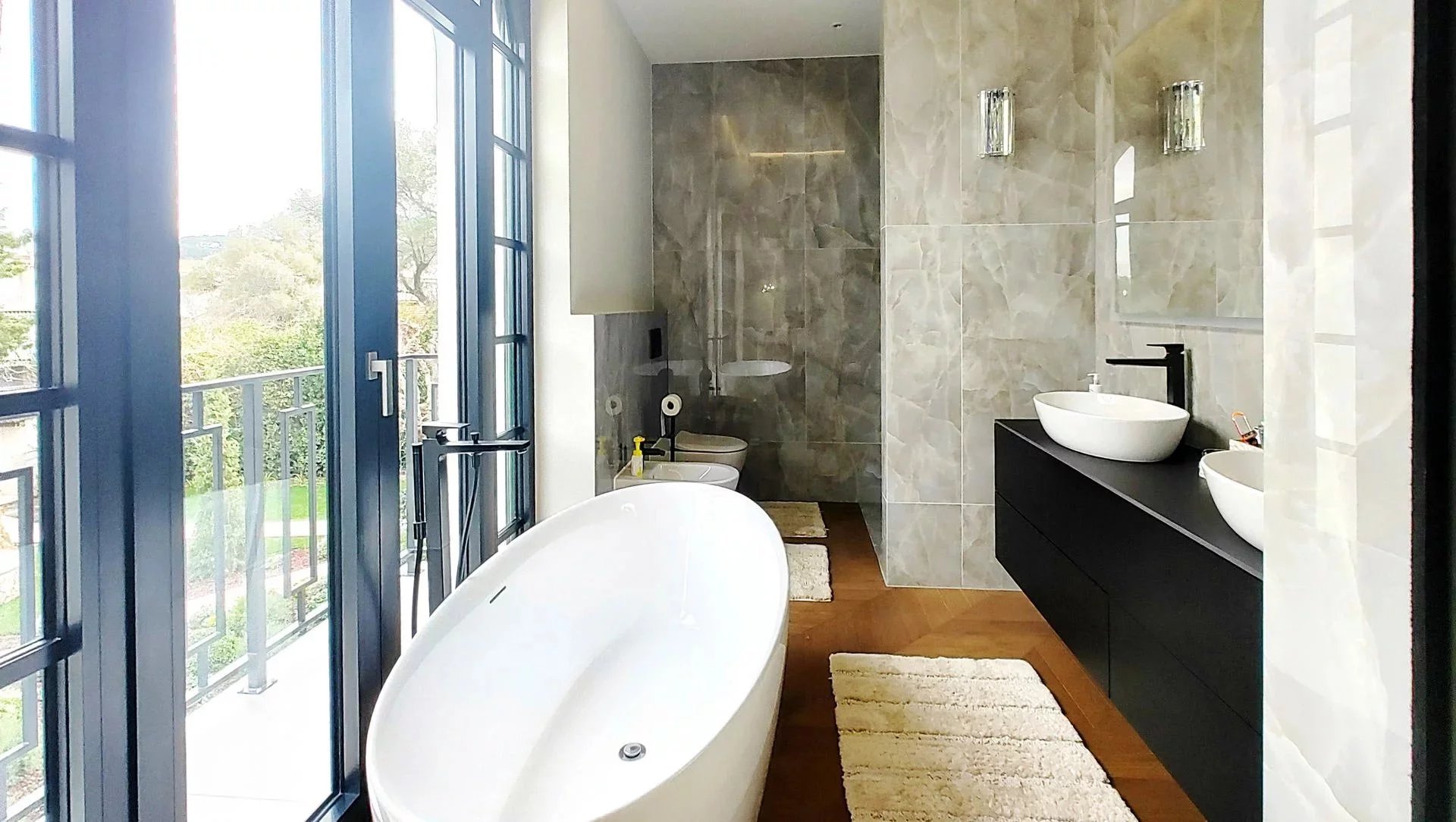 This exquisite villa is centrally located in Cap Antibes, equidistant from the charming Old Town of Antibes and the vibrant Juan-les-Pins. The property boasts an early 20th-century architectural style and offers a generous living space of approximately 300 m². It features a spacious living room and dining area, 5 bedrooms, and 5 bathrooms, ensuring ample space and privacy for residents and guests. The villa is surrounded by a beautiful garden spanning approximately 2,250 m², featuring a large heated swimming pool that adds to the property's luxury. Additional amenities include air conditioning, parking space for 3 cars, a garage, smart home technology, and an alarm system with ADSL/WiFi line for modern connectivity and security. Nice Airport is just a 30-minute drive away, offering convenient access for international travelers. For more information on this luxurious offering, please inquire.