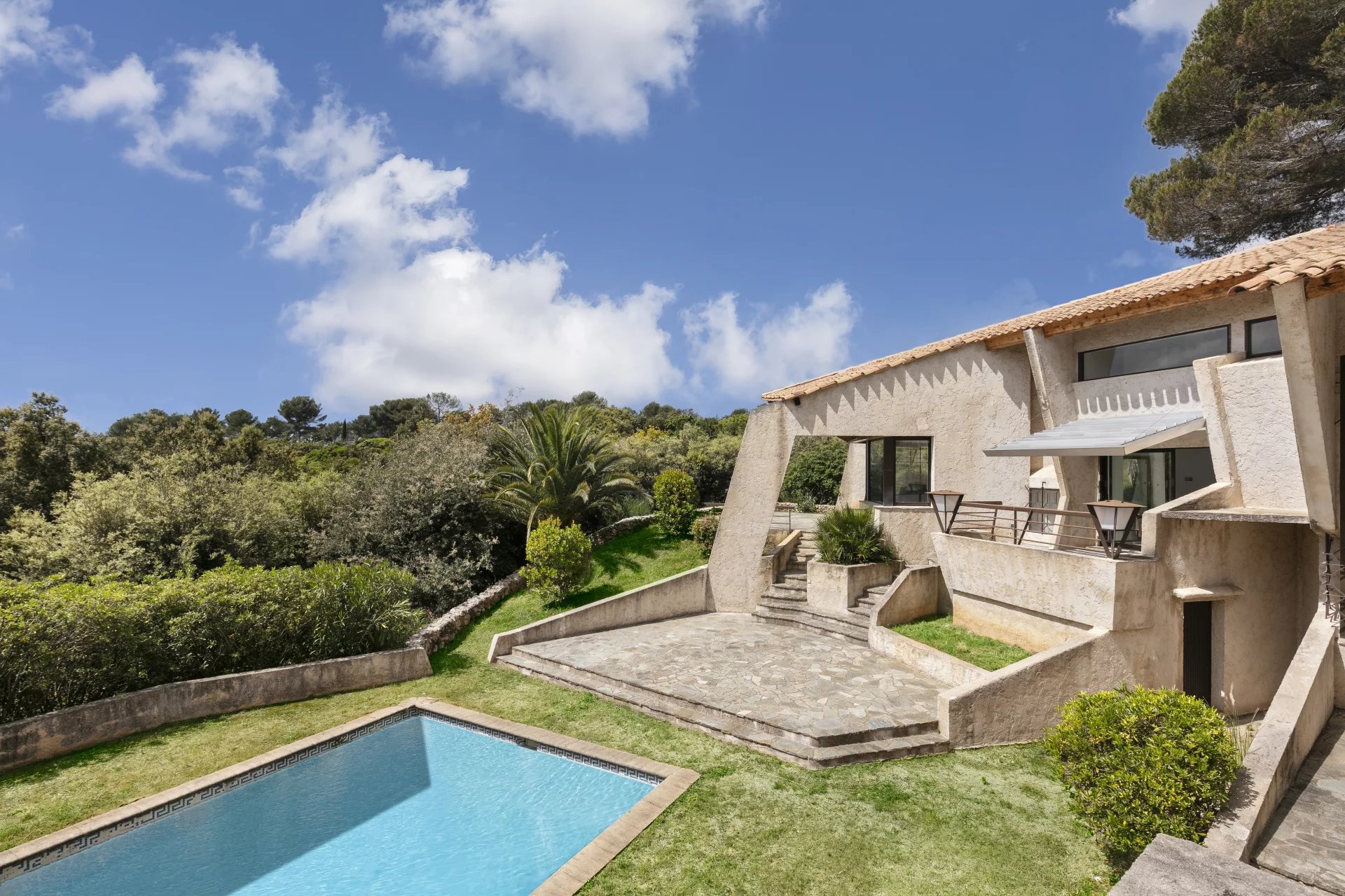 The landscaped garden, largely kept in its natural state, ensures total privacy and is complemented by several terraces ideal for relaxation. An outdoor swimming pool adds to the property’s appeal. A recently built covered garage can accommodate up to four vehicles.