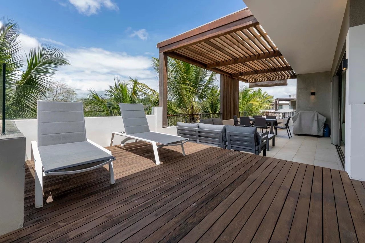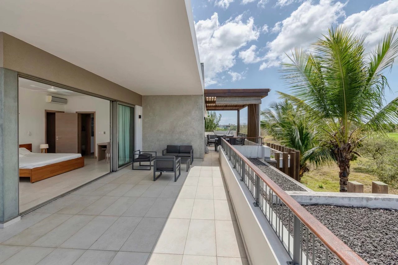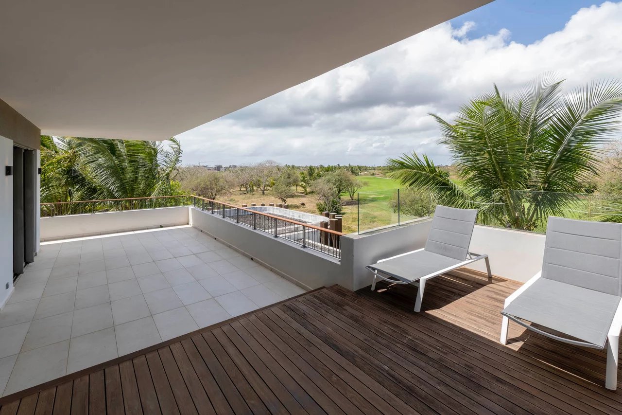 Discover this stunning contemporary penthouse ideally located in the prestigious Parc de Mont Choisy, just steps away from amenities and the beach.
