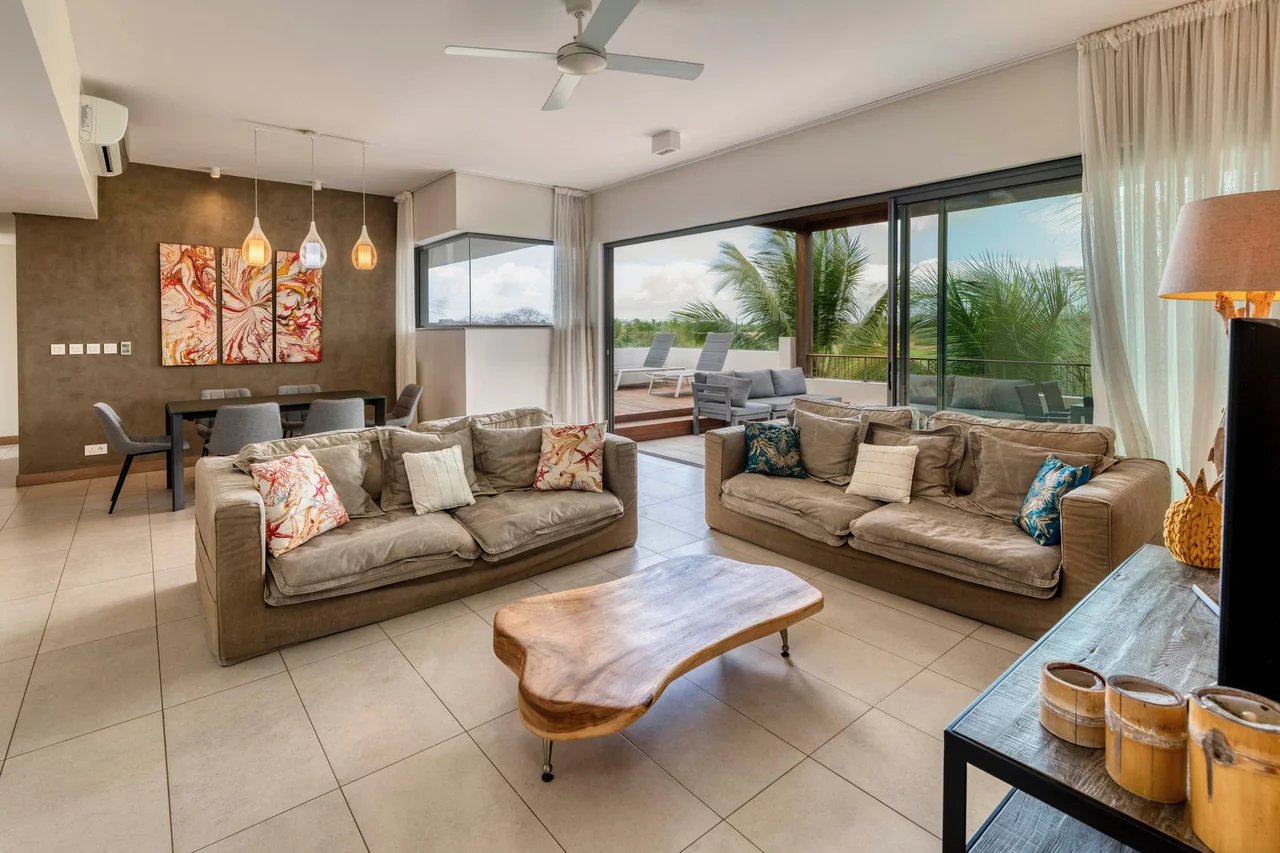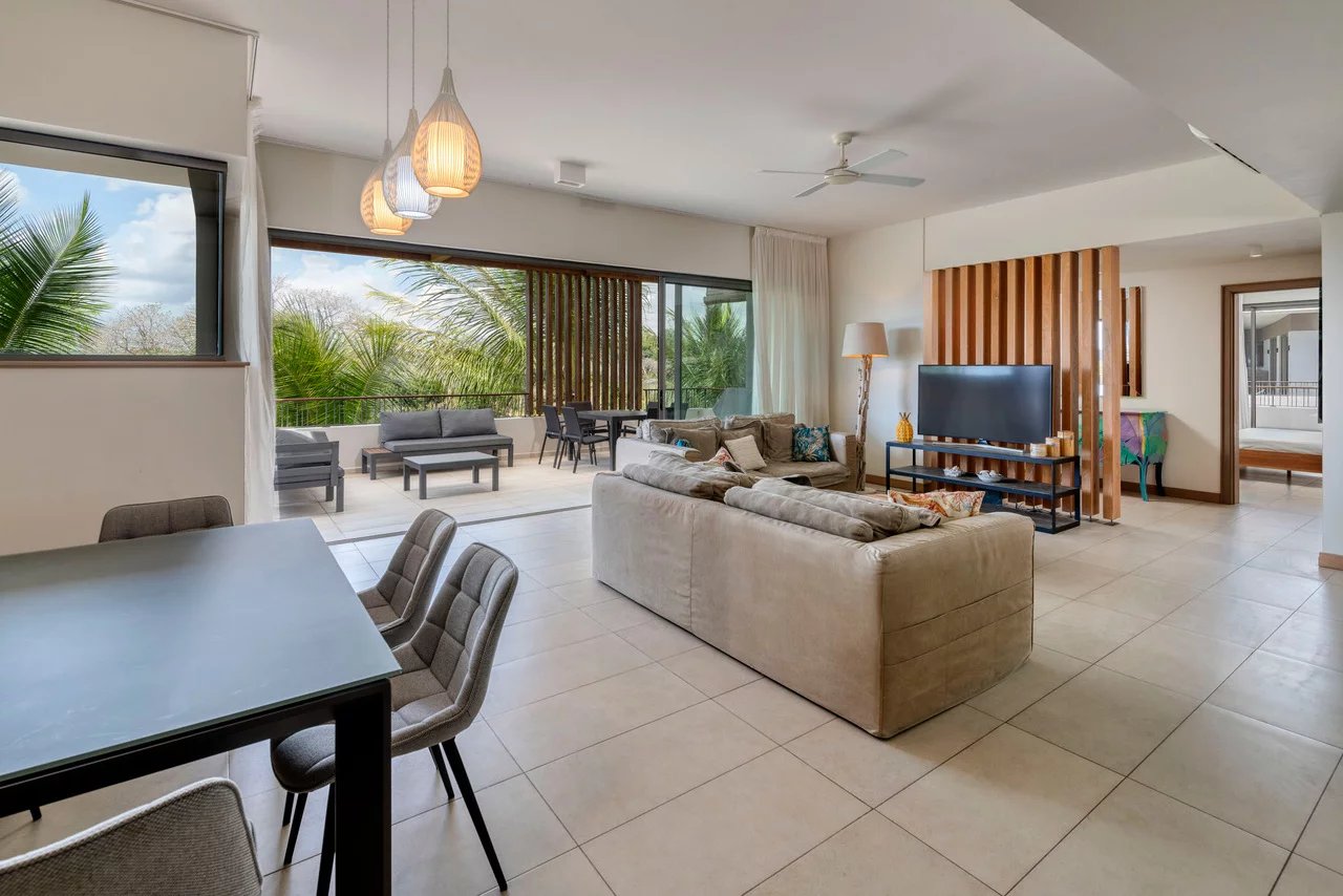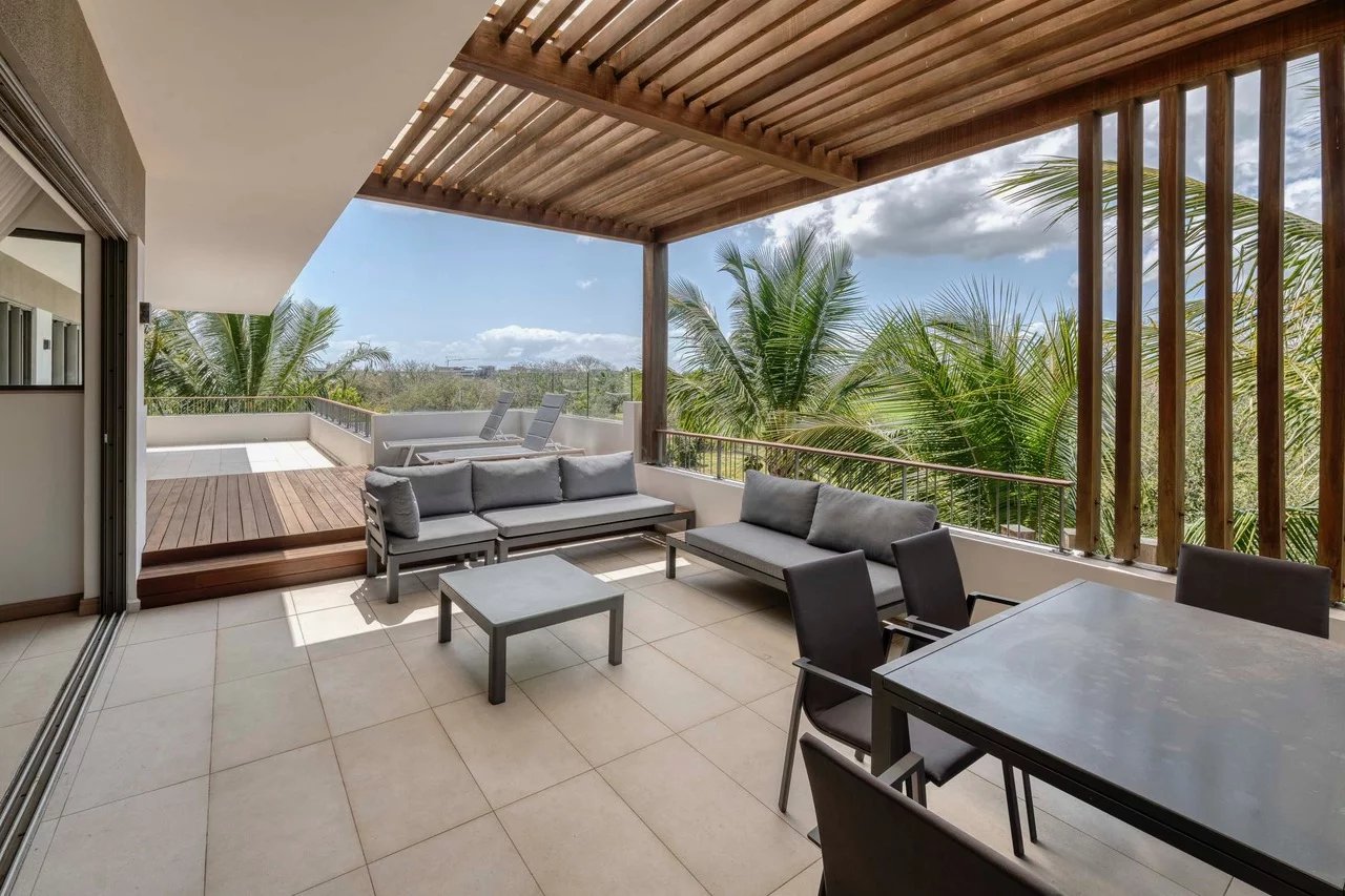 Discover this stunning contemporary penthouse ideally located in the prestigious Parc de Mont Choisy, just steps away from amenities and the beach.