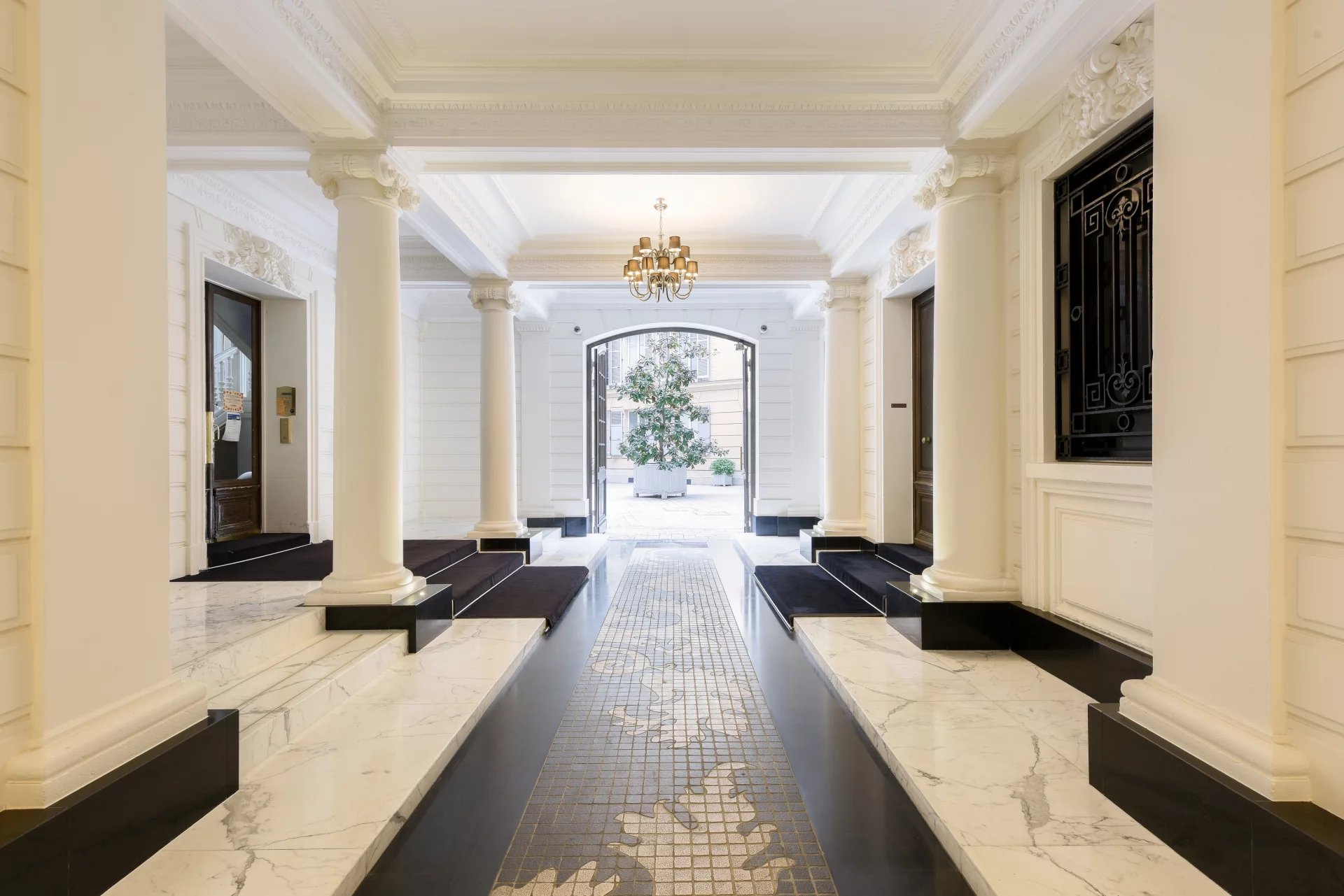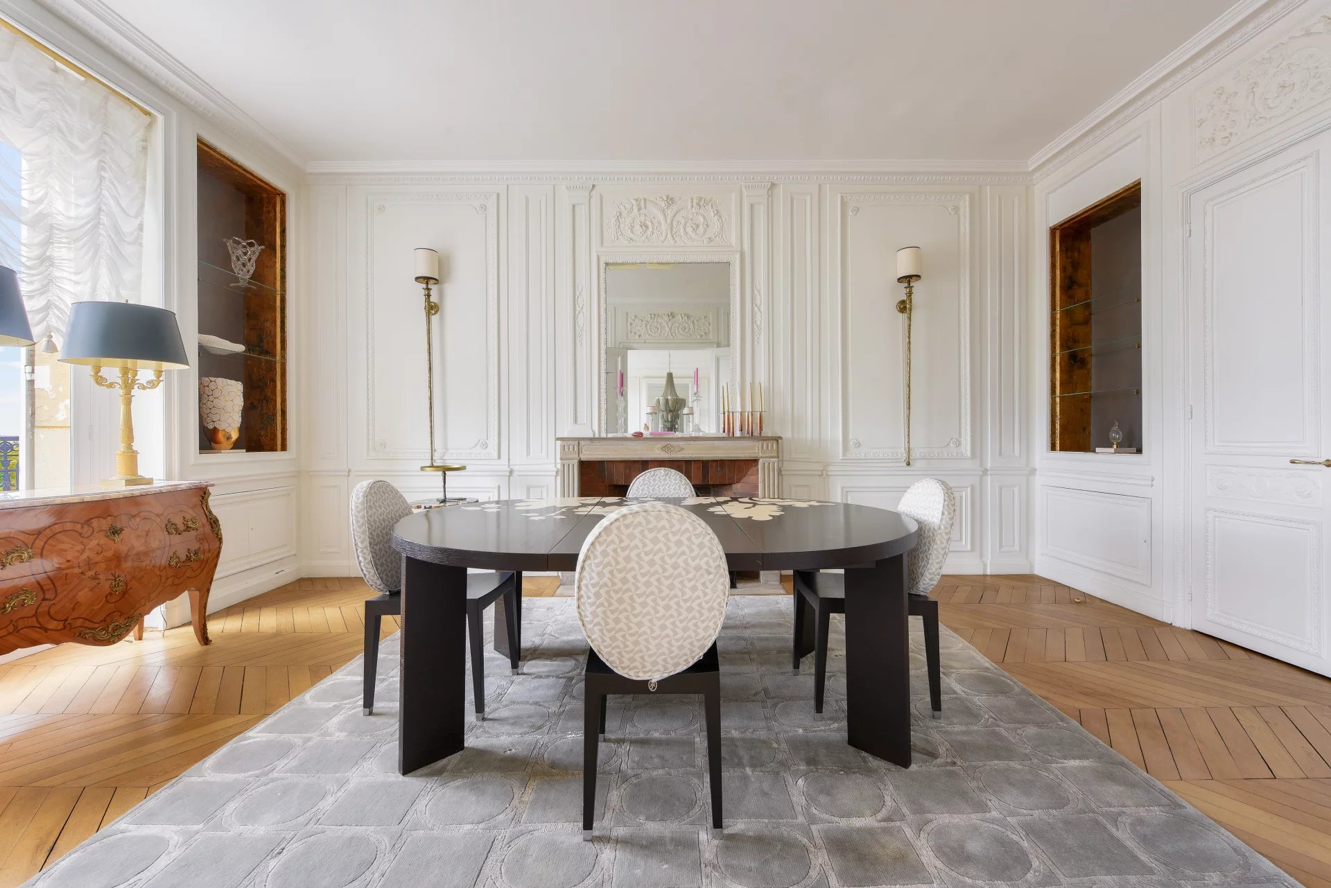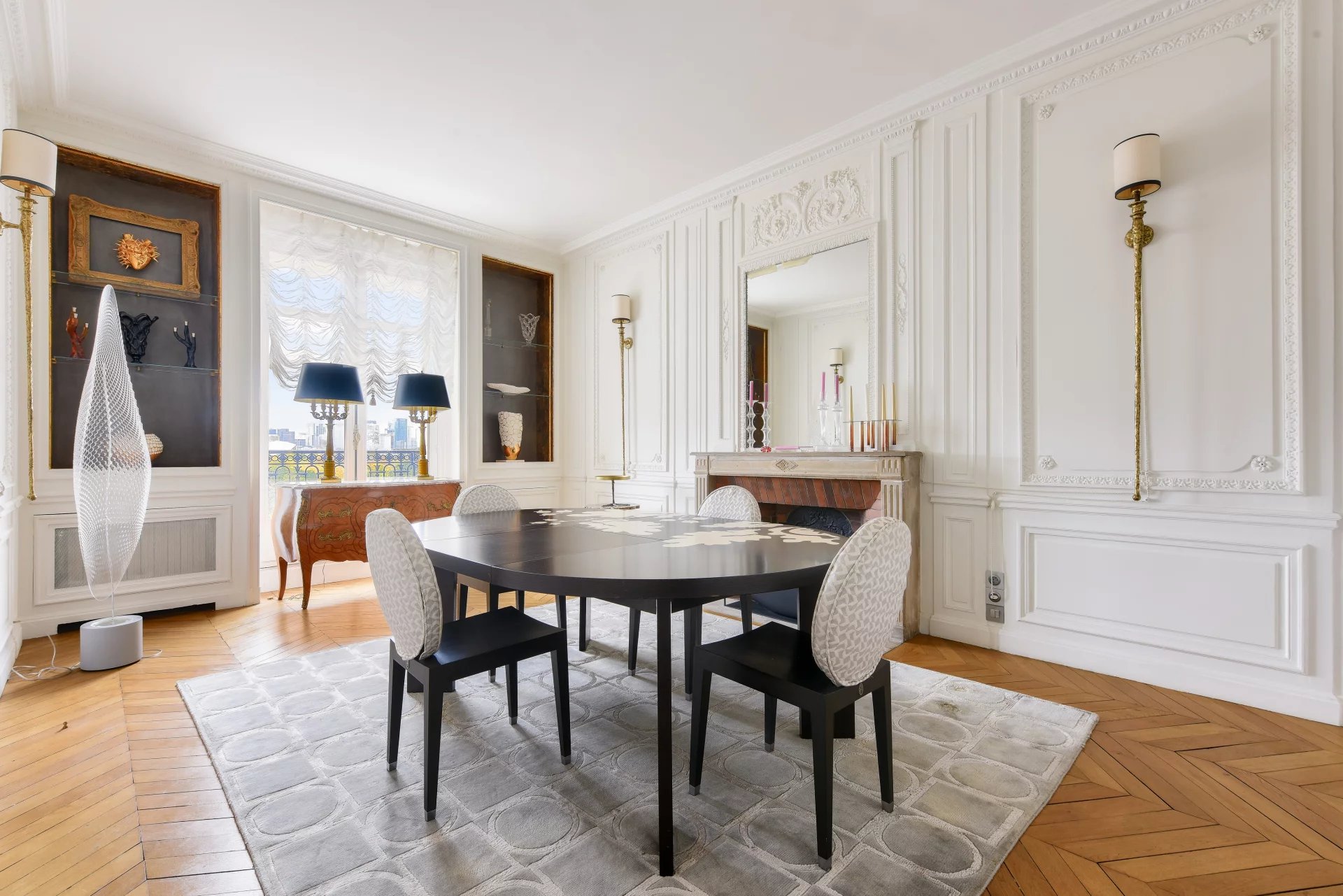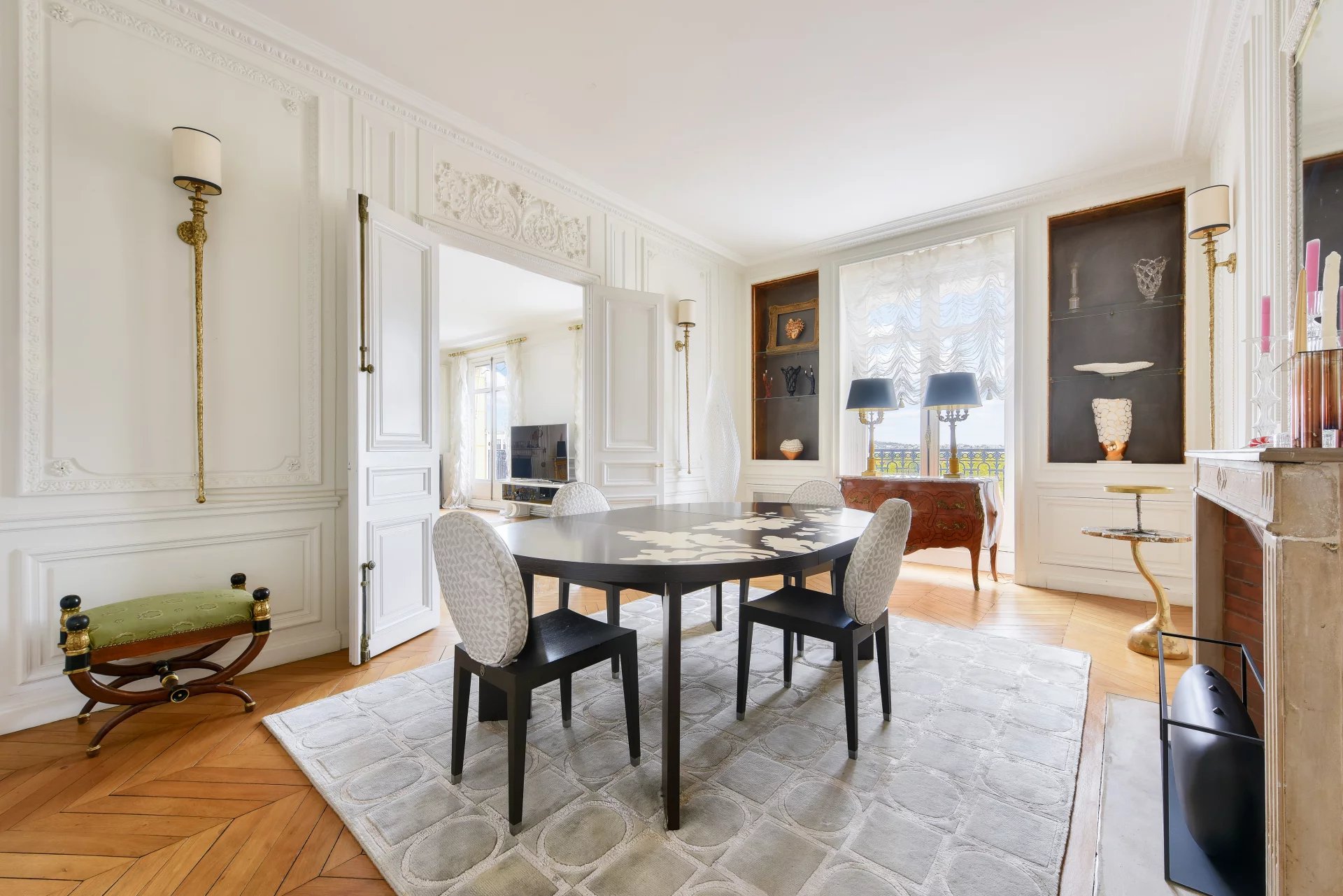 On the 5th and penultimate floor of a 19th century building of the highest standing, with a live-in janitor, a concierge providing countless services 7 days a week, and surveillance day and night, we offer you this 182.37 m² apartment, facing due west, offering exceptional panoramic views from its spacious balconies.