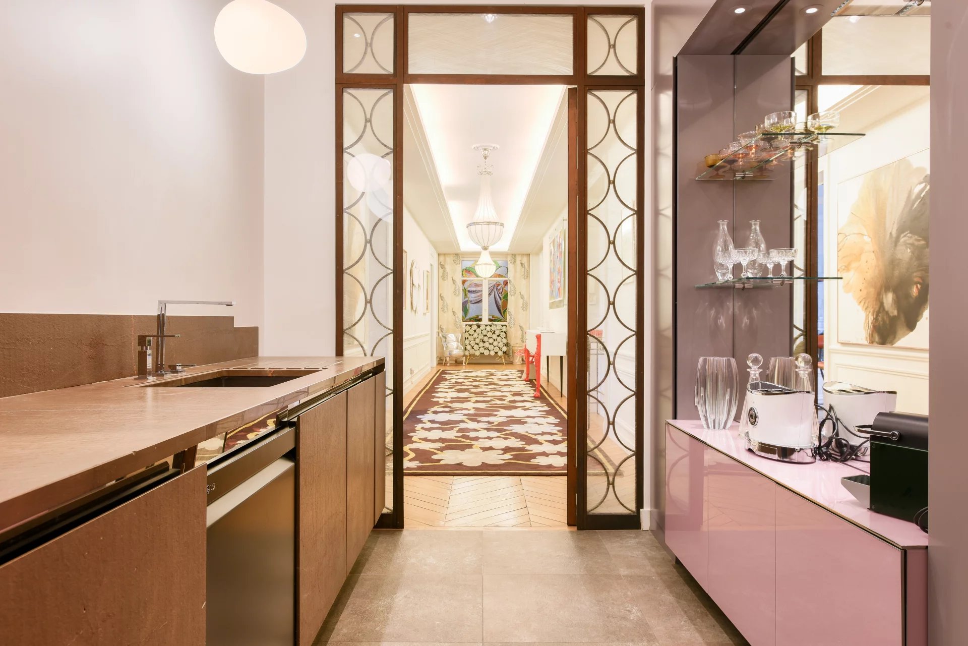 With its two recently swept, usable fireplaces, high ceilings of over 3 meters and period moldings, this air-conditioned apartment features generous living areas opening onto open-air, suspended relaxation areas.