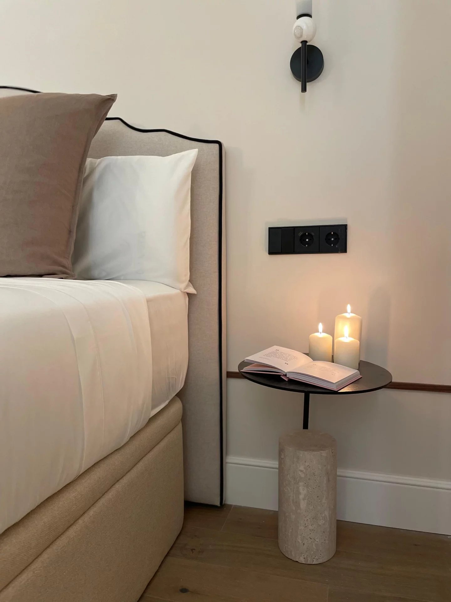 The night area includes four large bedrooms and three bathrooms, giving the back bedroom to a courtyard.