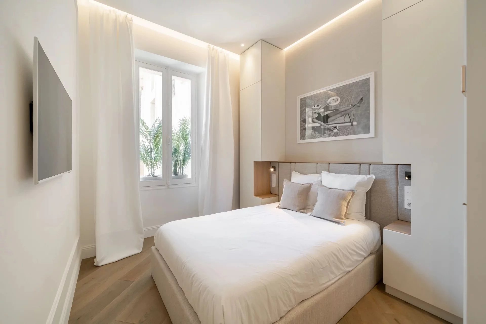 Ideally located in the Rue d'Antibes, this magnificent, luxurious apartment has been completely renovated and boasts 3.2 m high ceilings.
