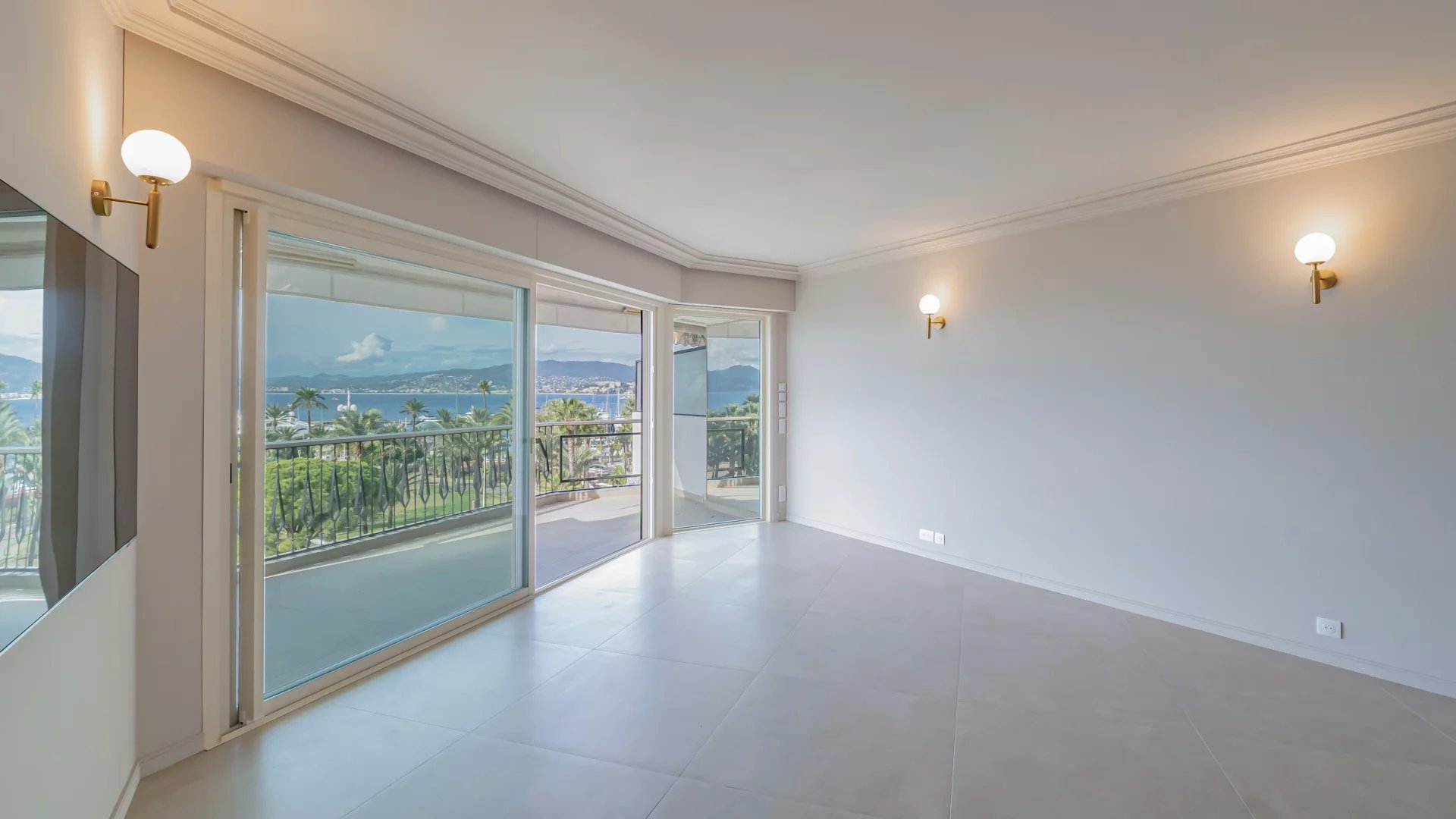 In a luxury residence on the Croisette, this fully renovated apartment boasts stunning sea views all the way to the Esterel mountains.
